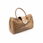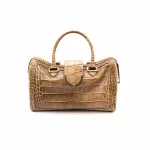 beige-braunes Leder mit Krokoprägung, goldene Hardware, innen mit Textil ausgekleidet, ein Reißverschlussfach, ein Einsteckfach, 21 x 32,5 x 15 cm (ohne Henkel), Staubbeutel anbei