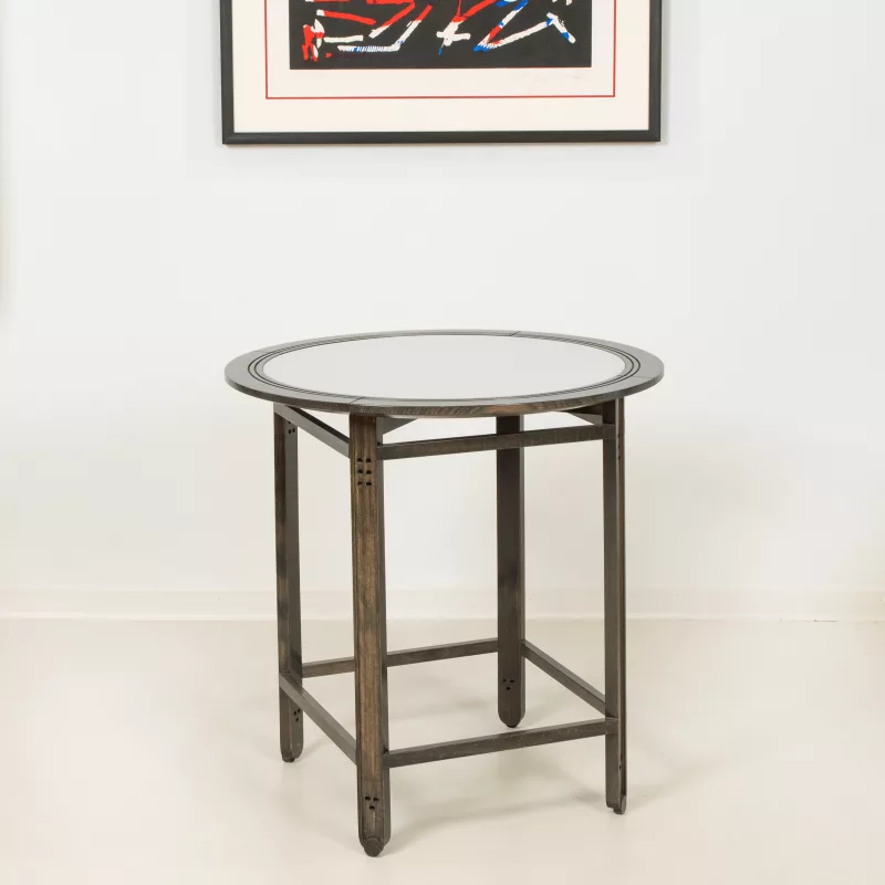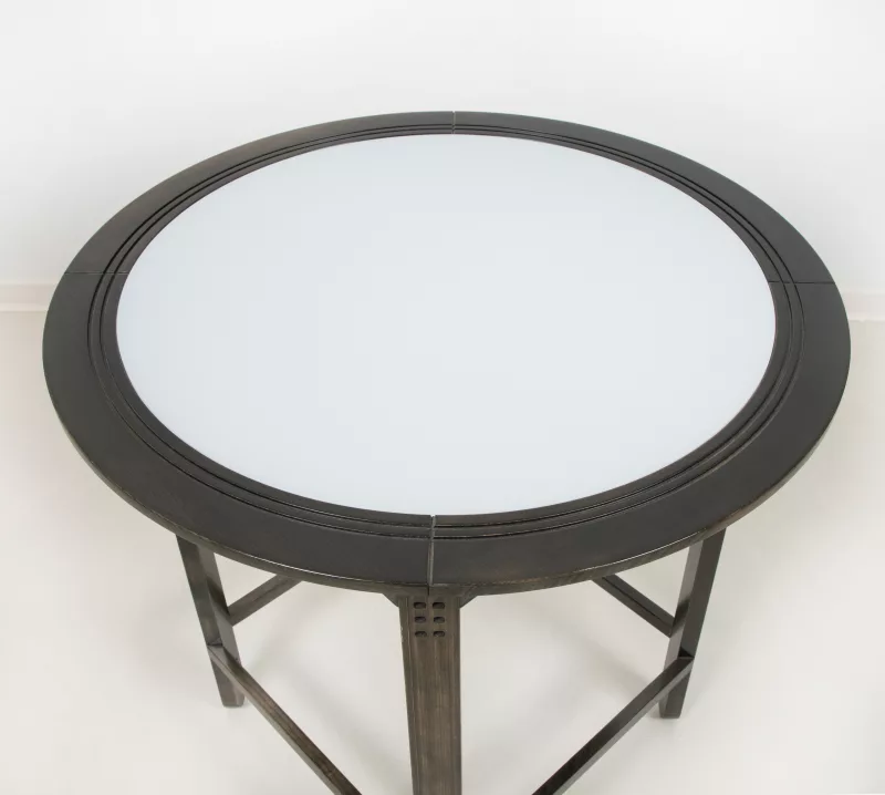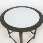Giorgetti, Italien, um 1980, Holz, braun-schwarz gebeizt, Milchglasplatte, Höhe 63 cm, Ø 64 cm, Zustand sehr gut