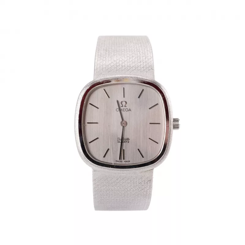 Quarzwerk, Gehäuse 585 Weißgold, geprüft, Breite 32 mm, Original-Armband 585 Weißgold, Original-Schließe 585 Weißgold, punziert, Länge 20 cm, Gesamtgewicht ca. 73 g, Funktion ungeprüft, Batteriewechsel erforderlich, Zustand befriedigend, Glas mit Sprung, Minutenzeiger lässt sich nicht stellen, Zustand und Funktionalität durch unseren Uhrmachermeister geprüft, ohne Original-Box oder -Papiere
