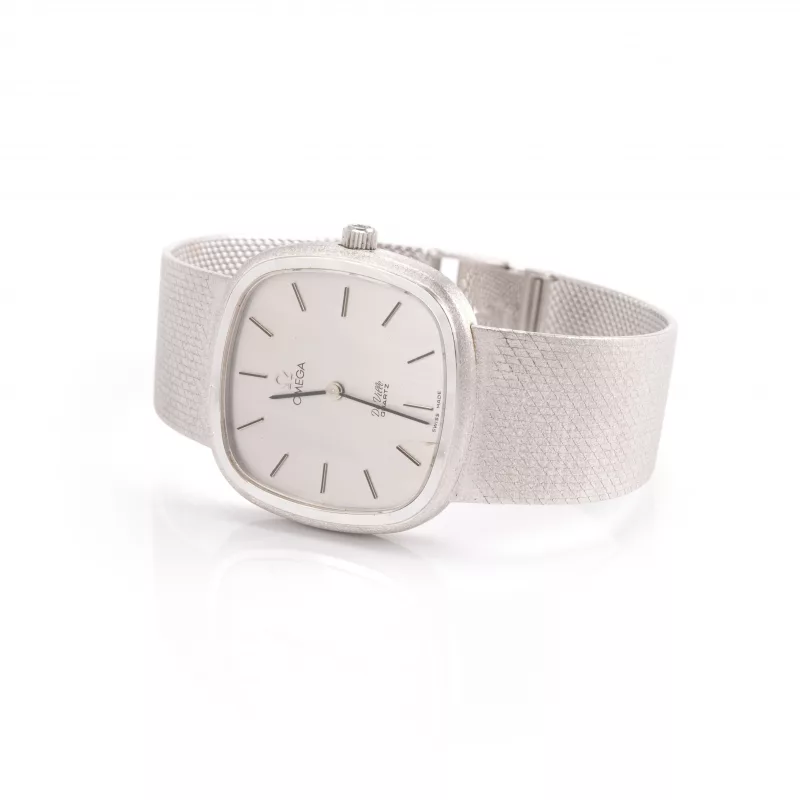 Quarzwerk, Gehäuse 585 Weißgold, geprüft, Breite 32 mm, Original-Armband 585 Weißgold, Original-Schließe 585 Weißgold, punziert, Länge 20 cm, Gesamtgewicht ca. 73 g, Funktion ungeprüft, Batteriewechsel erforderlich, Zustand befriedigend, Glas mit Sprung, Minutenzeiger lässt sich nicht stellen, Zustand und Funktionalität durch unseren Uhrmachermeister geprüft, ohne Original-Box oder -Papiere