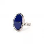 585 Weißgold, punziert, 30 Diamanten im Brillantschliff, gesamt ca. 0,15 ct, vs, RW 54, Gewicht ca. 6,5 g, ein Diamant seitlich bestoßen