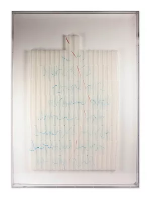 Vlieseline-Faltung auf Karton unter Plexiglas