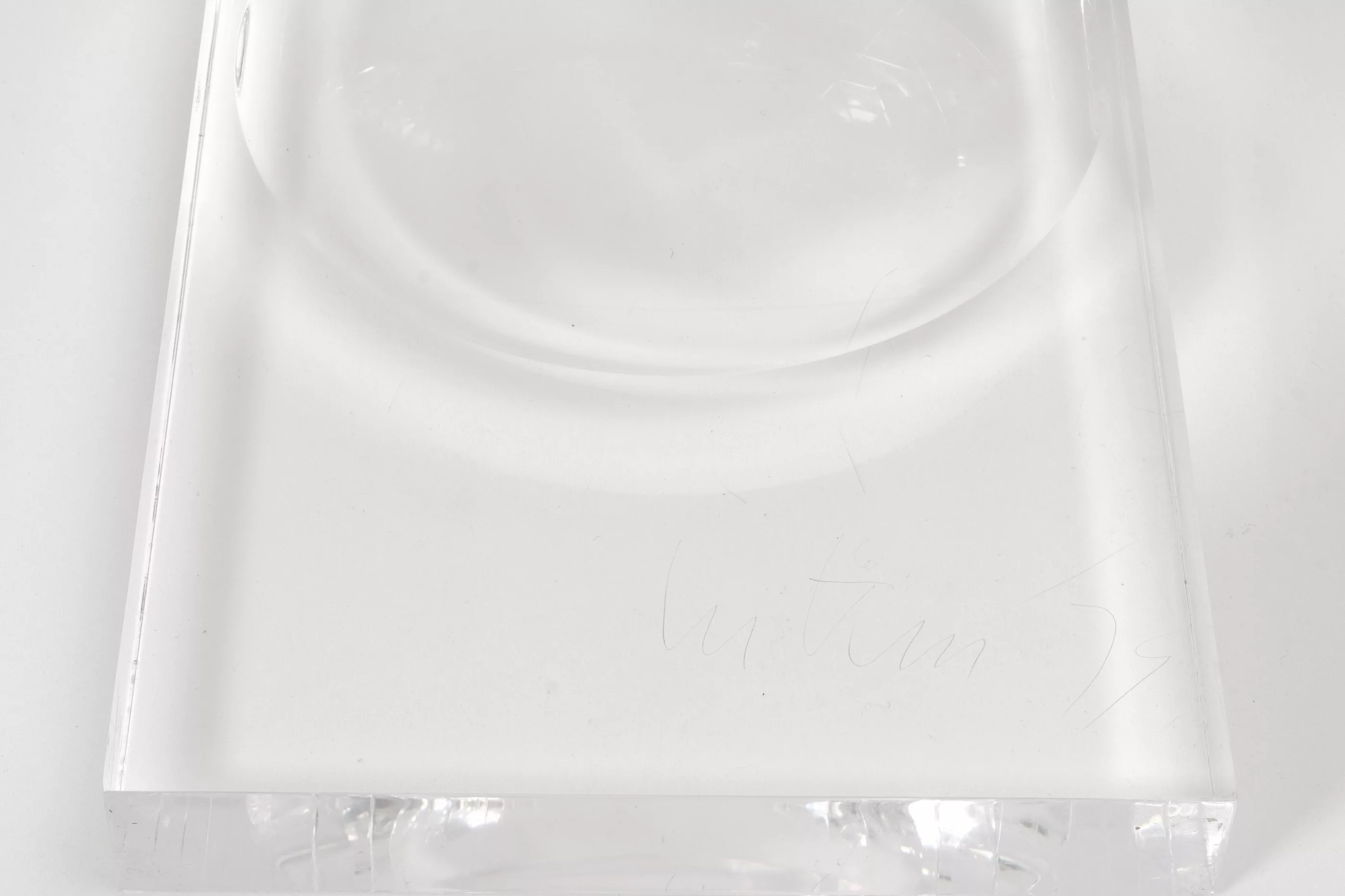 Stele (Linsenobjekt), Plexiglas mit konkav eingeschliffener Linse, Höhe 40 cm, Ritzsignatur, 79 datiert, 40/50 nummeriert, partiell Kratzer, partiell bestoßen, Ecke unten und oben rechts abgeschlagen
