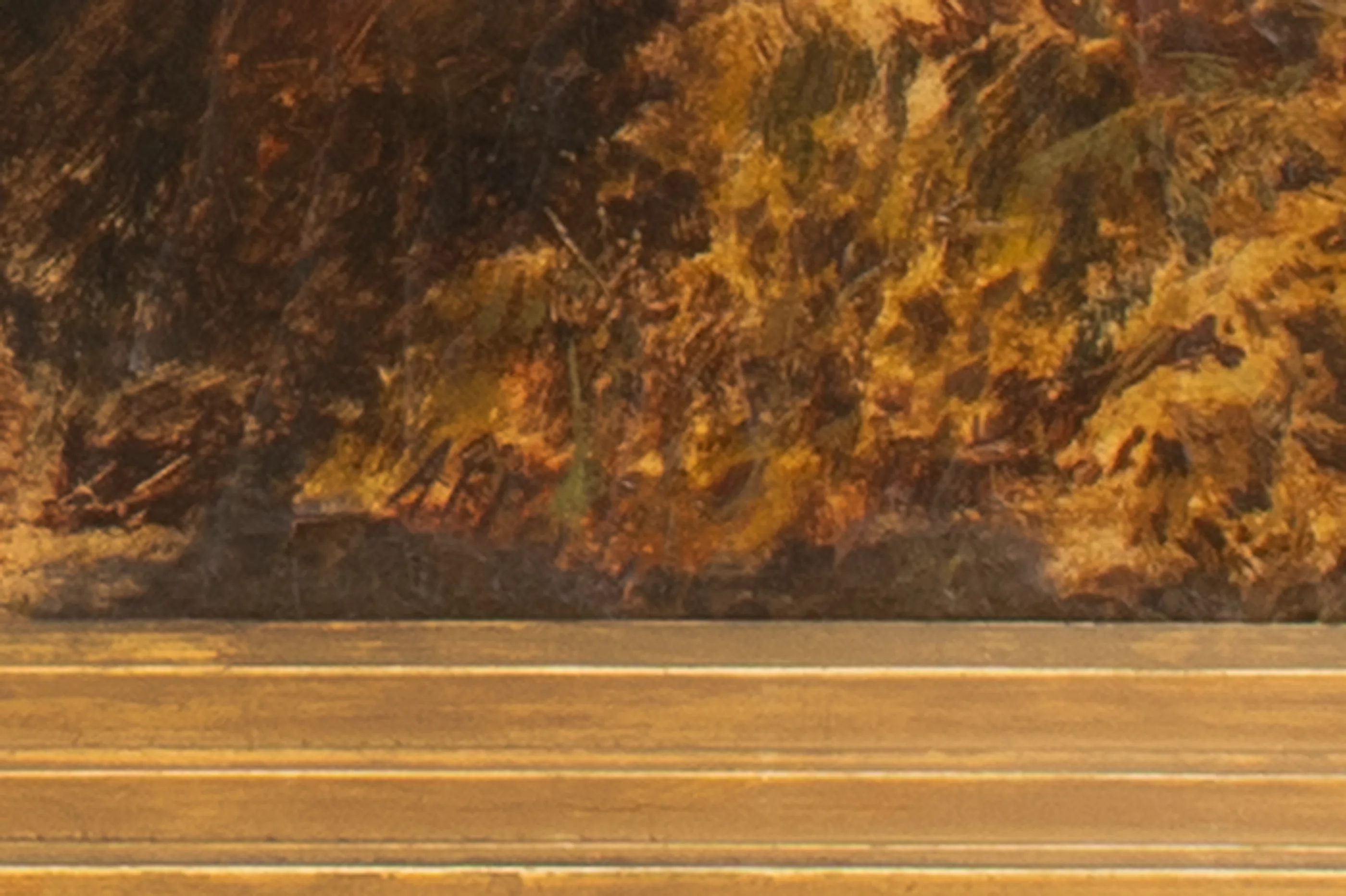 Tearing River, oil on canvas, 50 cm x 76 cm canvas dimensions, signed, heavily craquelured, cracked, flaking, retouched, in need of cleaning