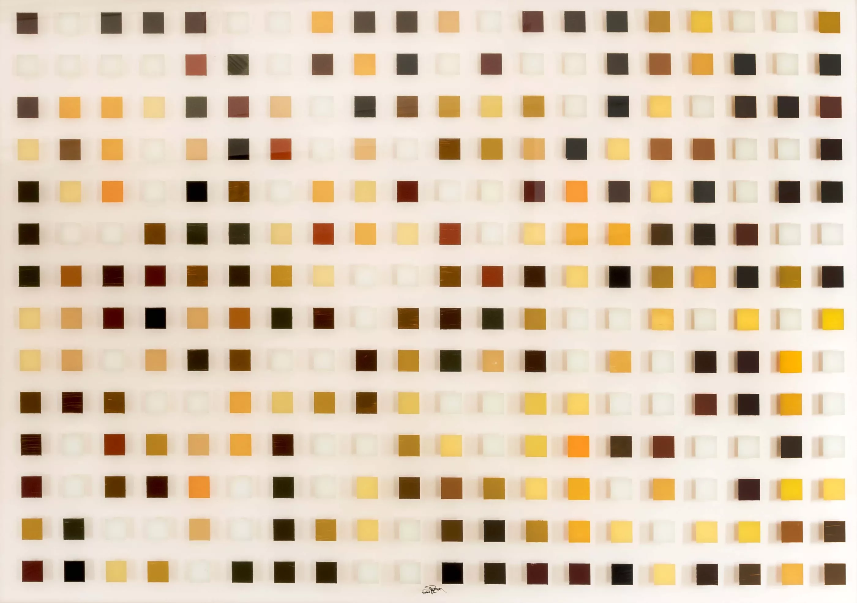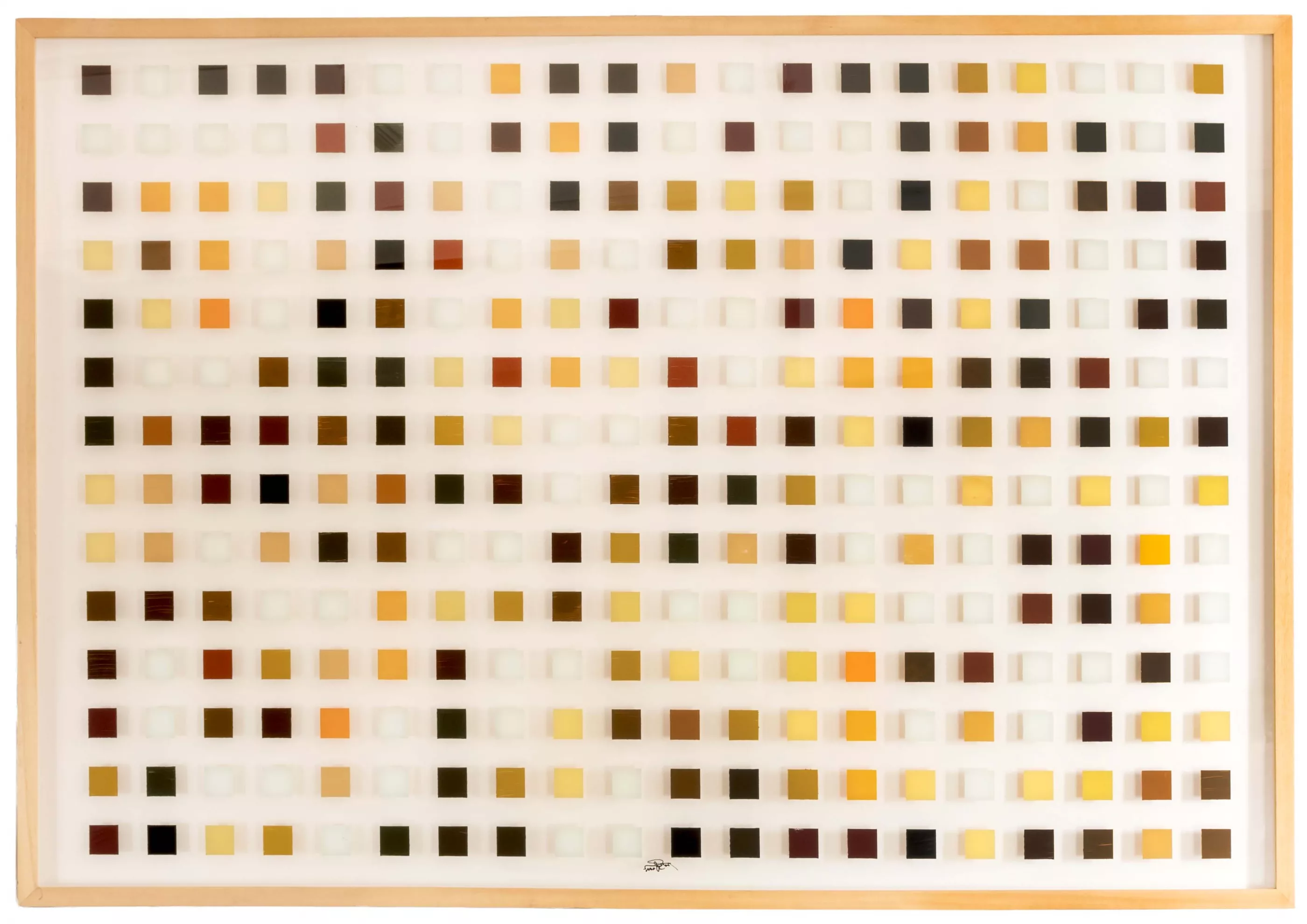 Untitled (grid), oil behind glass, 88 cm x 128 cm object dimensions, signed, partially slightly scratched