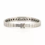 750 Weißgold, punziert, 7 Diamanten im Brillantschliff, gesamt ca. 0,85 ct, G-H, vs-si, Länge 18,5 cm, Gewicht ca. 27 g