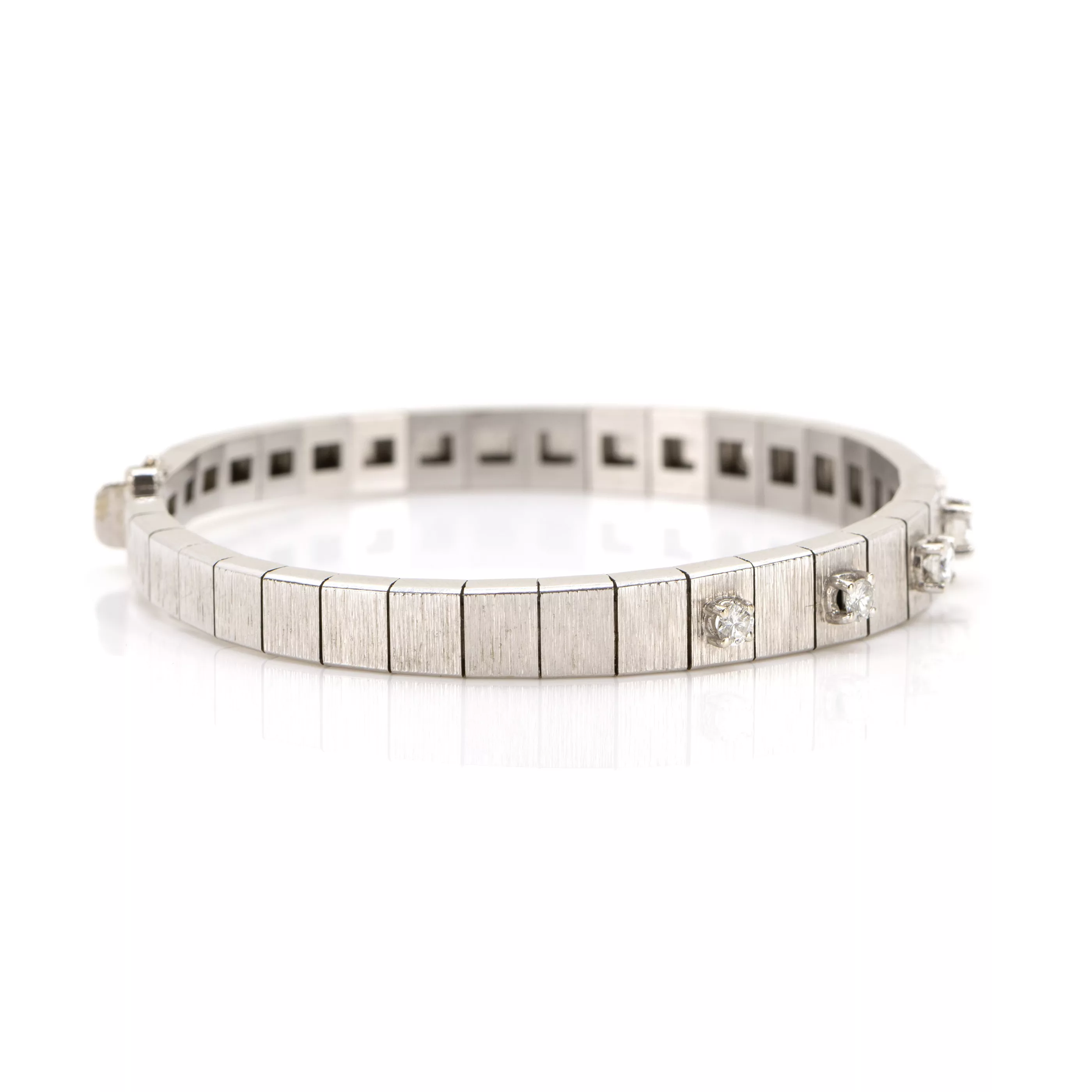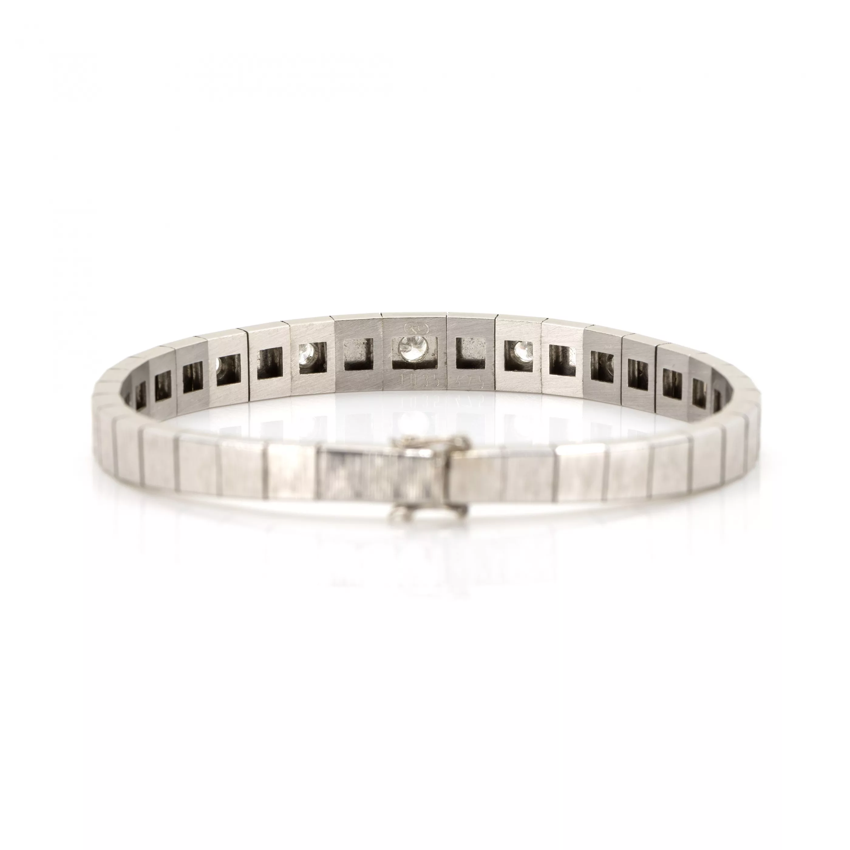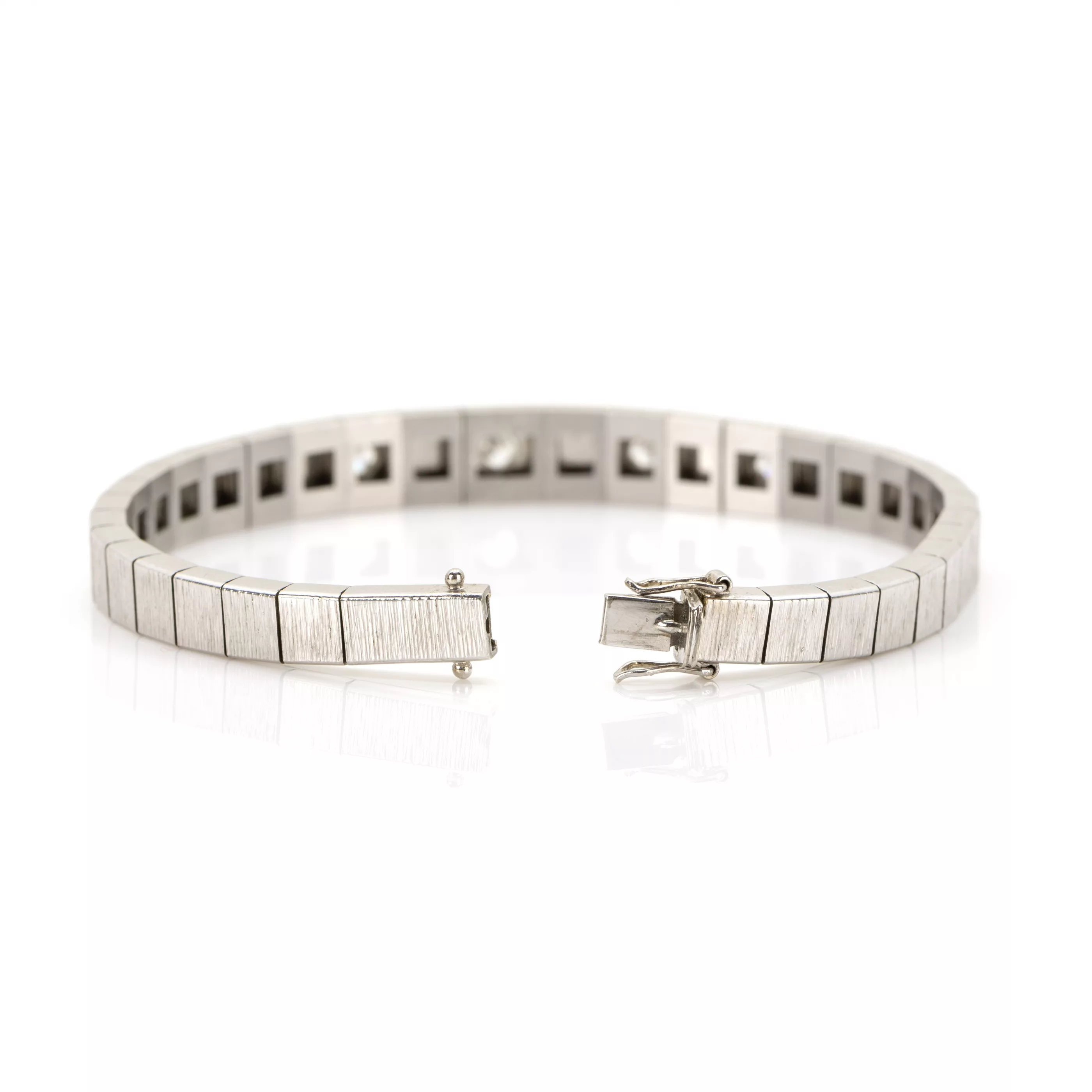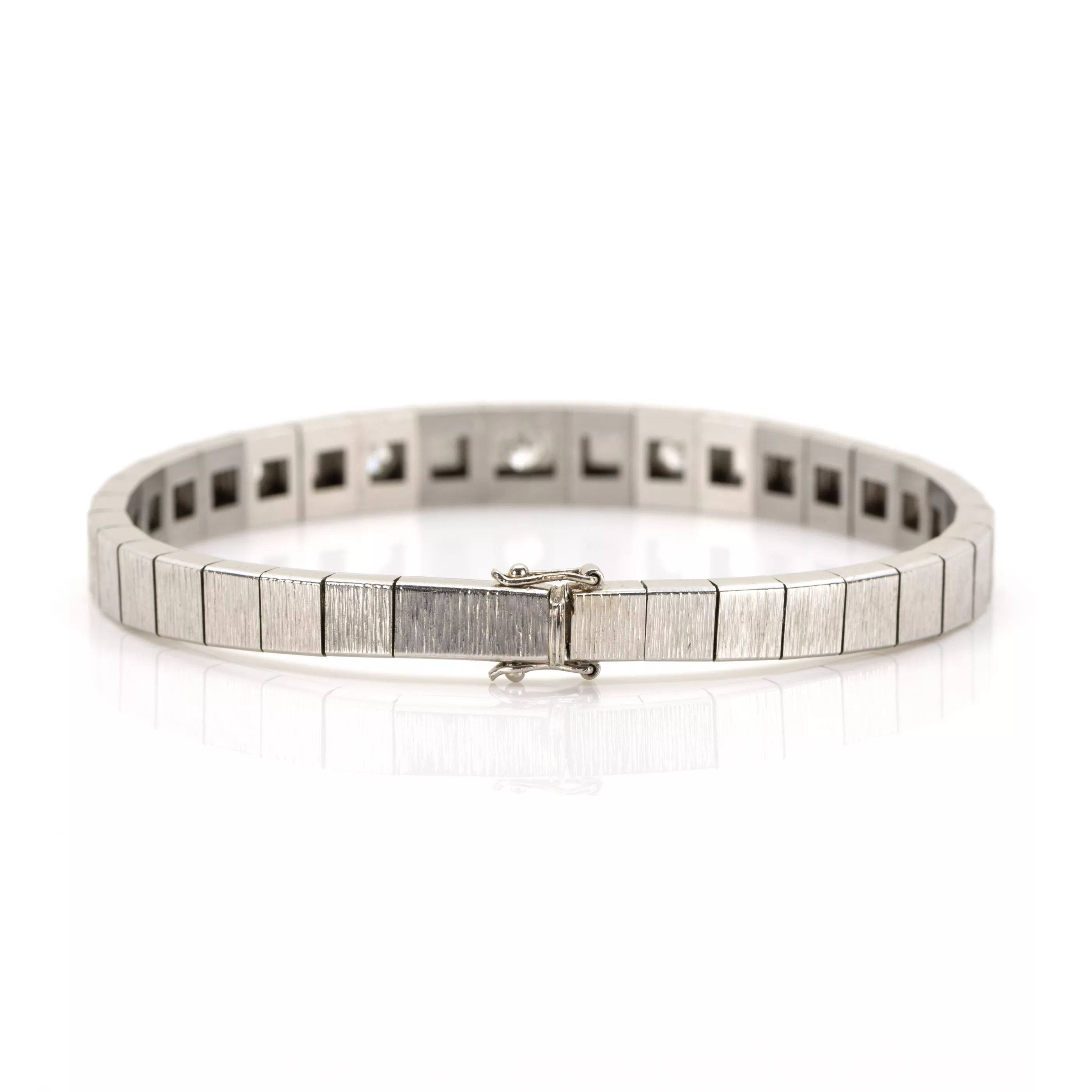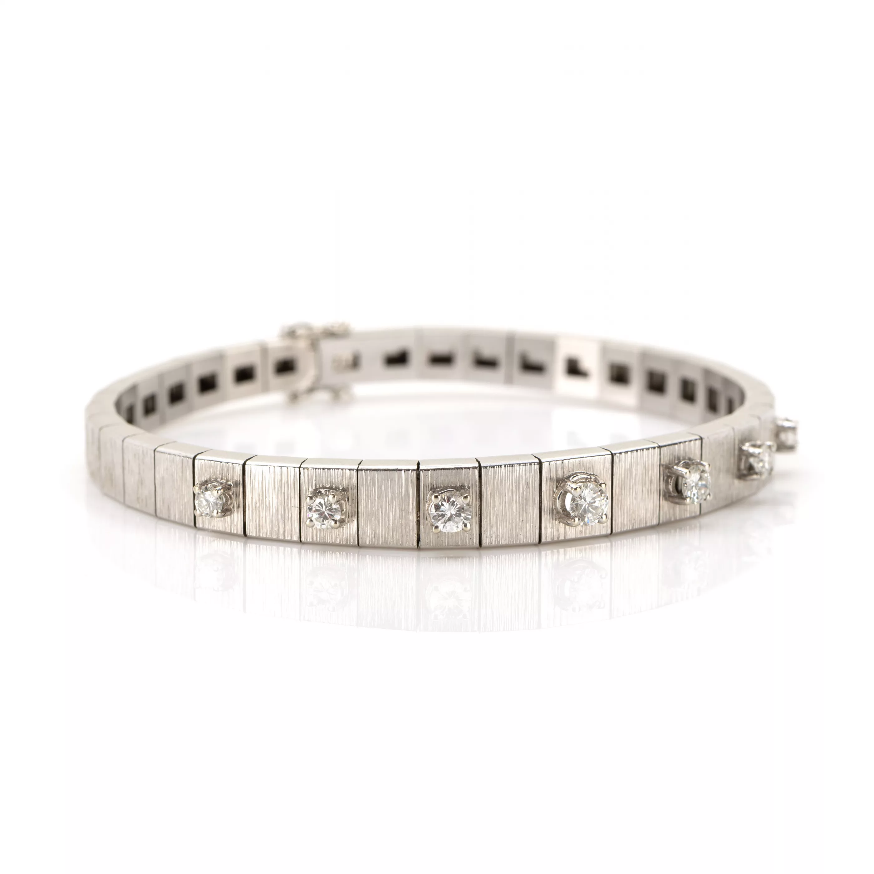 750 Weißgold, punziert, 7 Diamanten im Brillantschliff, gesamt ca. 0,85 ct, G-H, vs-si, Länge 18,5 cm, Gewicht ca. 27 g