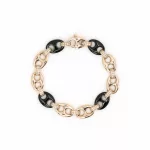 750 Rotgold, punziert, 132 Diamanten im Brillantschliff, gesamt ca. 1,32 ct, G, vvs-vs, die übrigen 4 Armbandglieder aus Onyx, Länge 20 cm, Gewicht ca. 18,6 g