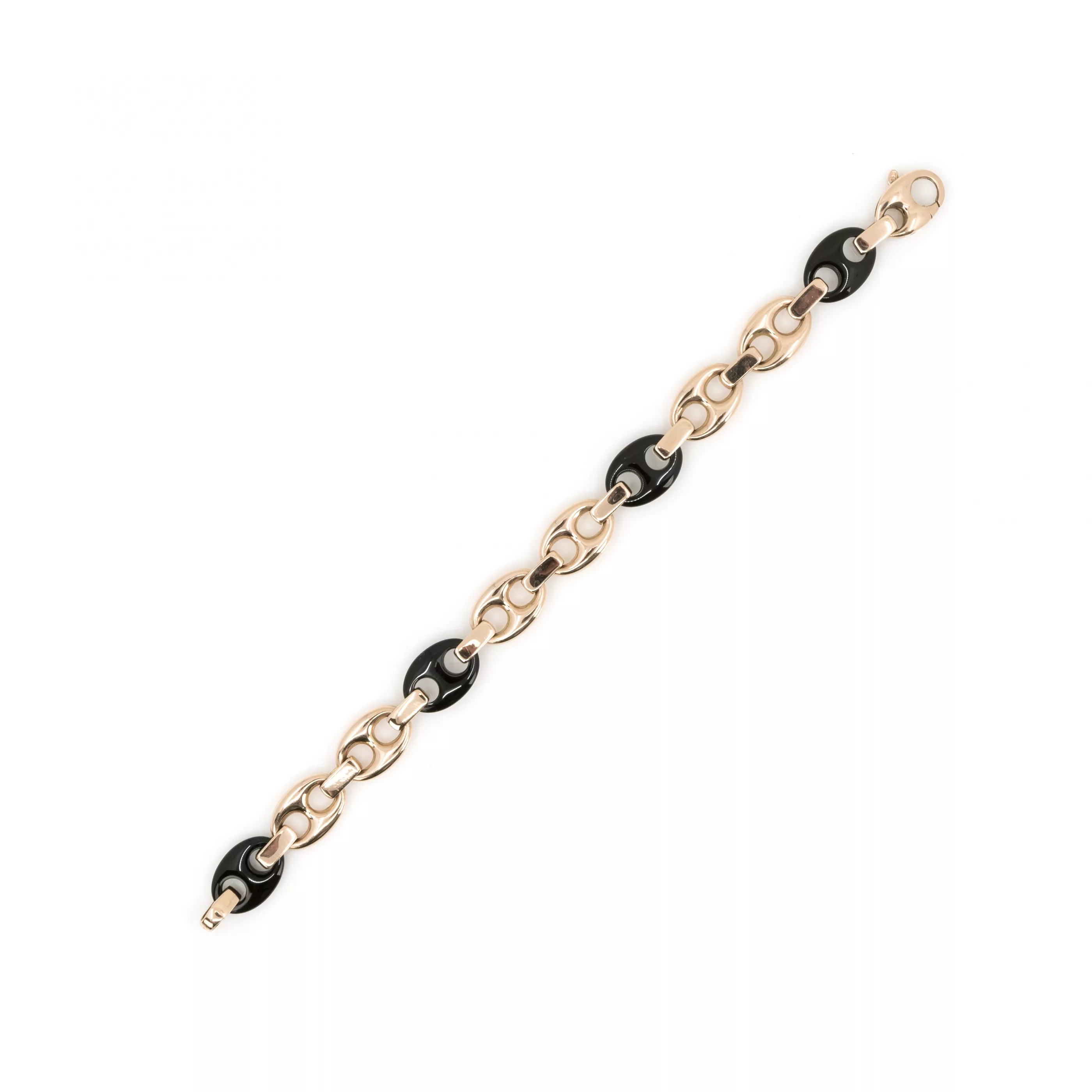 Armband mit Onyx-Brillantbesatz750 Rotgold, punziert, 132 Diamanten im Brillantschliff, gesamt ca. 1,32 ct, G, vvs-vs, die übrigen 4...