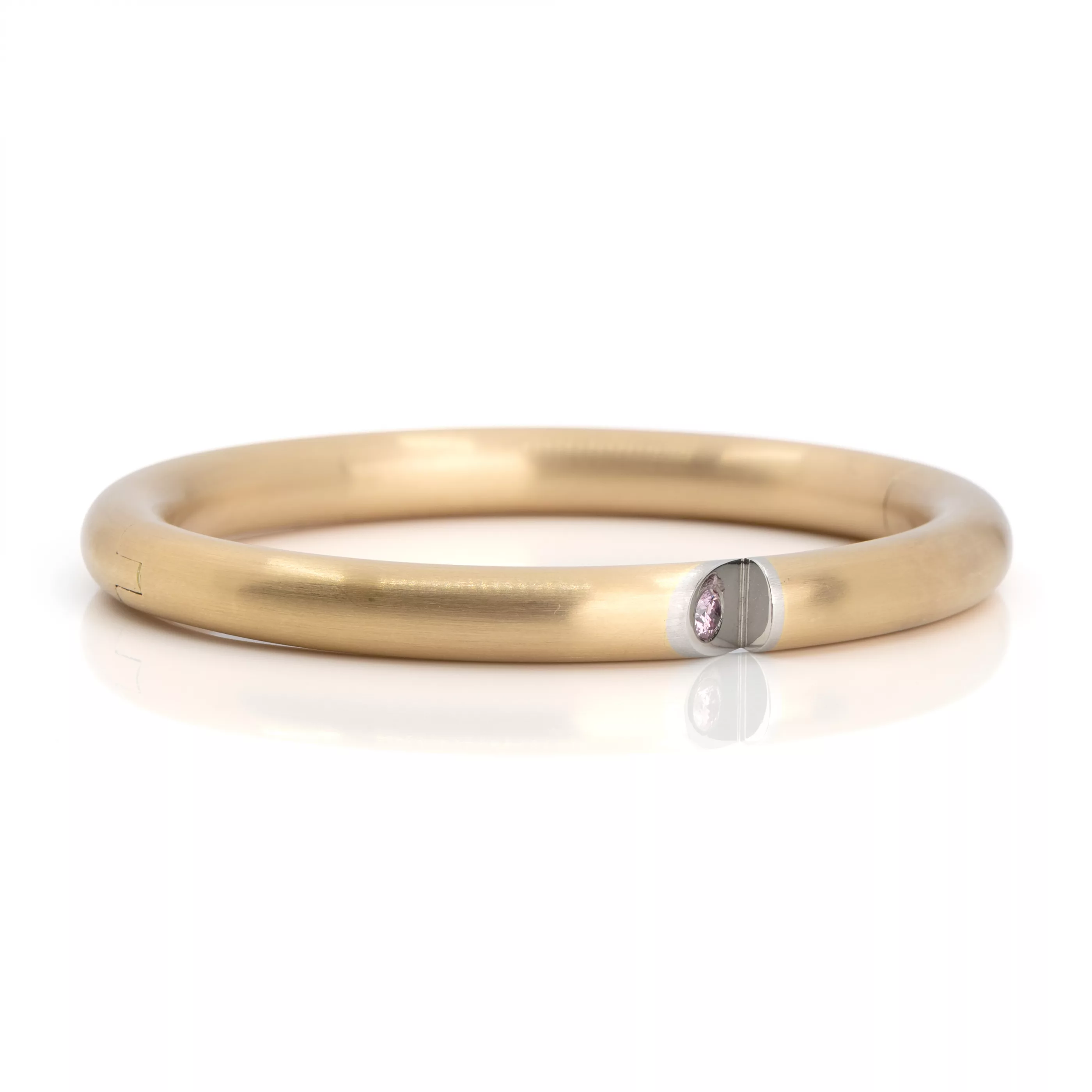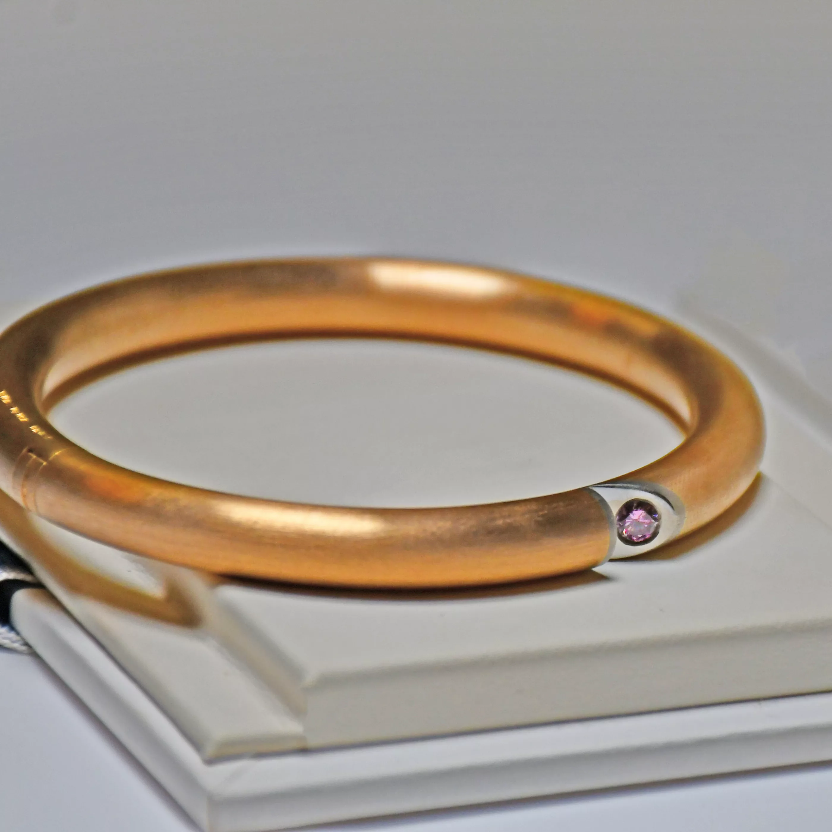 750 Gelbgold punziert, 950 Platin, punziert, besetzt mit einem intensiv pinken Diamanten im Brillant-Schliff, ca. 0,20 ct, SI, fancy pink, Länge ca. 22 cm, Gesamtgewicht ca. 48 g Zertifikat November 2025 vom DPL in Idar-Oberstein beiliegend, Original-Kaufbeleg aus der Argyle-Mine in Australien, die nun die Förderung eingestellt hat