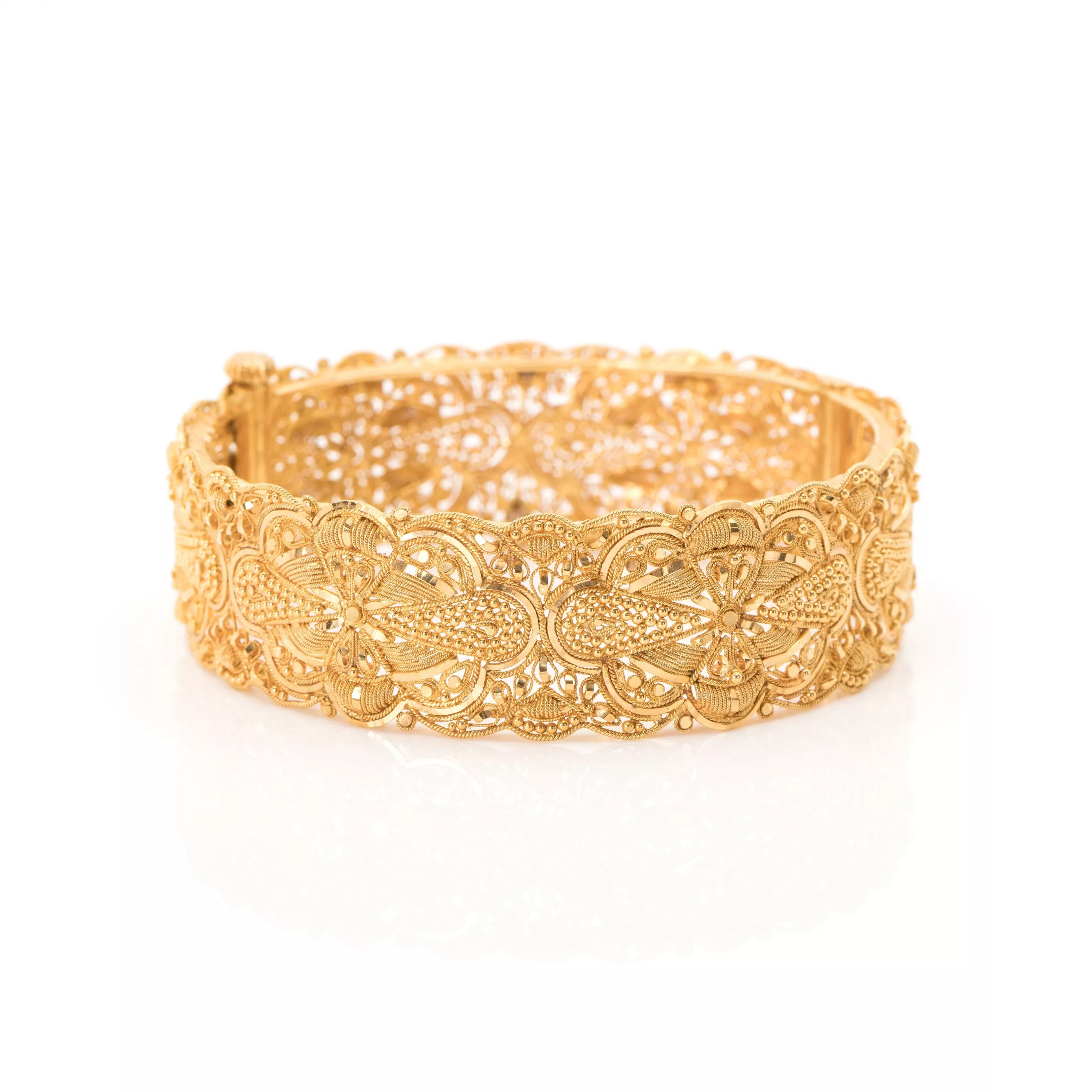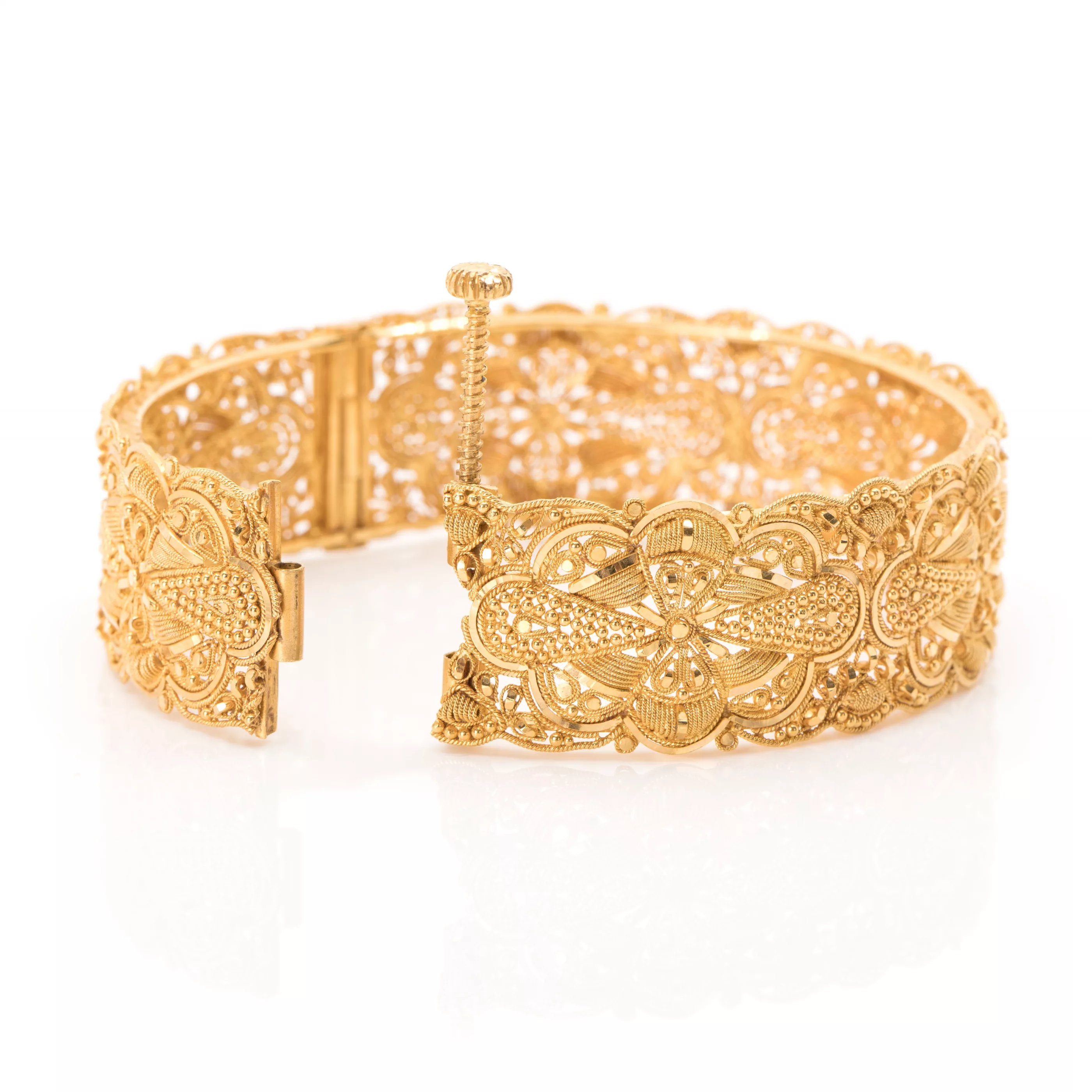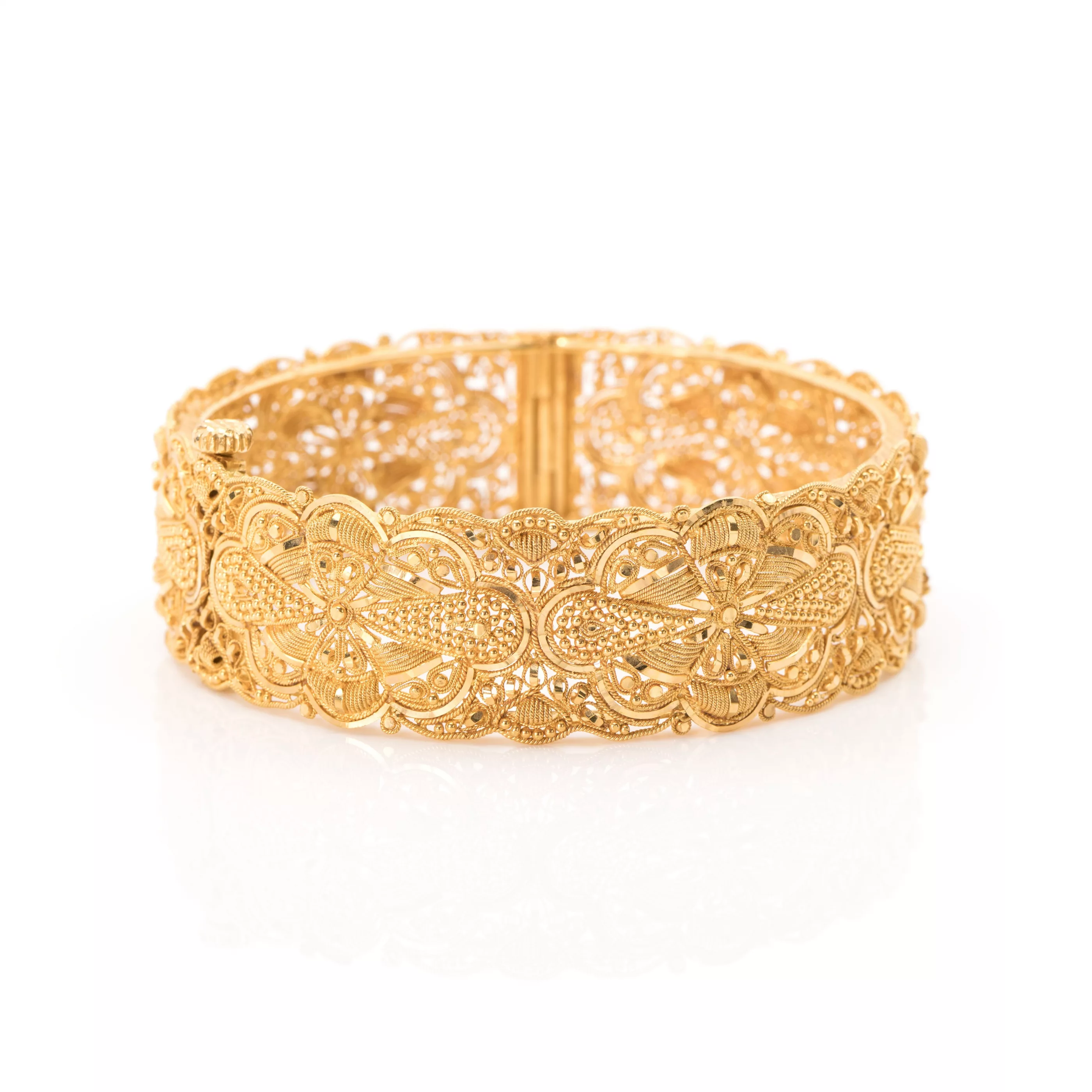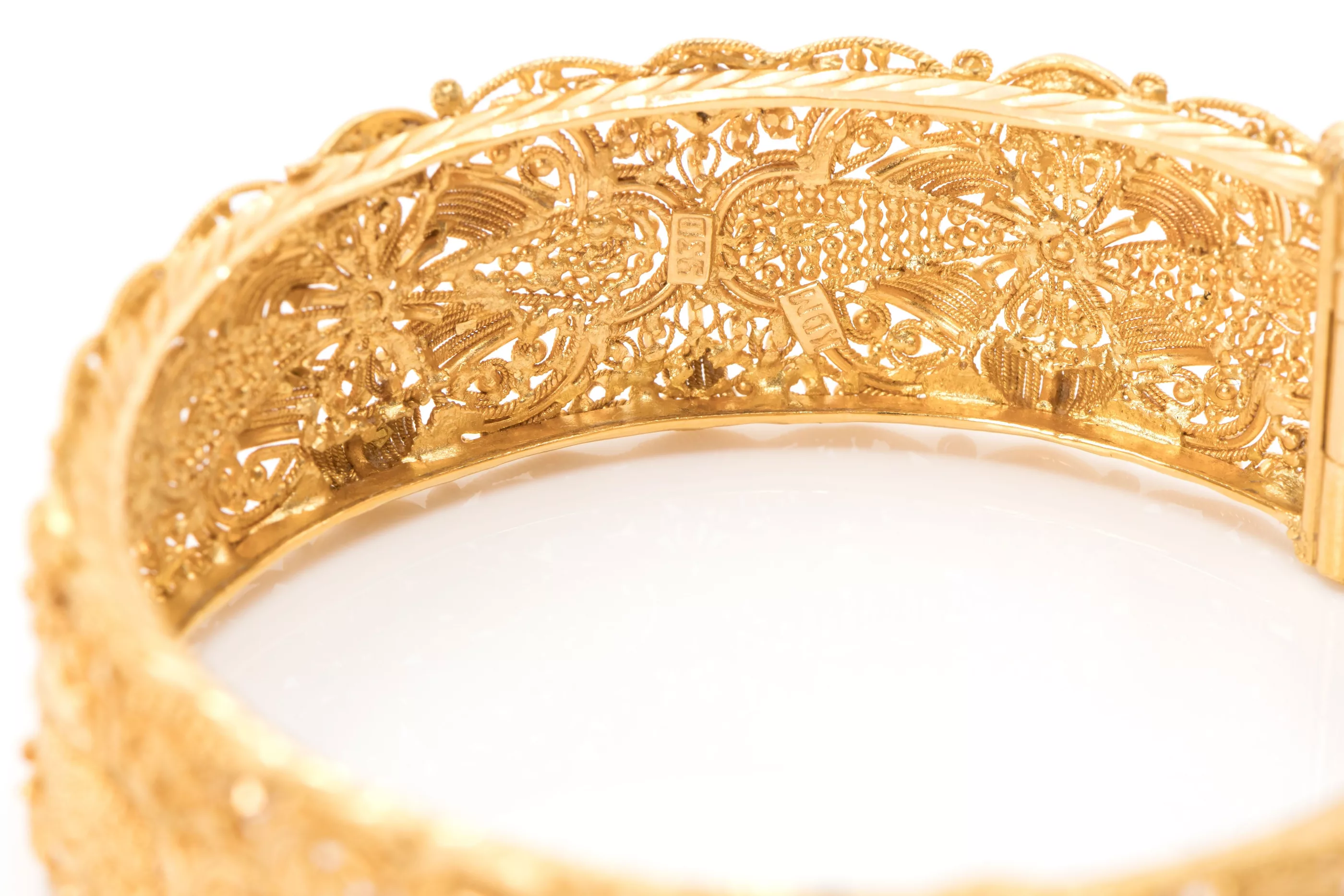 Armreif mit GoldfiligranarbeitArabischer Hochzeitsschmuck, 930 Gelbgold, punziert, Ø innen 6 cm, Gewicht ca. 44,2 gBangle with gold...