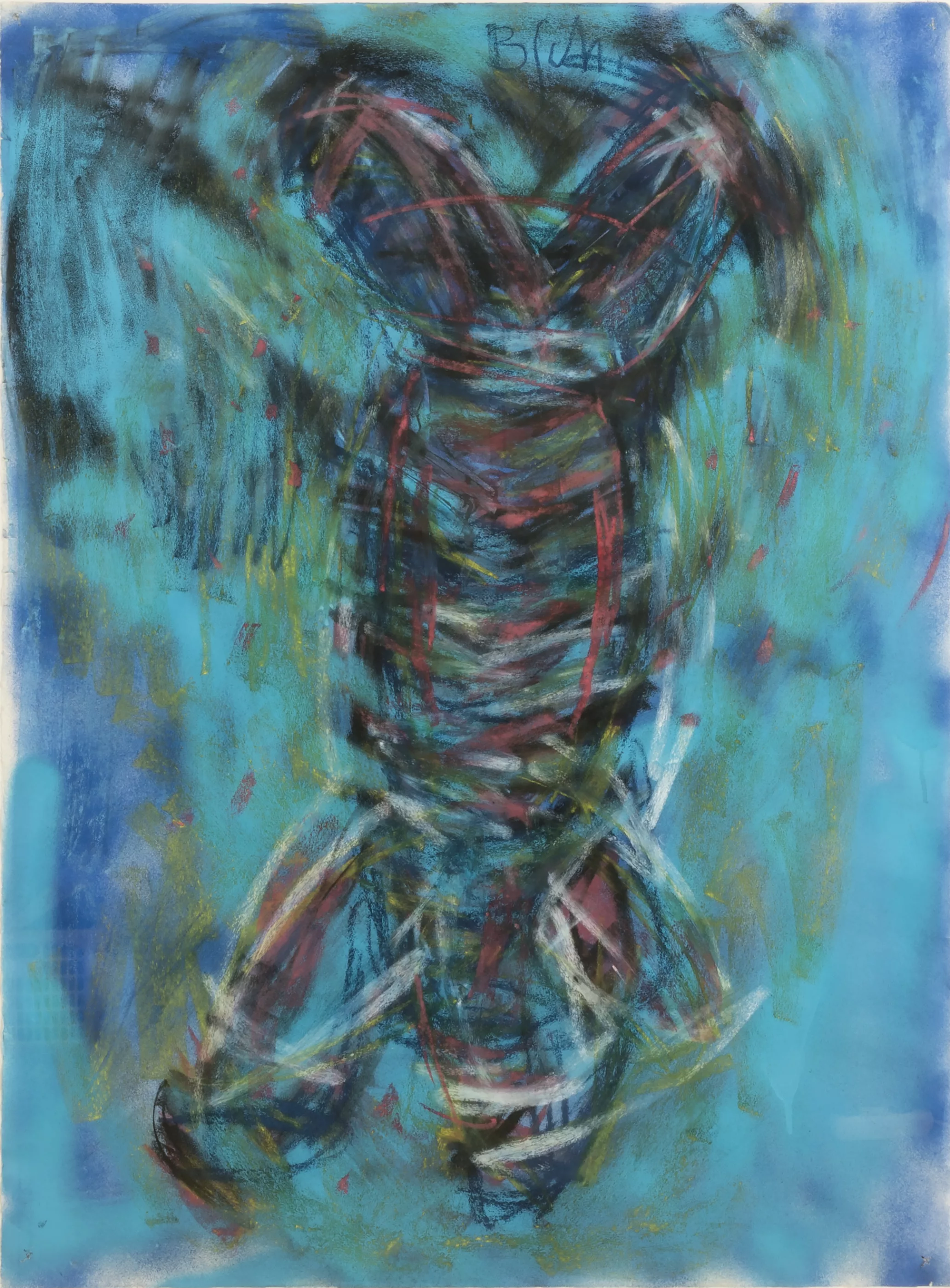 Untitled (hanging animal body), pastel on vélin, 106 cm x 78 cm sheet dimensions, signed, mounted, pinholes, small tears in places at the edge of the sheet