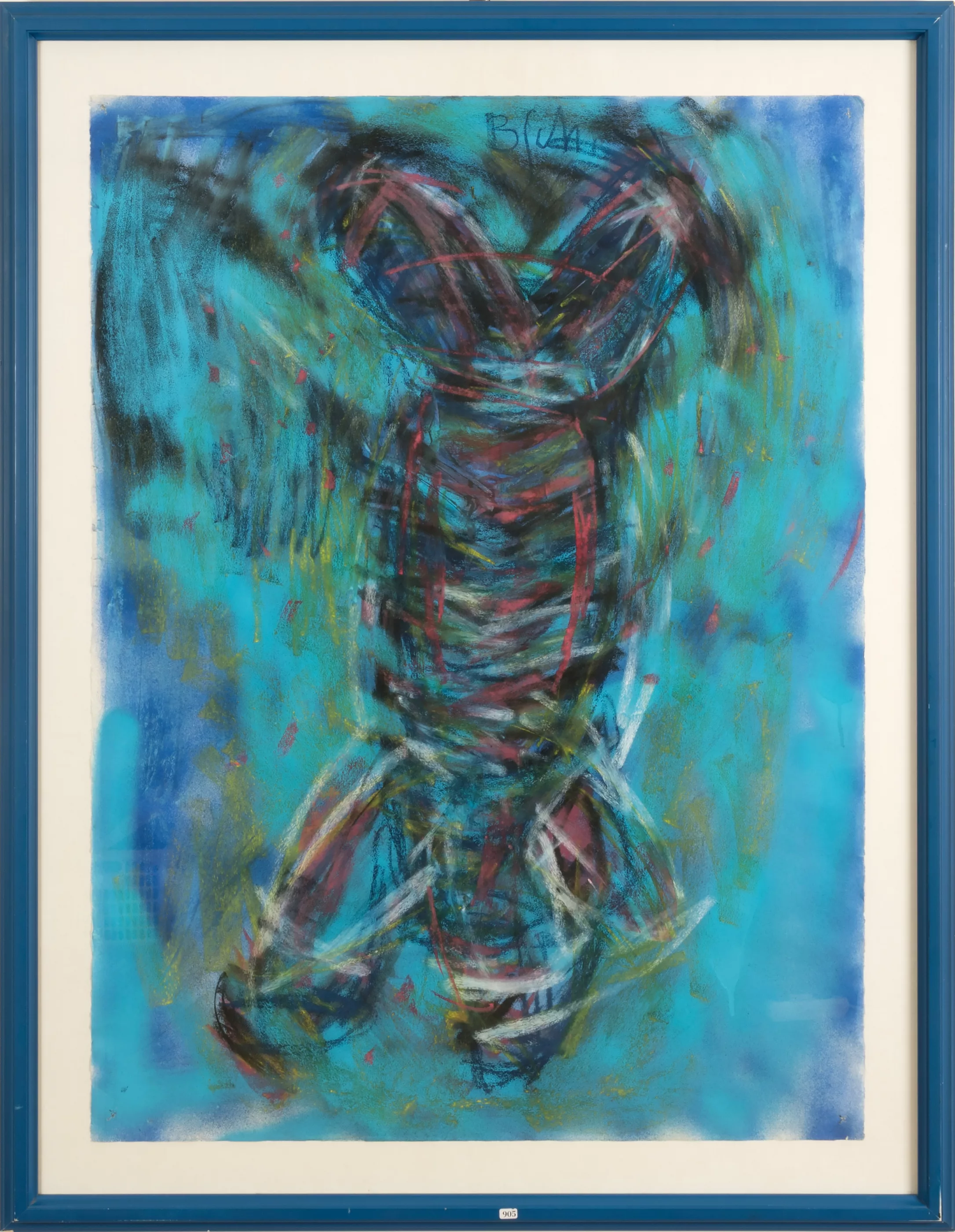Ohne Titel (hängender Tierkörper), Pastell auf Velin, 106 cm x 78 cm Blattmaß, signiert, montiert, Stecknadellöcher, partiell kleine Einrisse am Blattrand