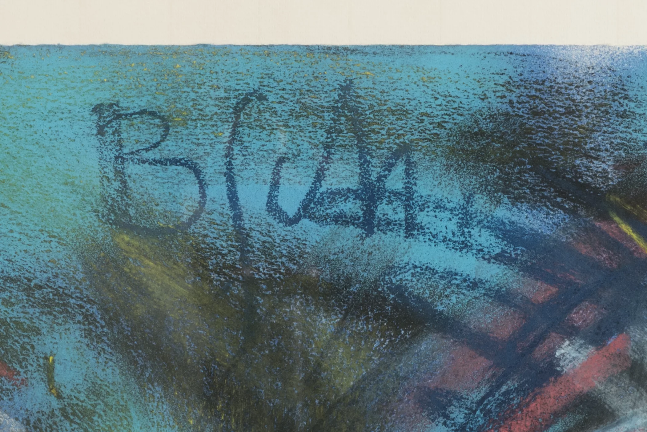 Ohne Titel (hängender Tierkörper), Pastell auf Velin, 106 cm x 78 cm Blattmaß, signiert, montiert, Stecknadellöcher, partiell kleine...