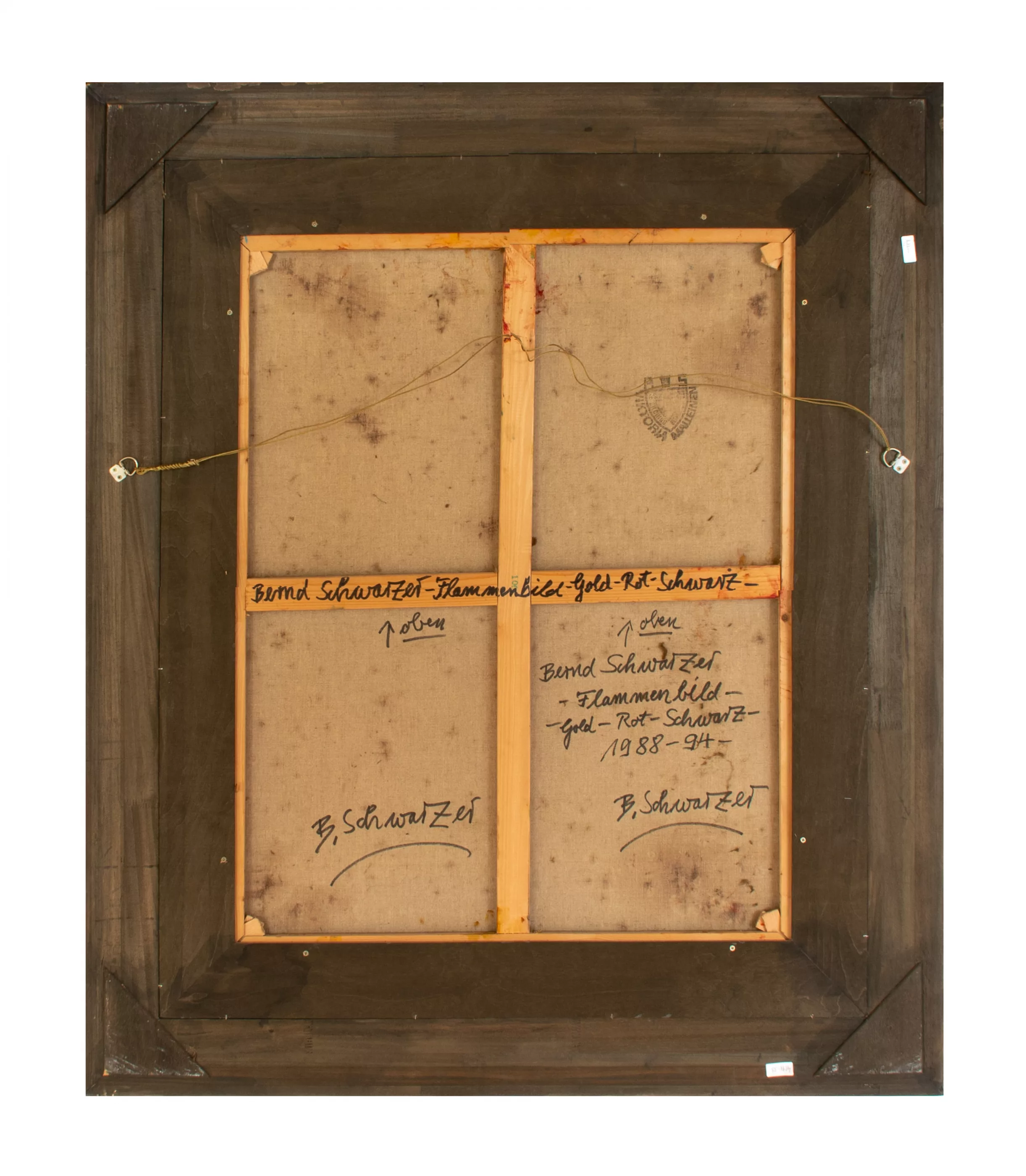 'Flammenbild, Gold, Rot, Schwarz', oil on canvas, 80 cm x 105 cm canvas dimensions, signed on verso, dated 1988-1994, partially rubbed