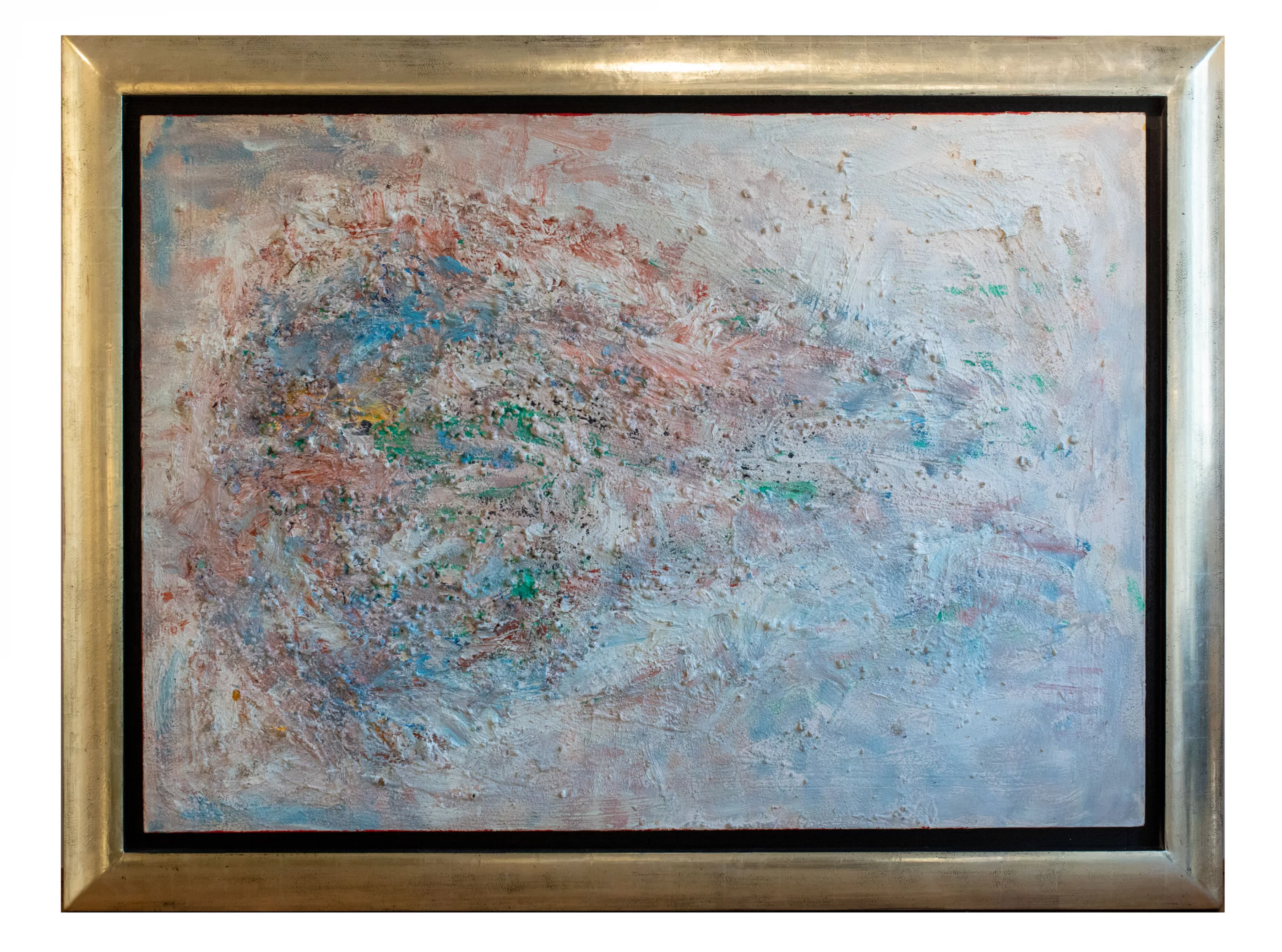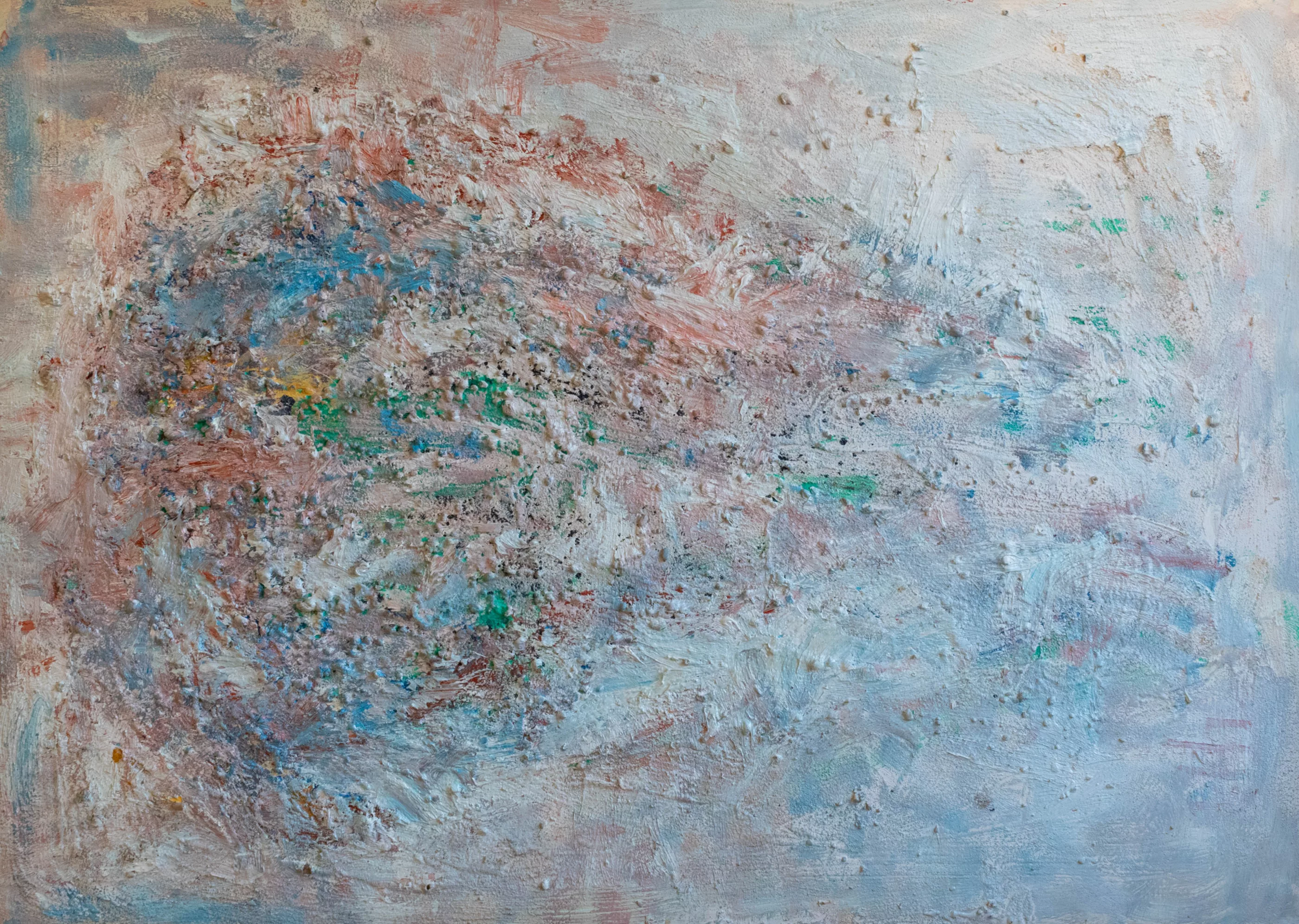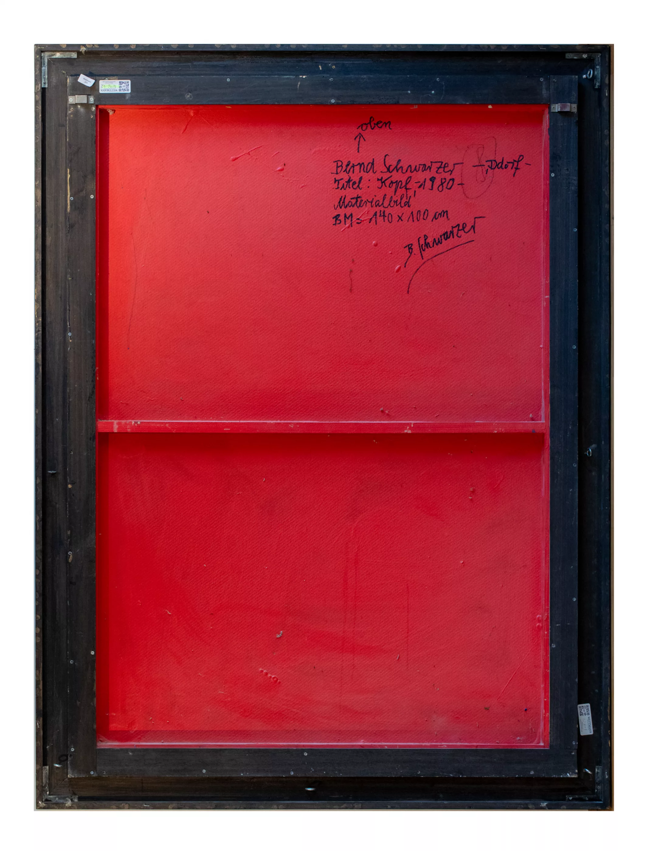 Head - 1980 - material painting, mixed media on wood panel, 140 × 100 cm, signed, titled, and dated on the reverse, partially with minor rubbing