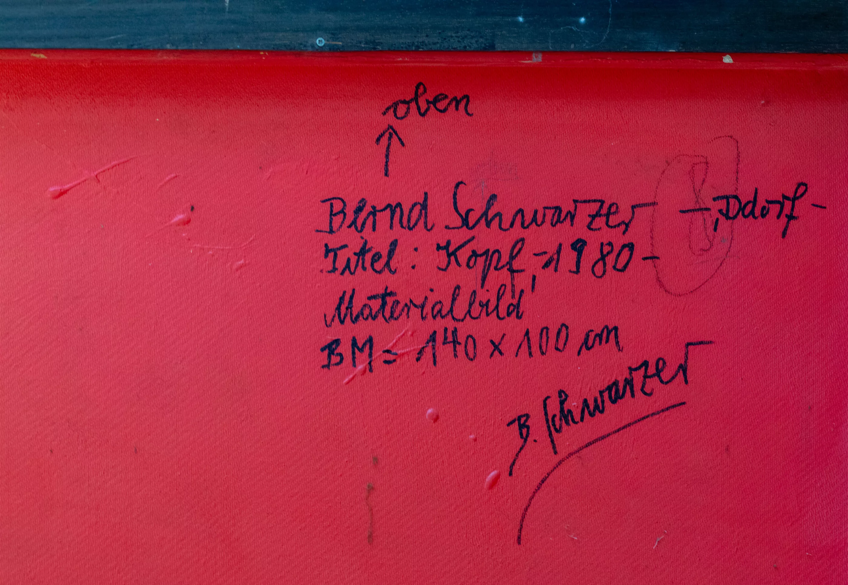 Kopf - 1980 - Materialbild, Mischtechnik auf Holzplatte, 140 x 100 cm, verso signiert, betitelt und datiert, partiell minimal beri