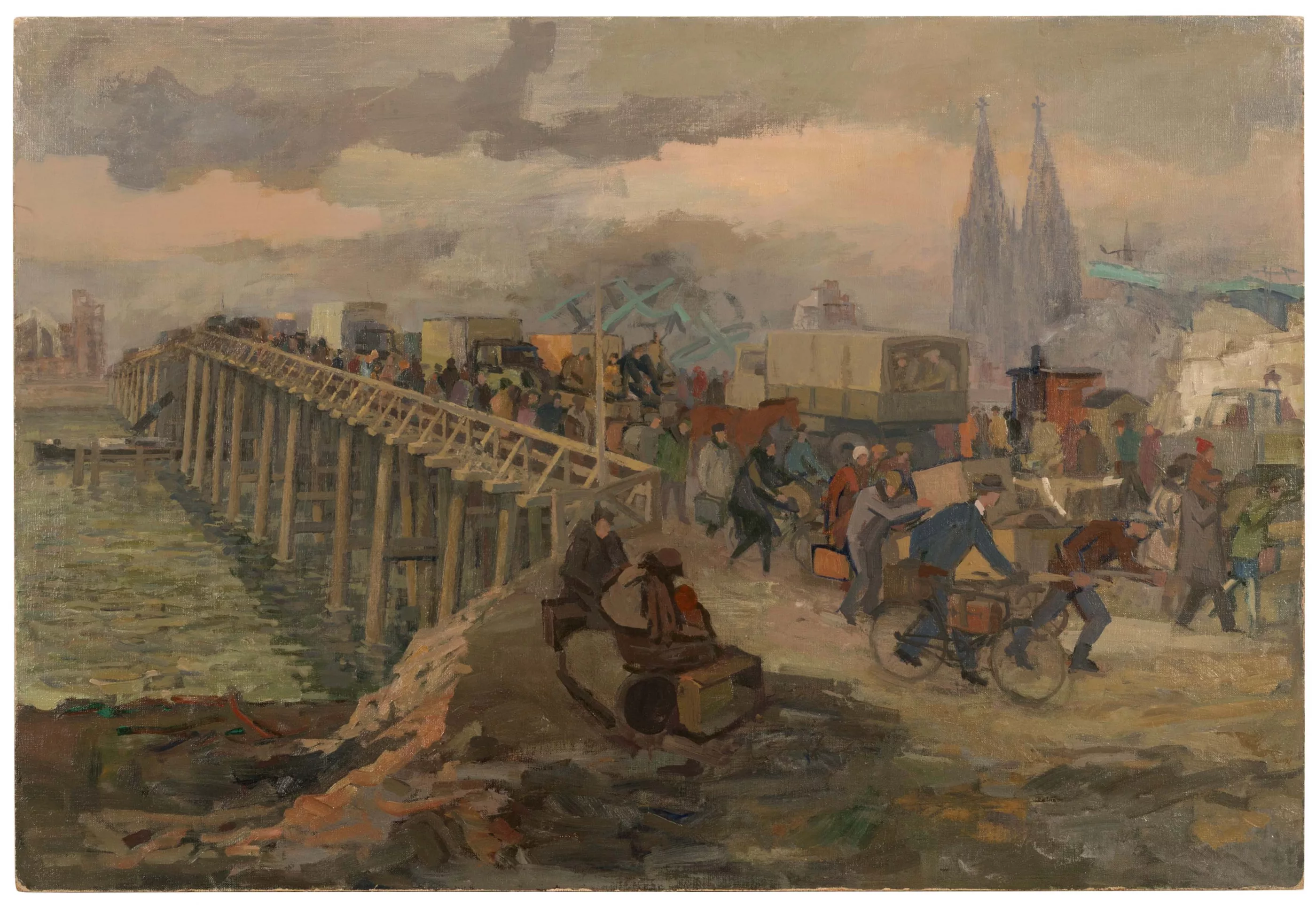 Stadtansicht von Köln, Kriegsende 1945, Öl auf Spanplatte, 51 cm x 75 cm Werkmaß, partiell craqueliert