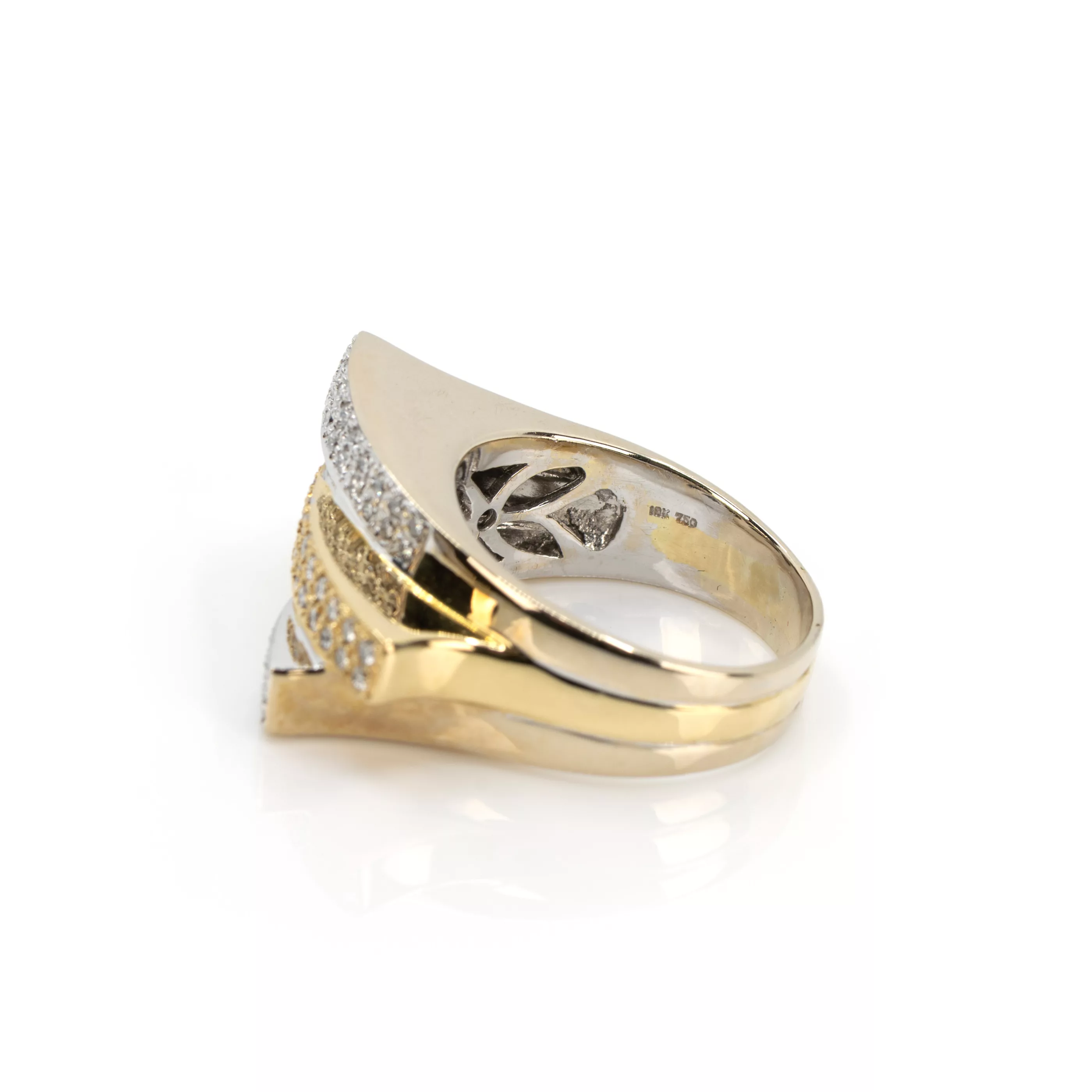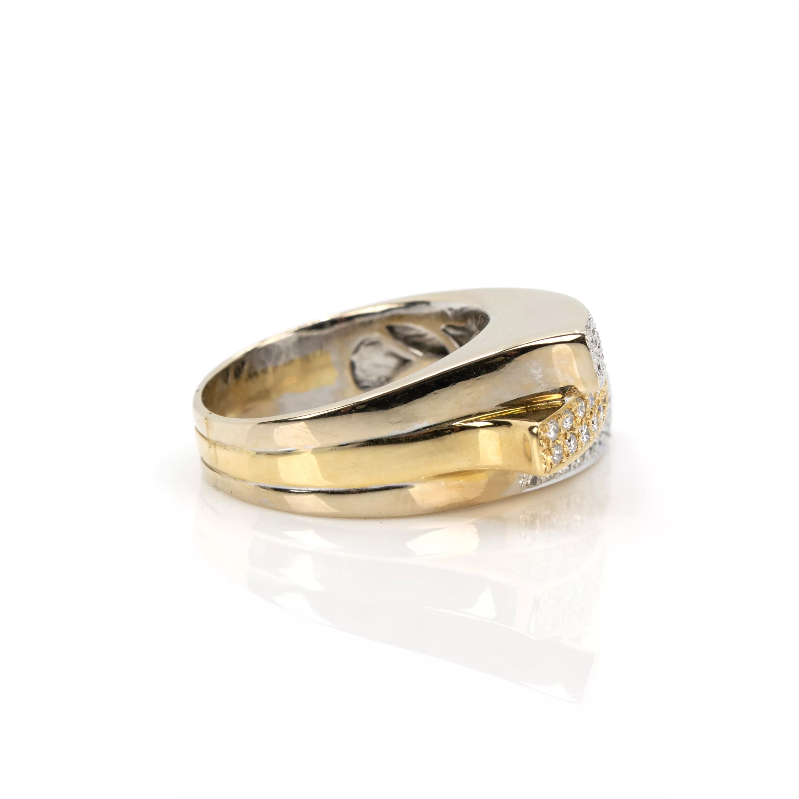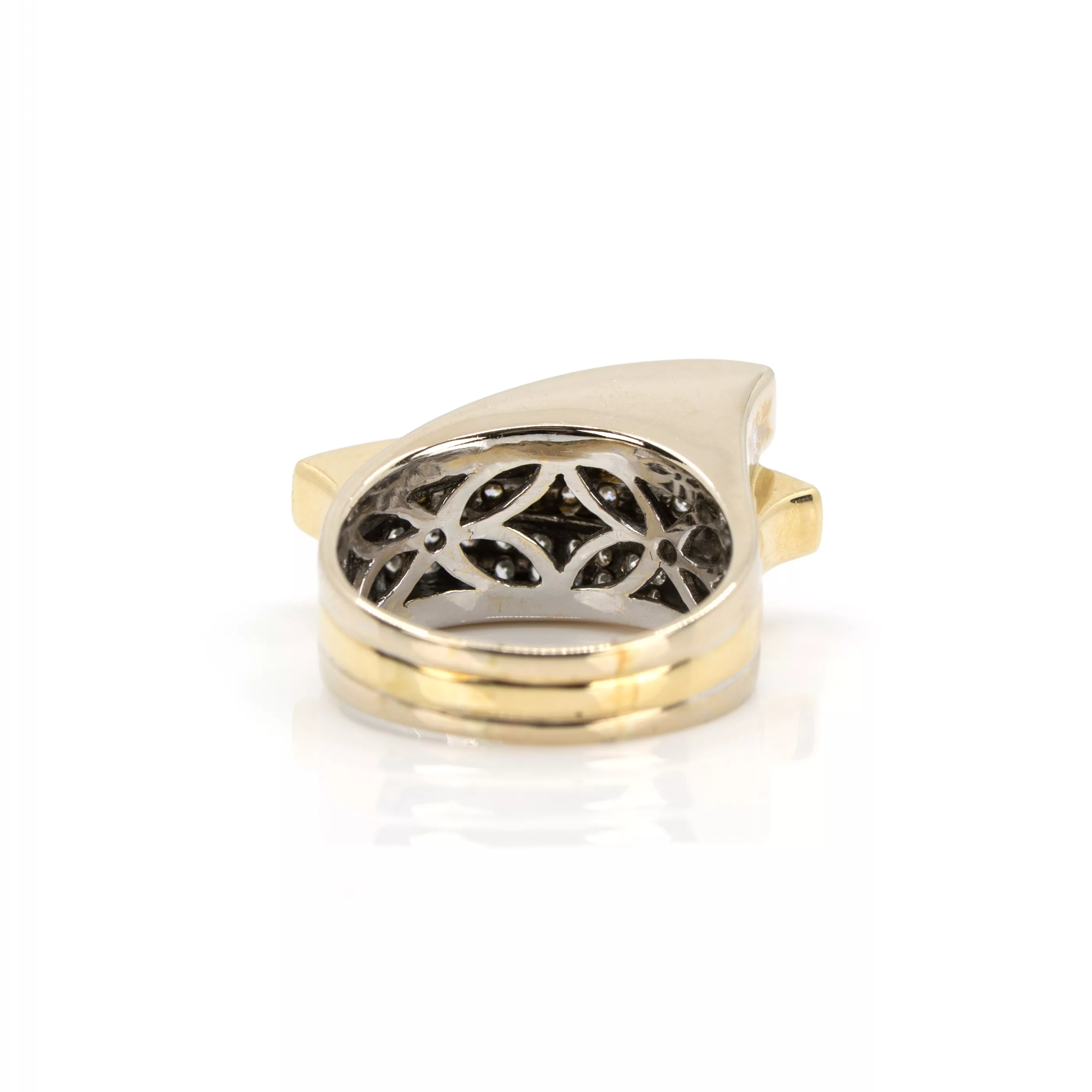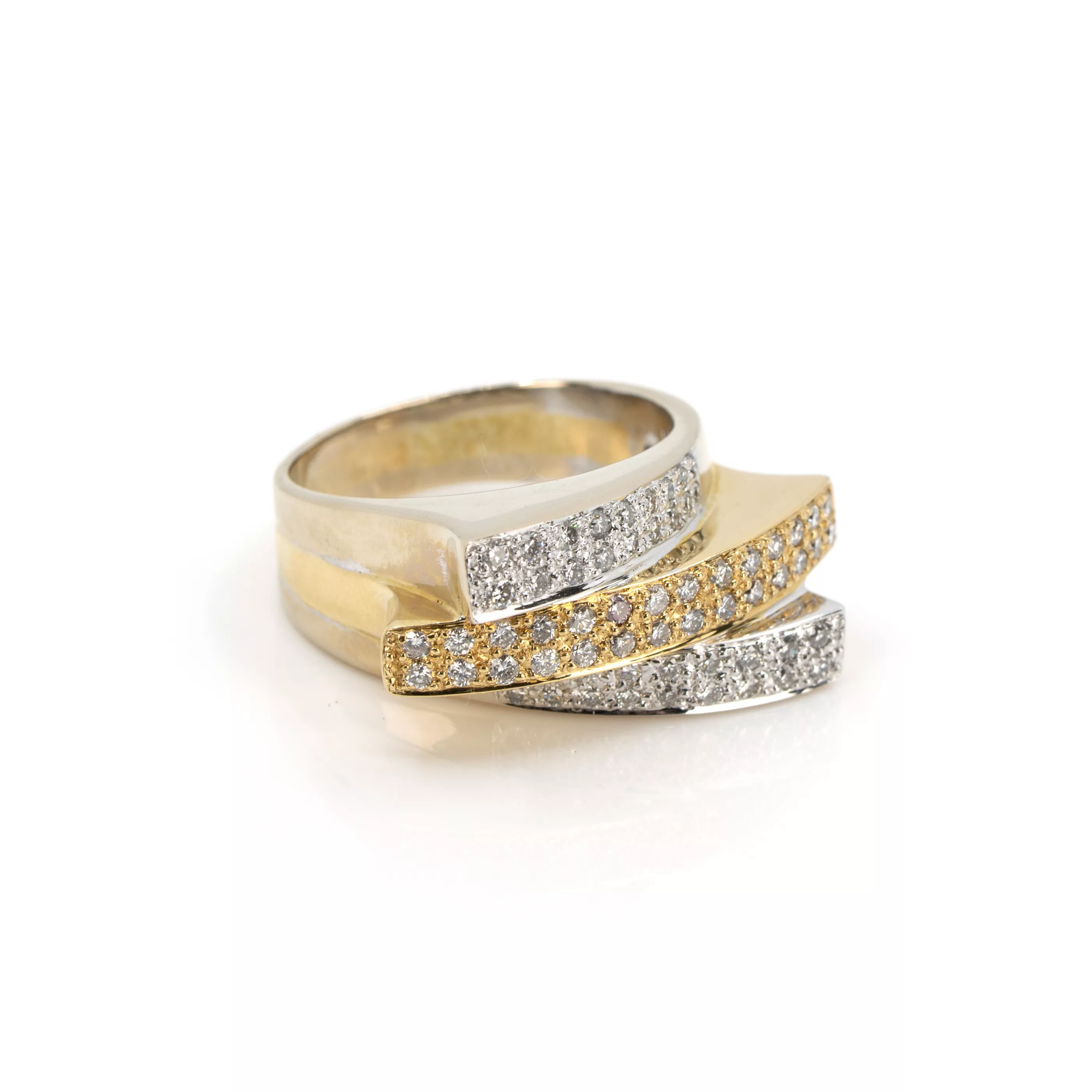 750 Gelb- und Weißgold, punziert, 64 Diamanten im Brillantschliff, gesamt ca. 0,81 ct, G, si-pi, RW 58, Gewicht ca. 14,6 g, Expertise von 2002 anbei