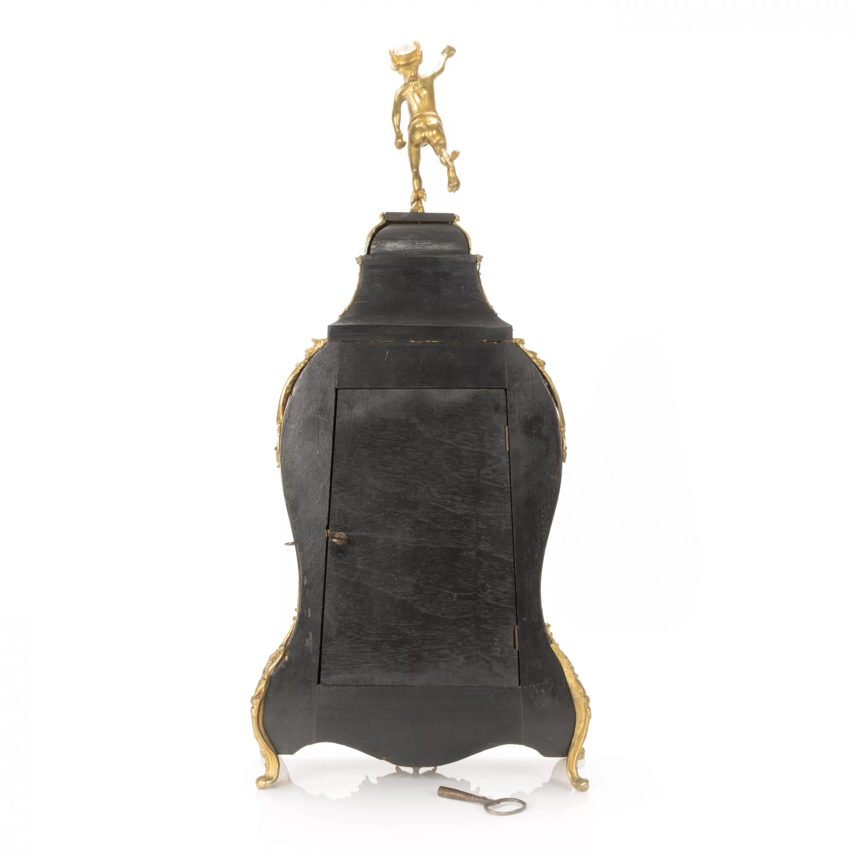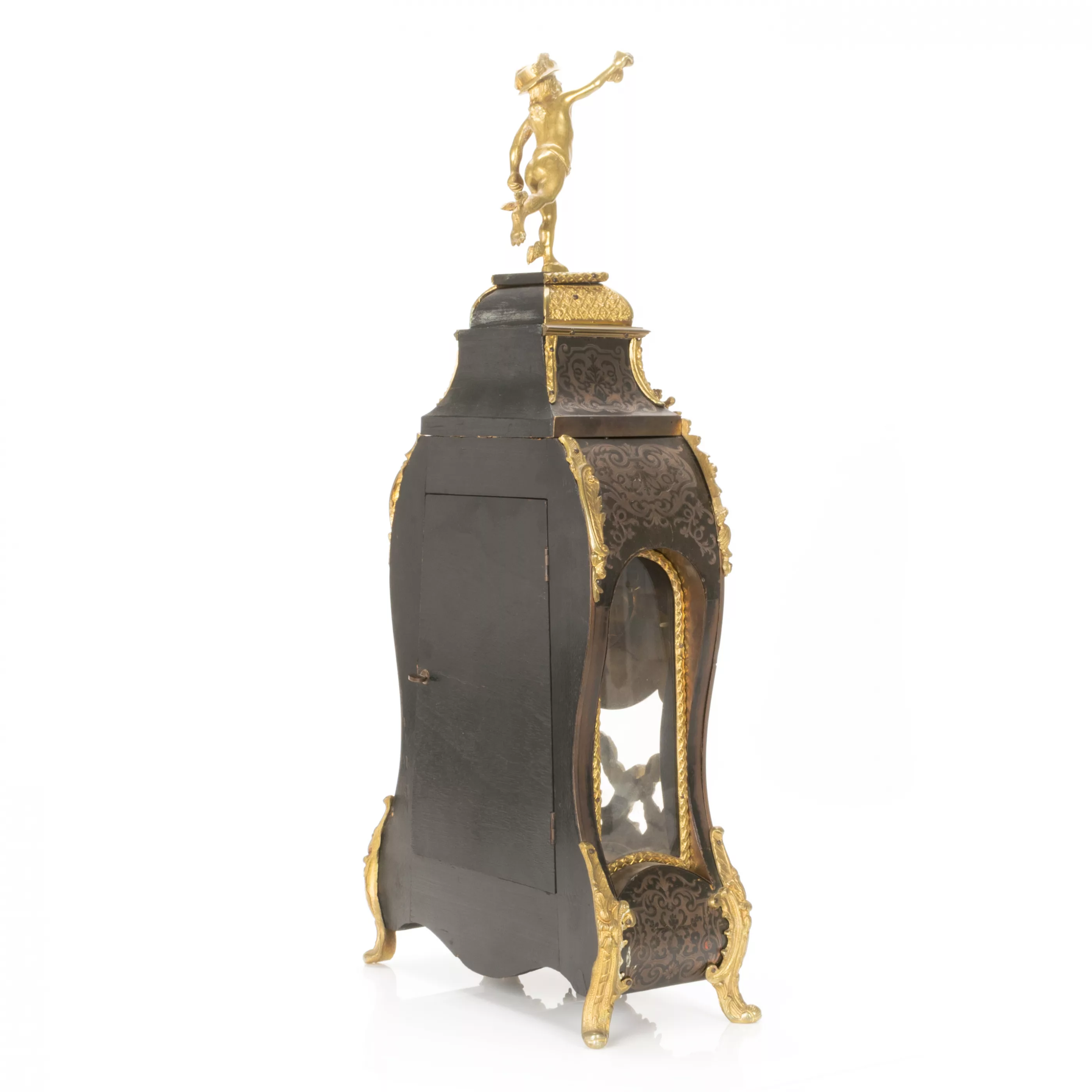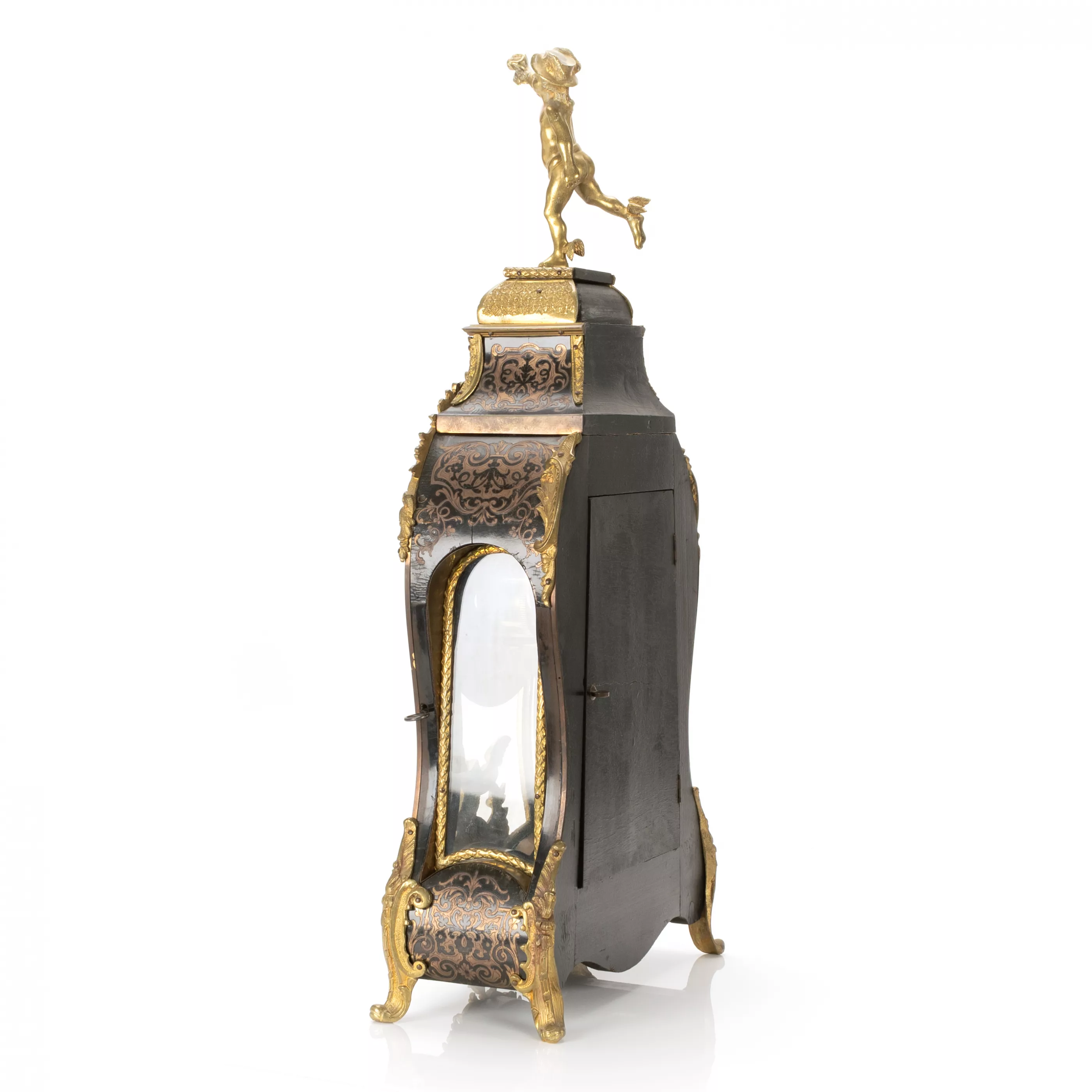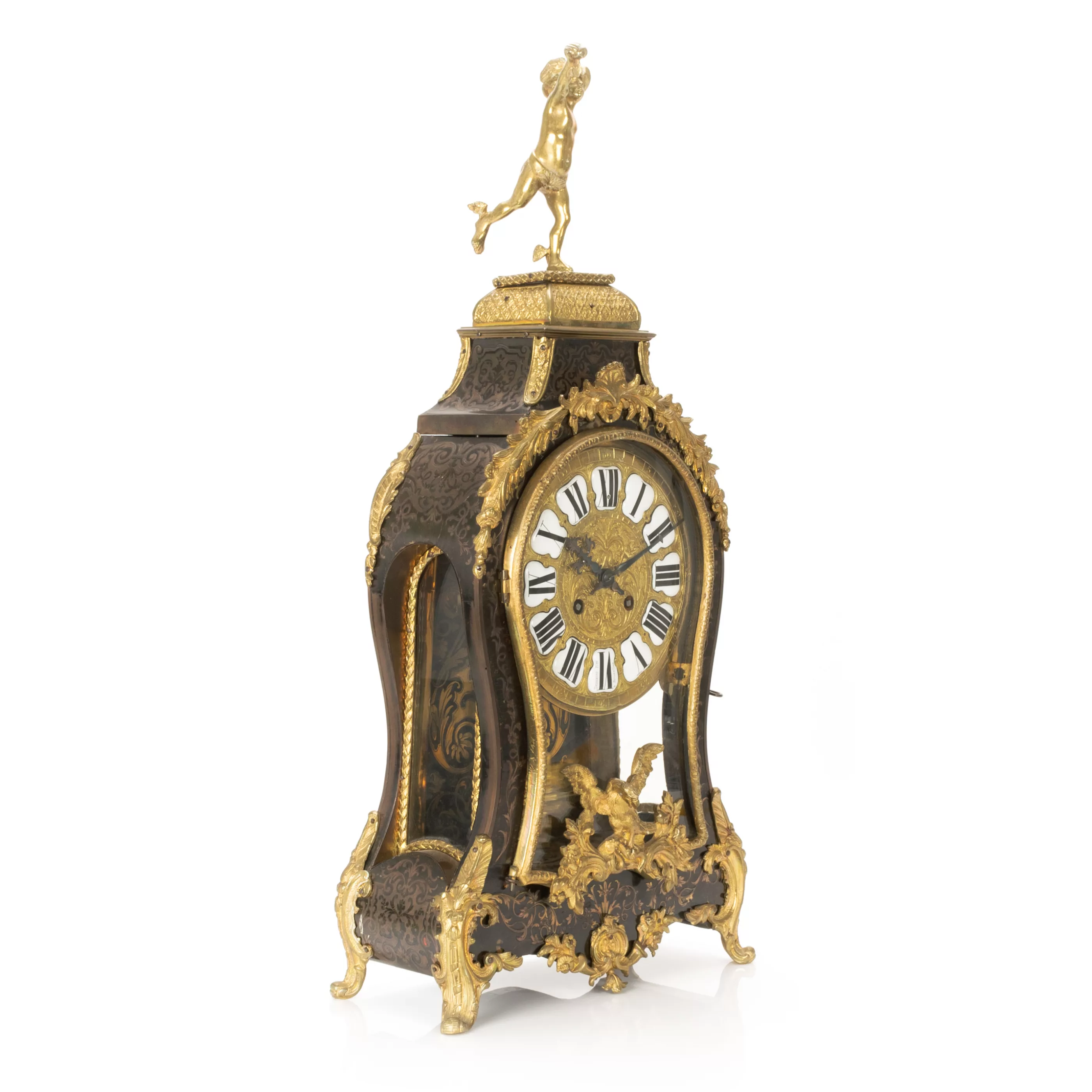 Dessaint Plet Bruxelles, Frankreich/Belgien, Mitte/Ende 19. Jh., allseitig geschweiftes Boulle-Intarsien-Gehäuse bekrönt mit Hermesfigur,...