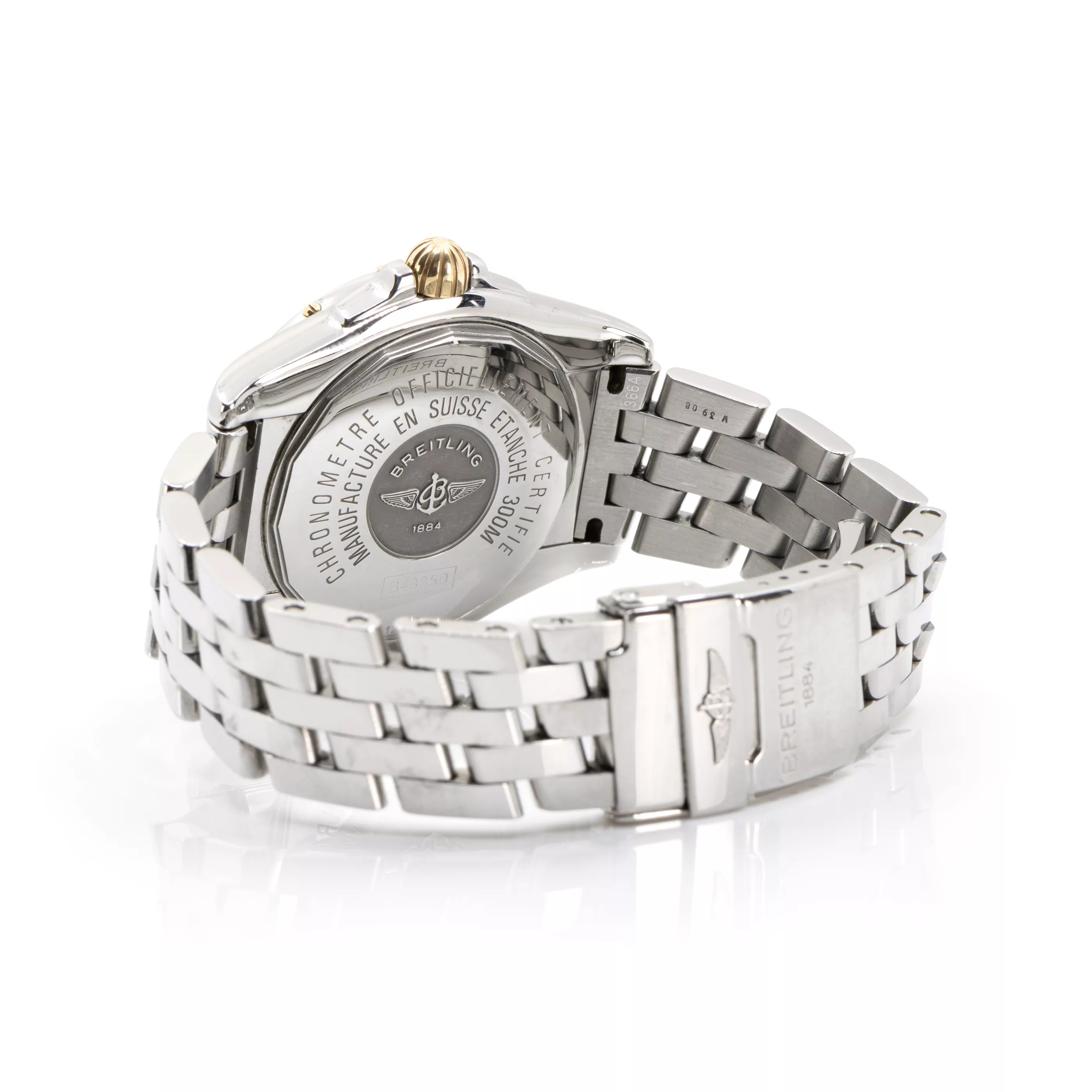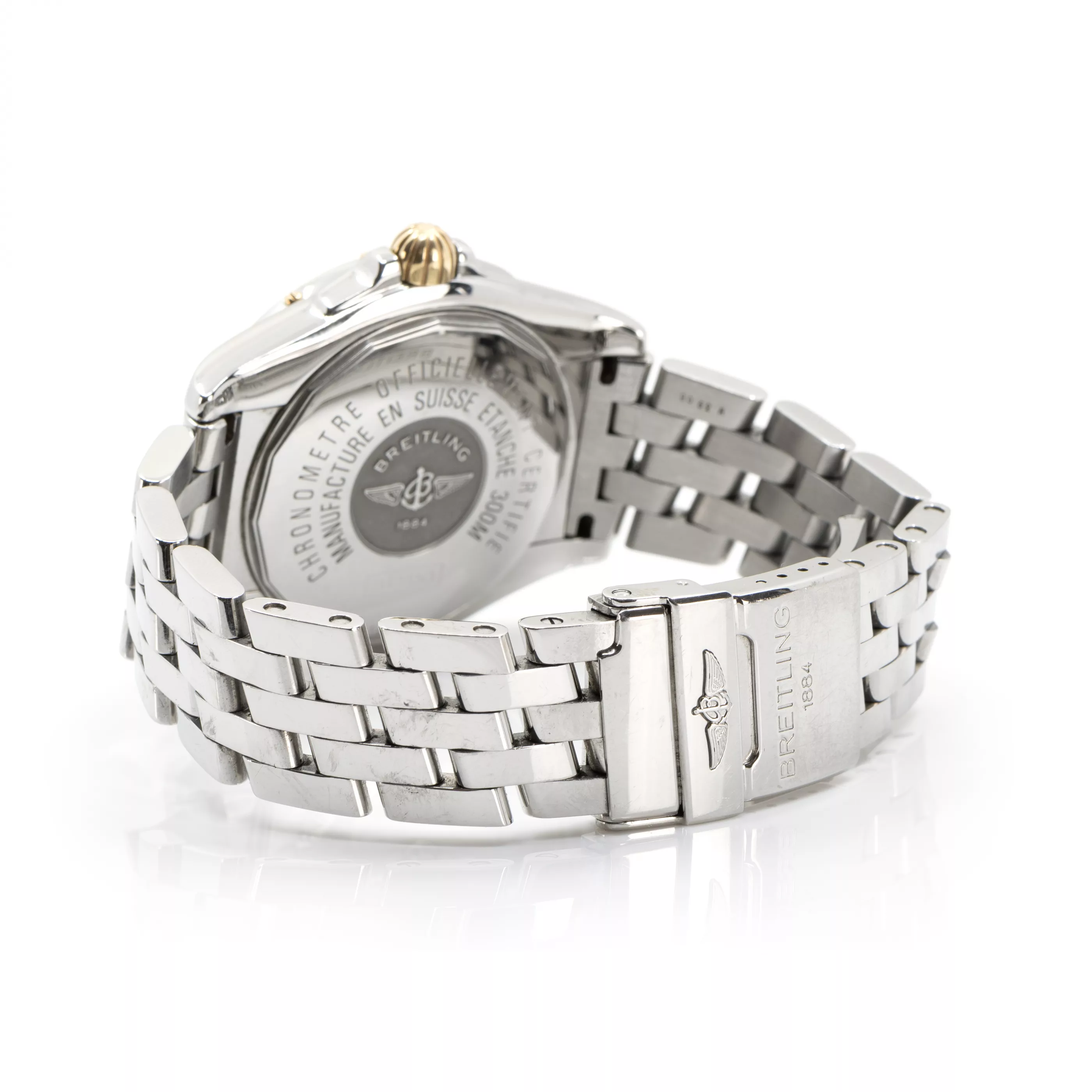 2000er, Automatik, schwarzes Zifferblatt mit goldenen Indizies, verschraubte Krone, Saphirglas, Gehäuse-Nr. 1293132 | Ref-Nr. B49350 | Cal. B49, Gehäuse Stahl/Gelbgold, Durchmesser 40 mm, Original-Armband, Stahl, Original-Schließe, Stahl, Länge 18,5 cm, Gesamtgewicht ca. 173 g, Funktion geprüft, gangbar, Zustand gut, Schließe mit Tragespuren, ohne Original-Box oder -Papiere