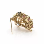 750 yellow gold, hallmarked, 30 brilliant cut diamonds, total approx. 0.30 ct, 34 faceted rubies, sapphires and emeralds and 1 opal cabochon, total approx. 1.00 ct, 2.5 cm x 2.7 cm, weight approx. 7.6 g