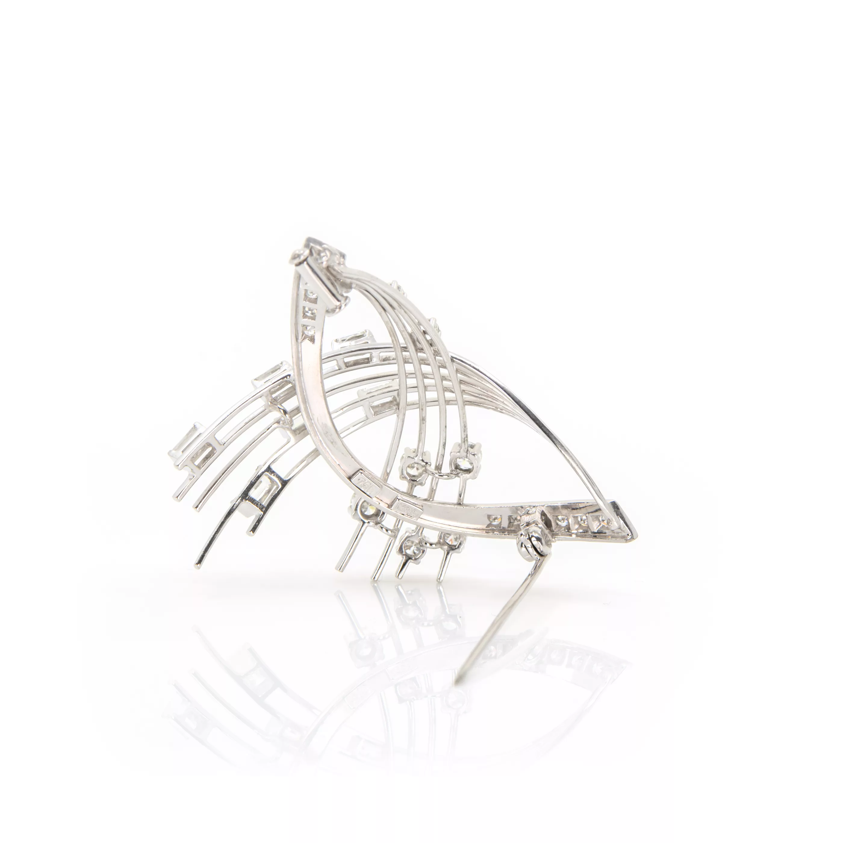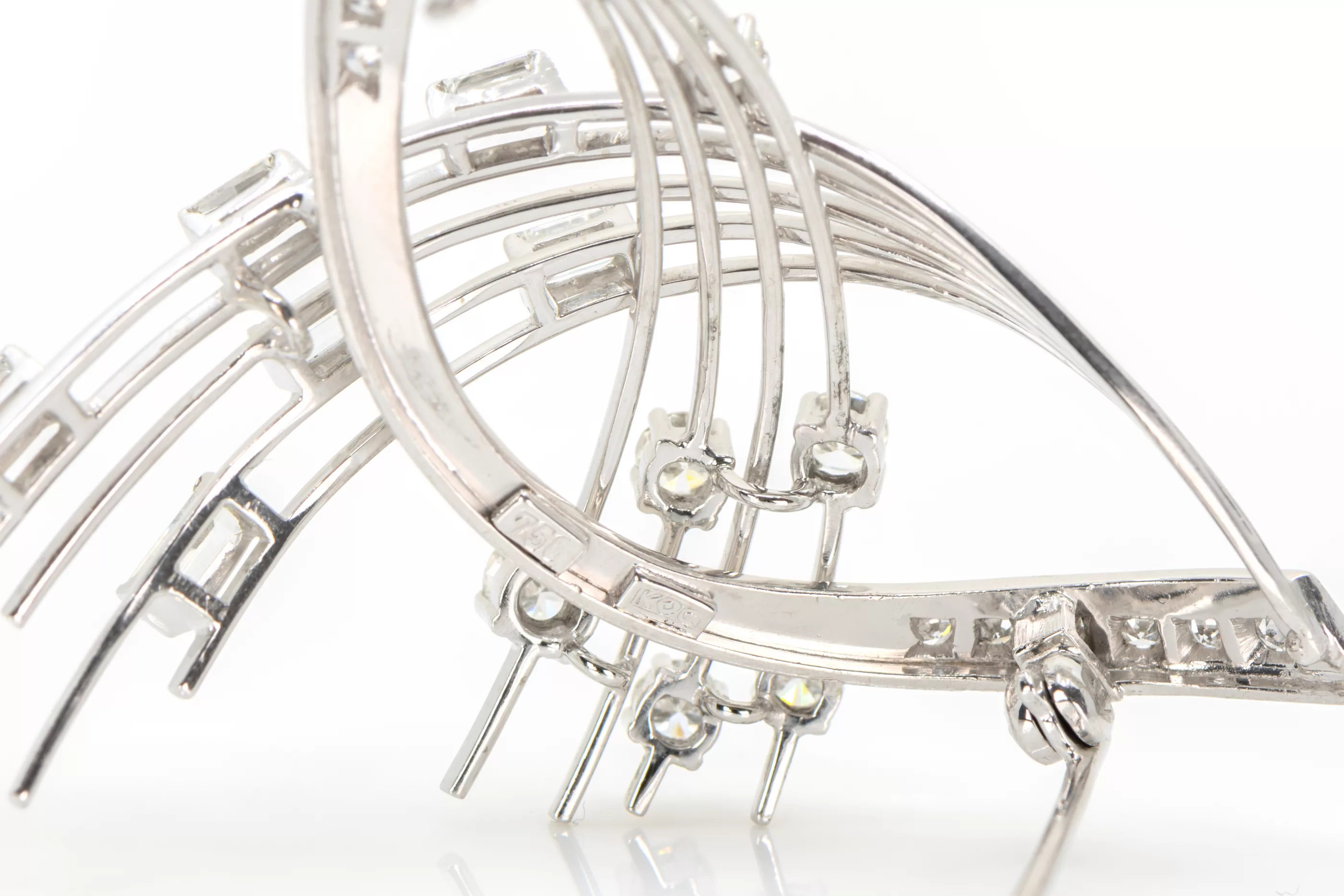 750 Weißgold, punziert, 19 Diamanten im Brillantschliff und 6 Diamaten im Baguetteschliff, gesamt ca. 0,77 ct, G, vvs, Länge 4,6 cm, Gewicht ca. 10,2 g