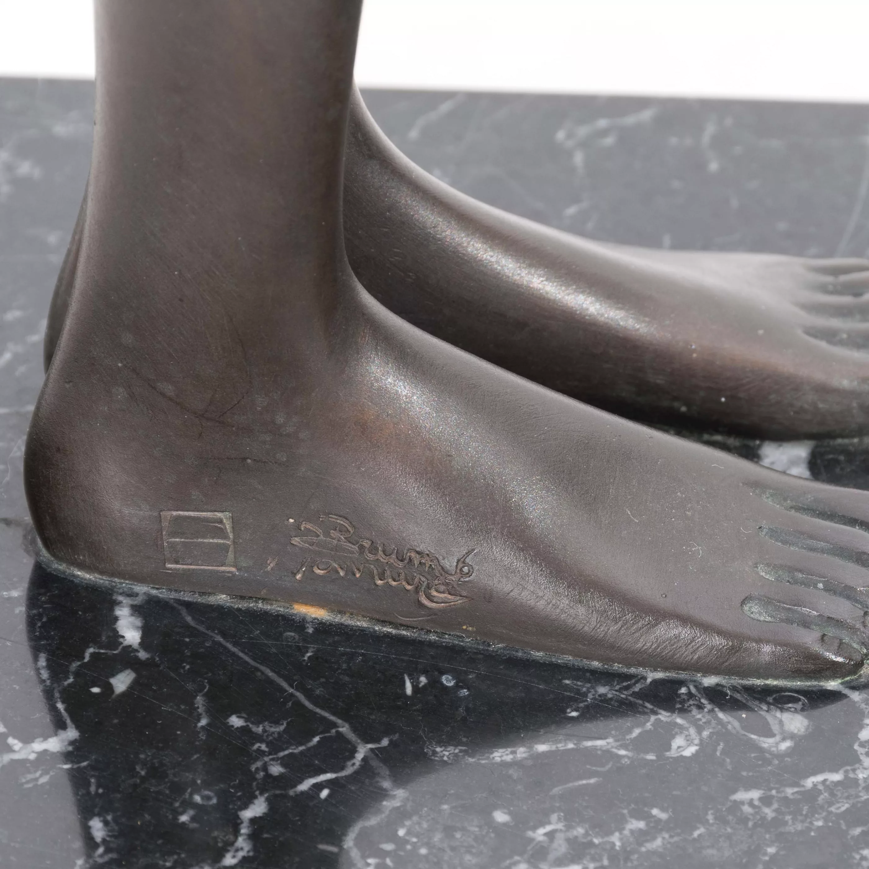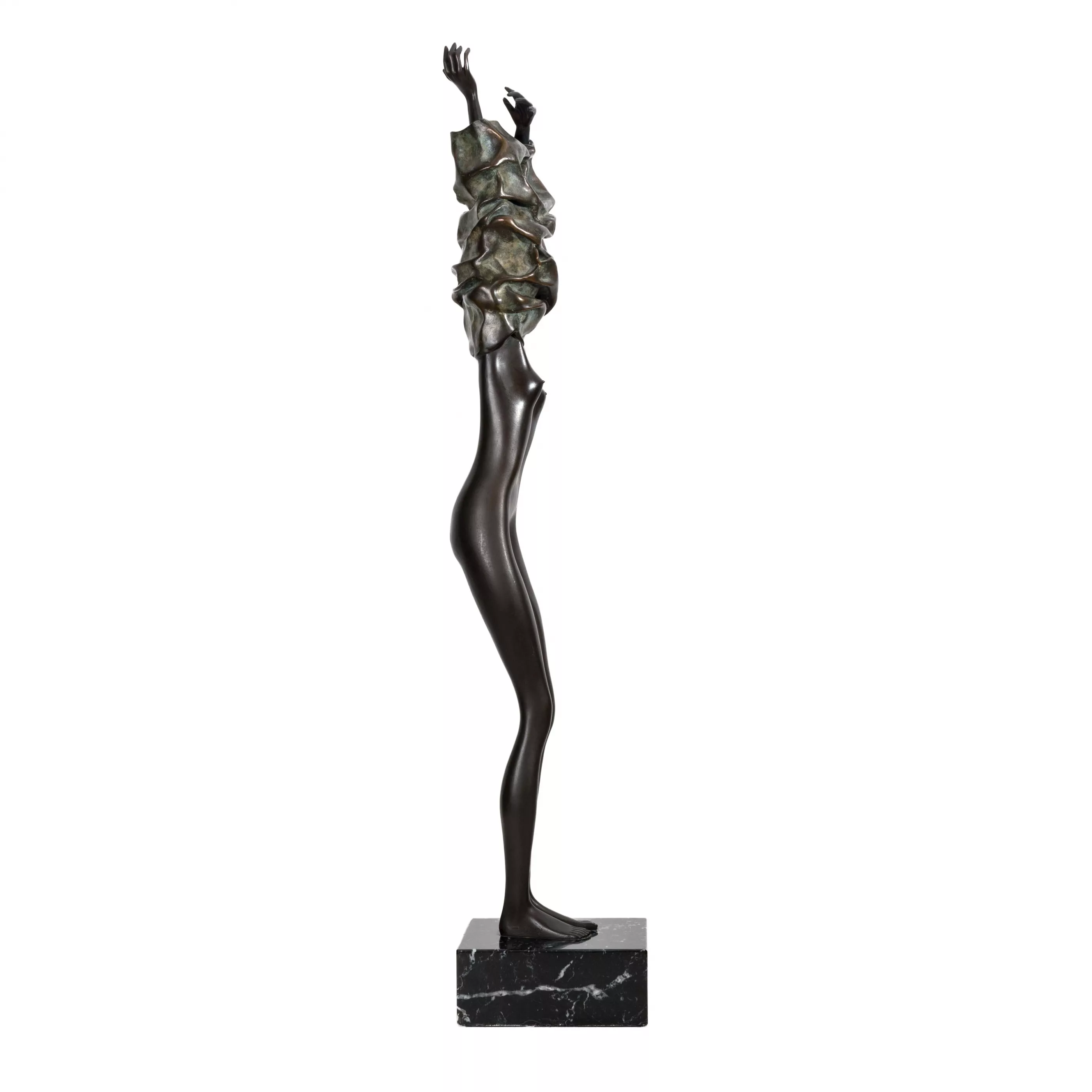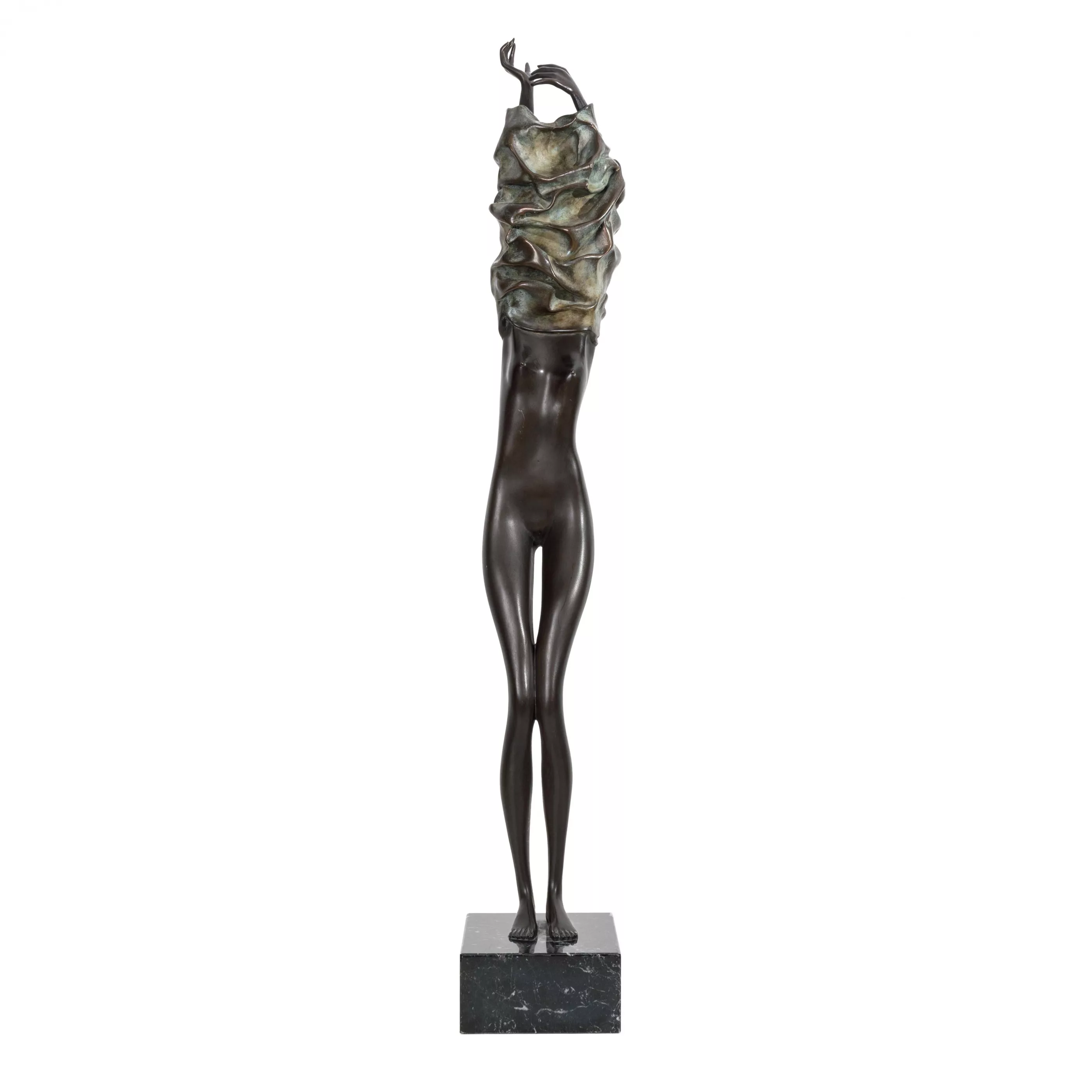 'Donna che si veste', bronze, brown and partly green patinated on a marble base, 1986, height (with base) 77 cm, signed in the cast, numbered 392/450, venturi arte foundry mark, slight scratches in places, base minimally bumped
