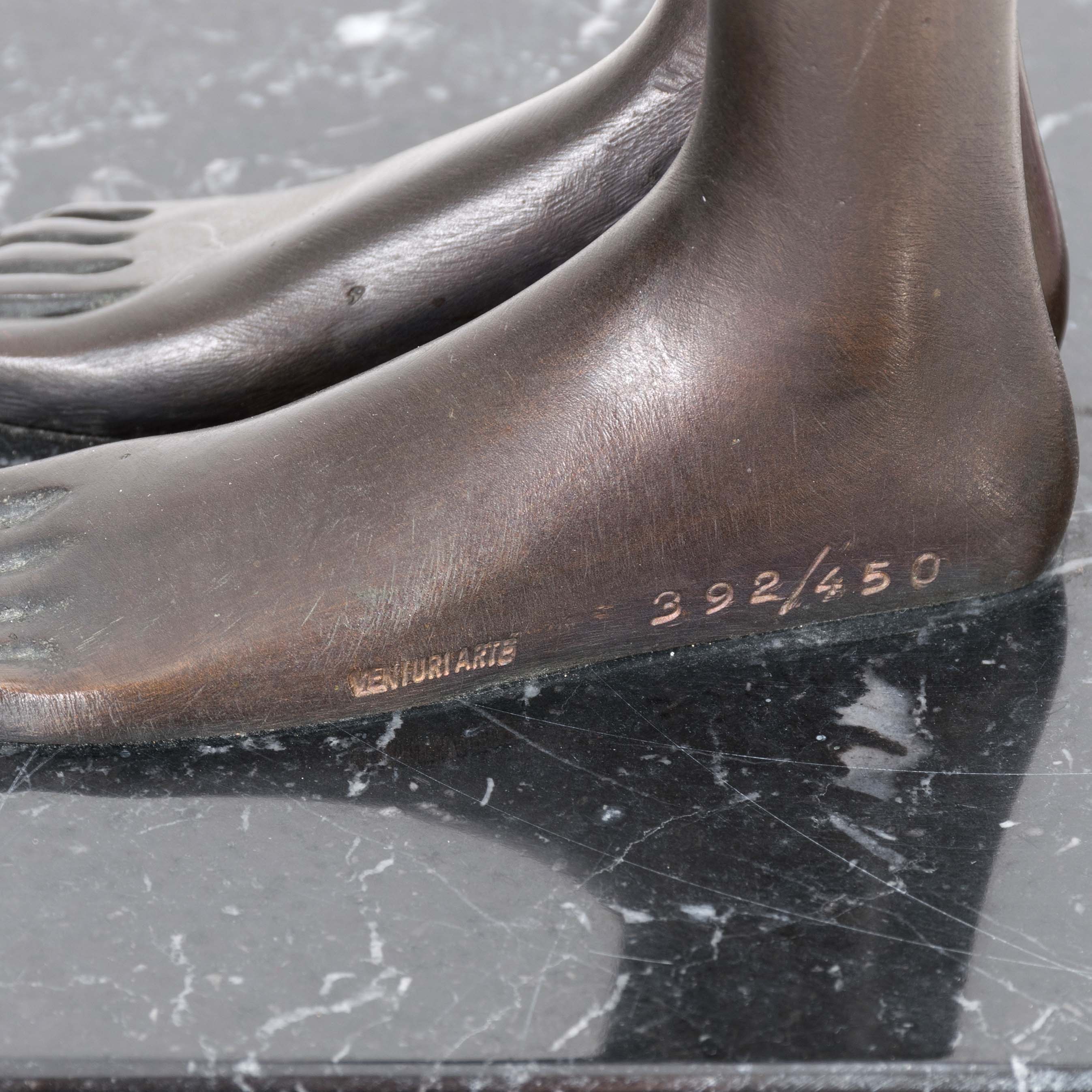 'Donna che si veste', Bronze, braun und teils grün patiniert auf Marmorsockel, 1986, Höhe (mit Sockel) 77 cm, im Guss signiert, 392/450 nummeriert, Gießerstempel 'venturi arte', partiell leichte Kratzer, Sockel minimal bestoßen