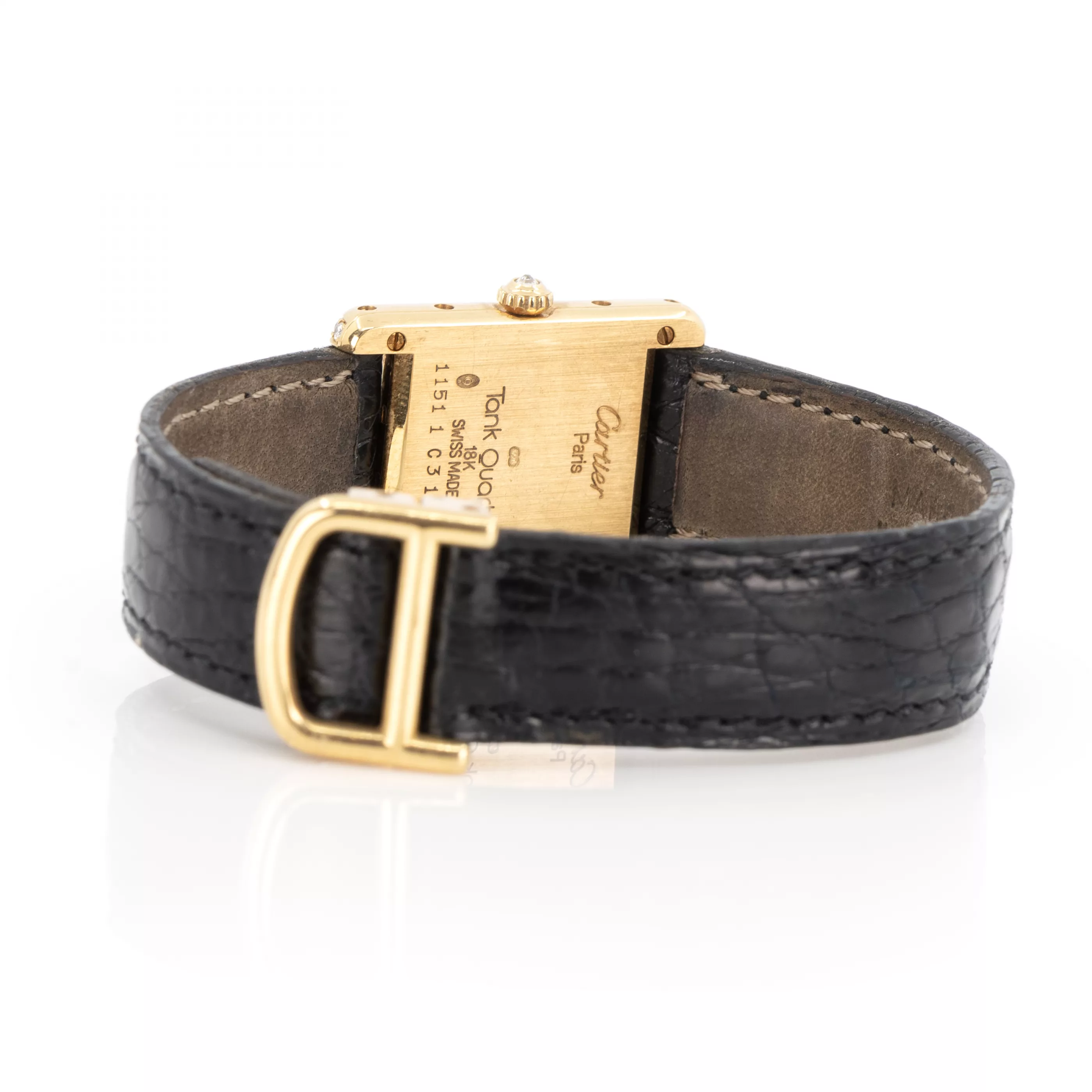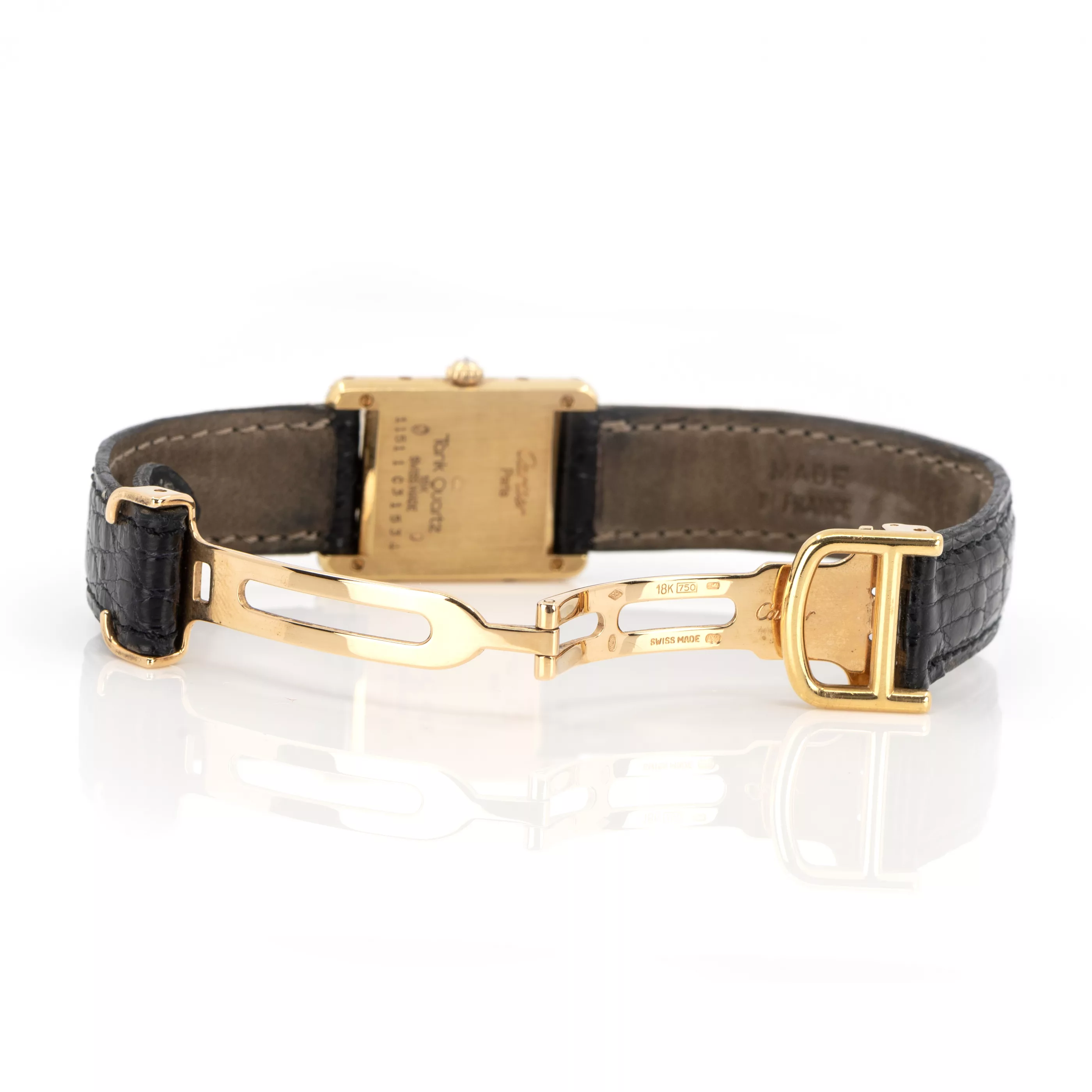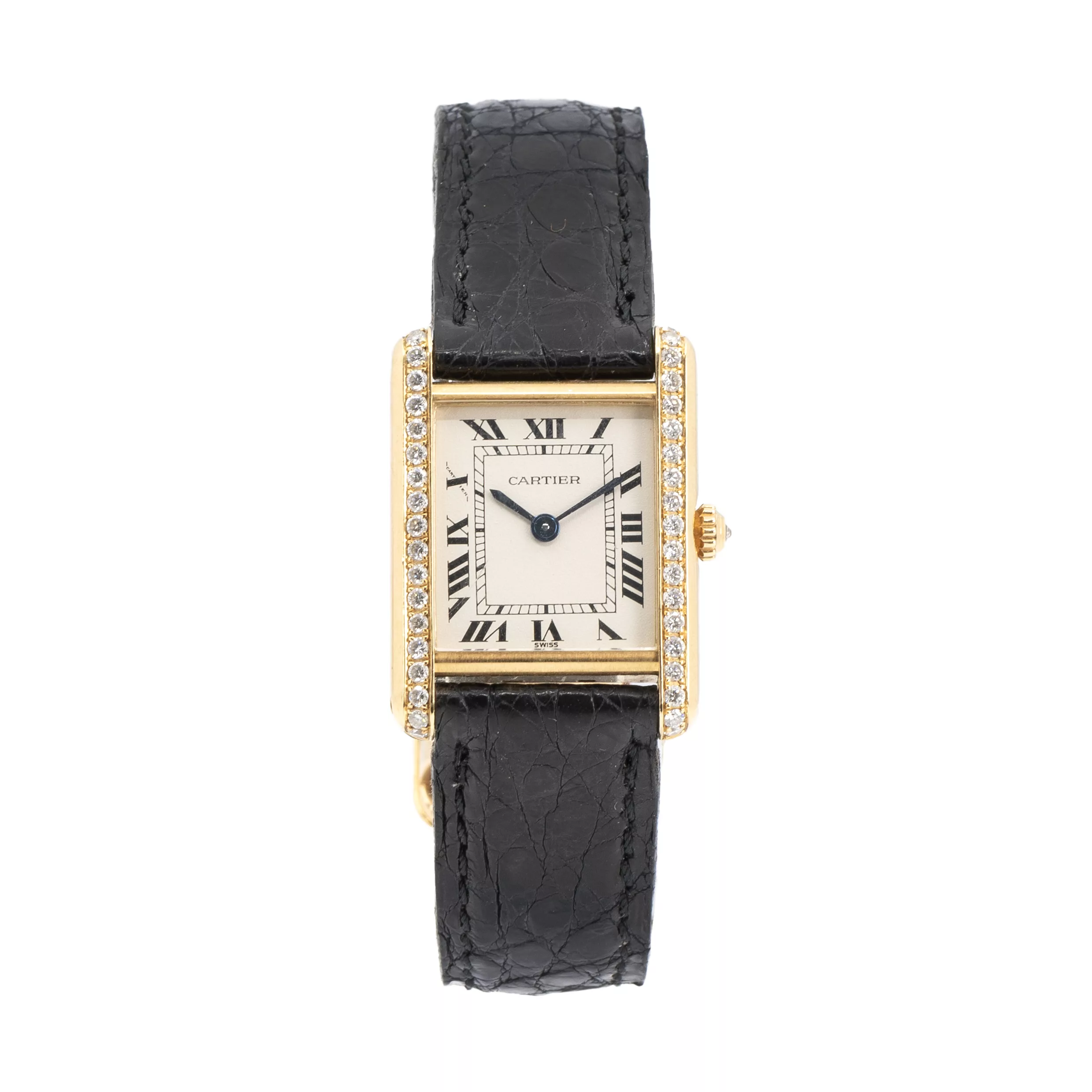 Year 1996, quartz movement, case set with 38 brilliant-cut diamonds, brilliant-cut diamond crown, individual no. 1 C 31534 | ref. no. 1151, case 18k yellow gold, hallmarked, dimensions 27 mm x 20 mm, original bracelet, leather, original folding clasp, 18k yellow gold, hallmarked, length 15 cm, total weight approx. 33.2 g, not functional, tested, battery replacement required, condition good, condition and functionality tested by our master watchmaker, without original box, with original papers, original replacement bracelet, satin, enclosed, note: The buyer's premium is 25% incl. VAT. For the use of the online bidding consoles there is an additional fee of 3% plus VAT (3.57%).
