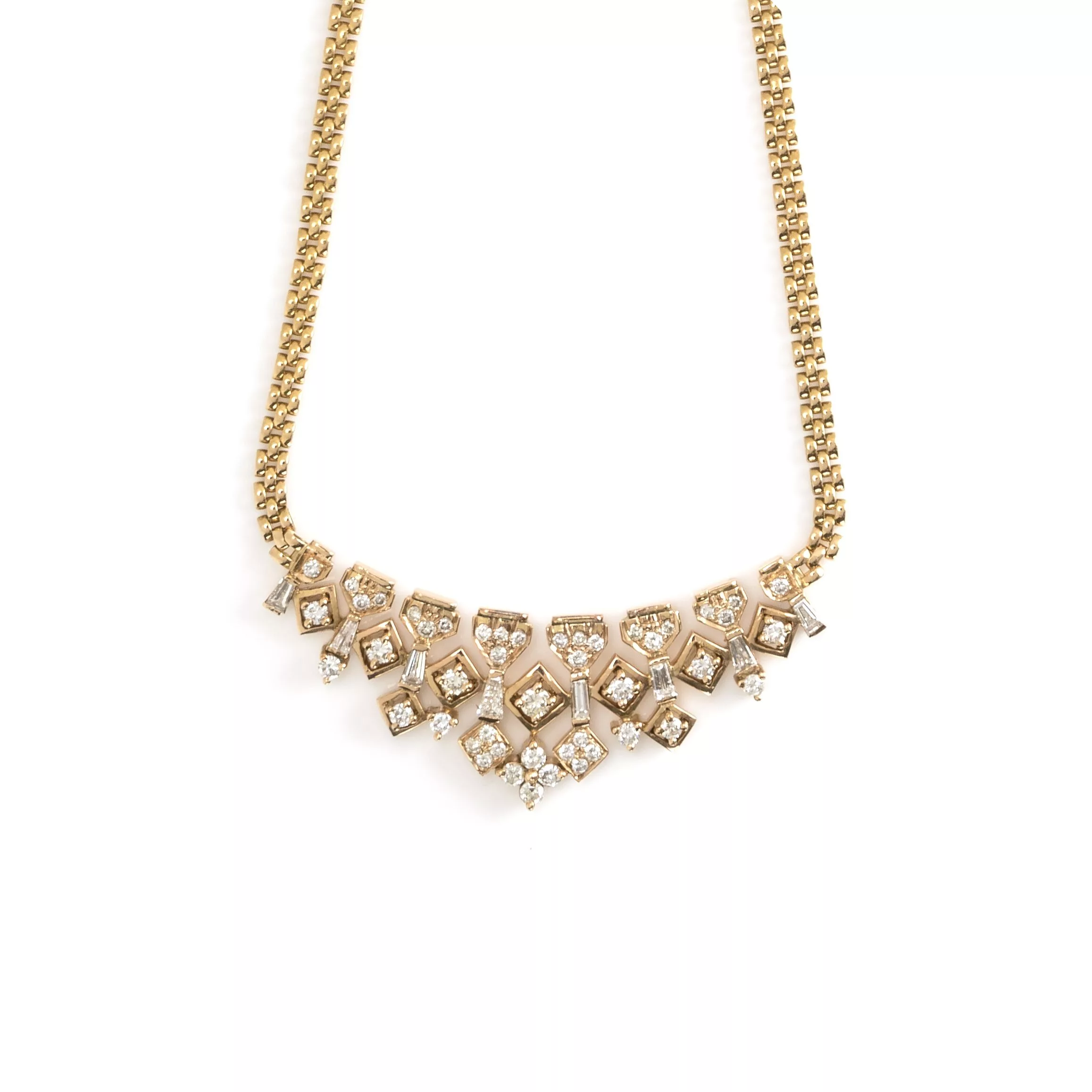 Collier mit Brillantbesatz750 Gelbgold, punziert, 55 Diamanten im Brillant- und Trapezschliff, gesamt ca. 2,00 ct, H, vvs-vs, Länge 42 cm,...
