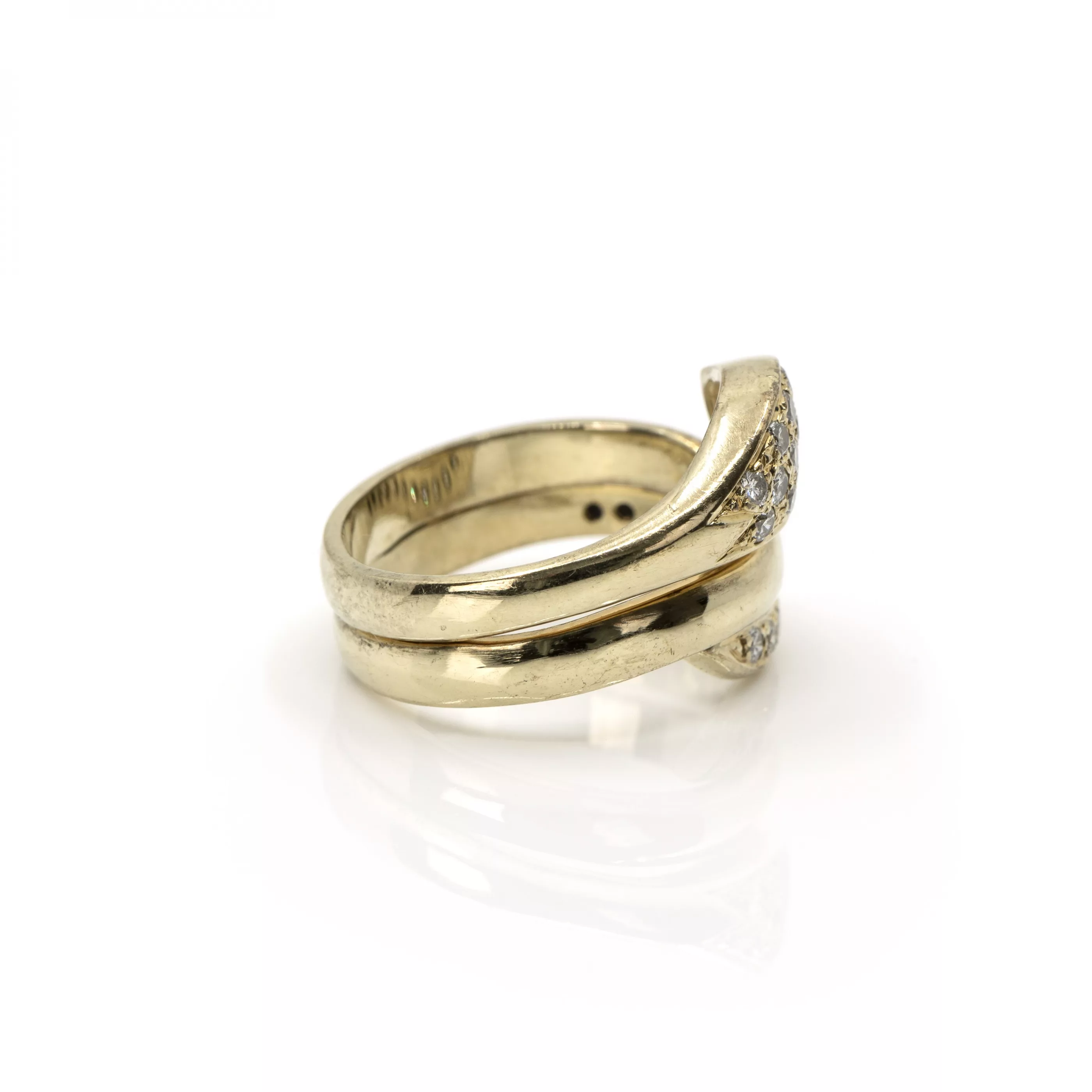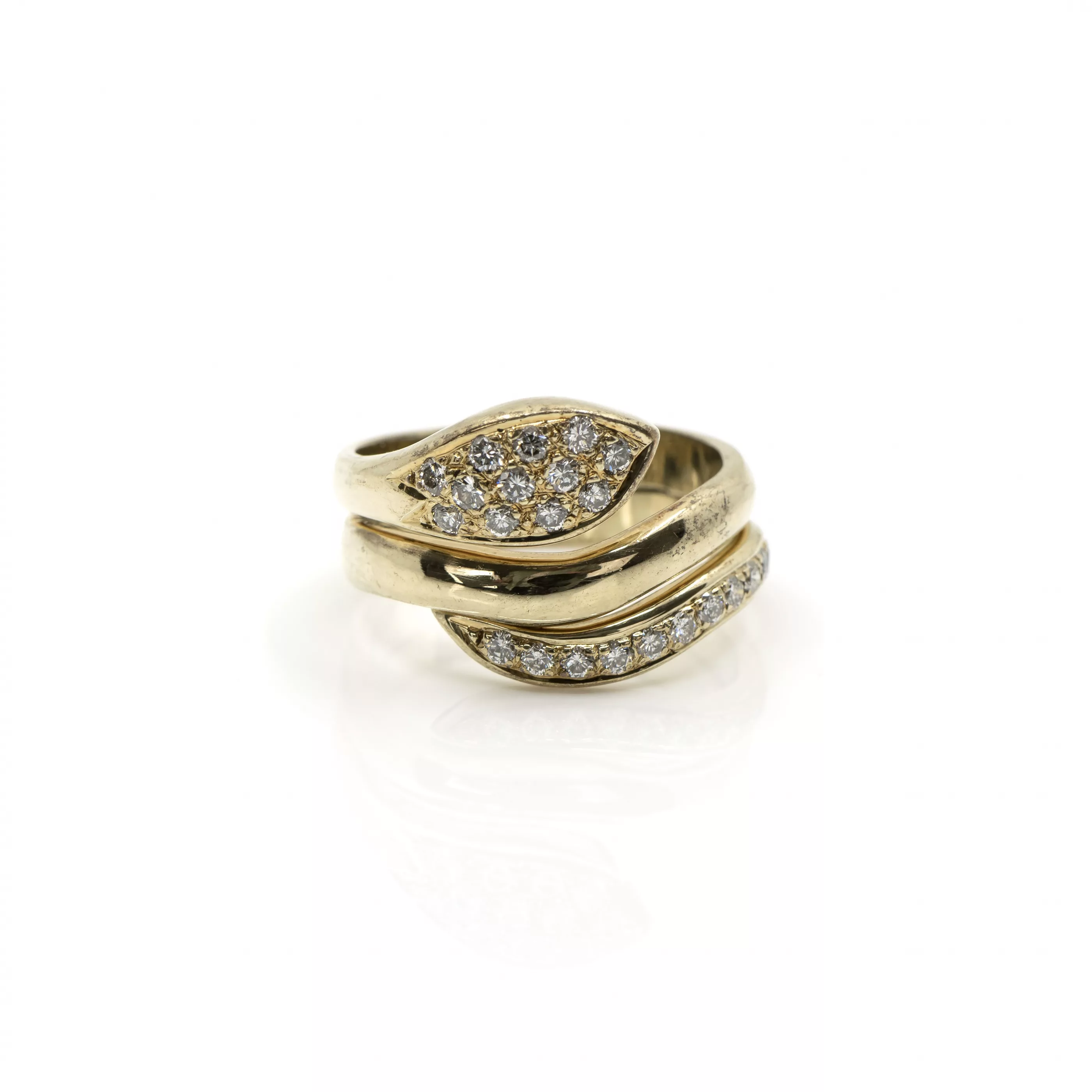 Damenring in Schlangenform585 Gelbgold, punziert, 23 Diamanten im Brillantschliff, gesamt ca. 0,46 ct, H, vs-si, Ringdurchmesser 17 mm,...
