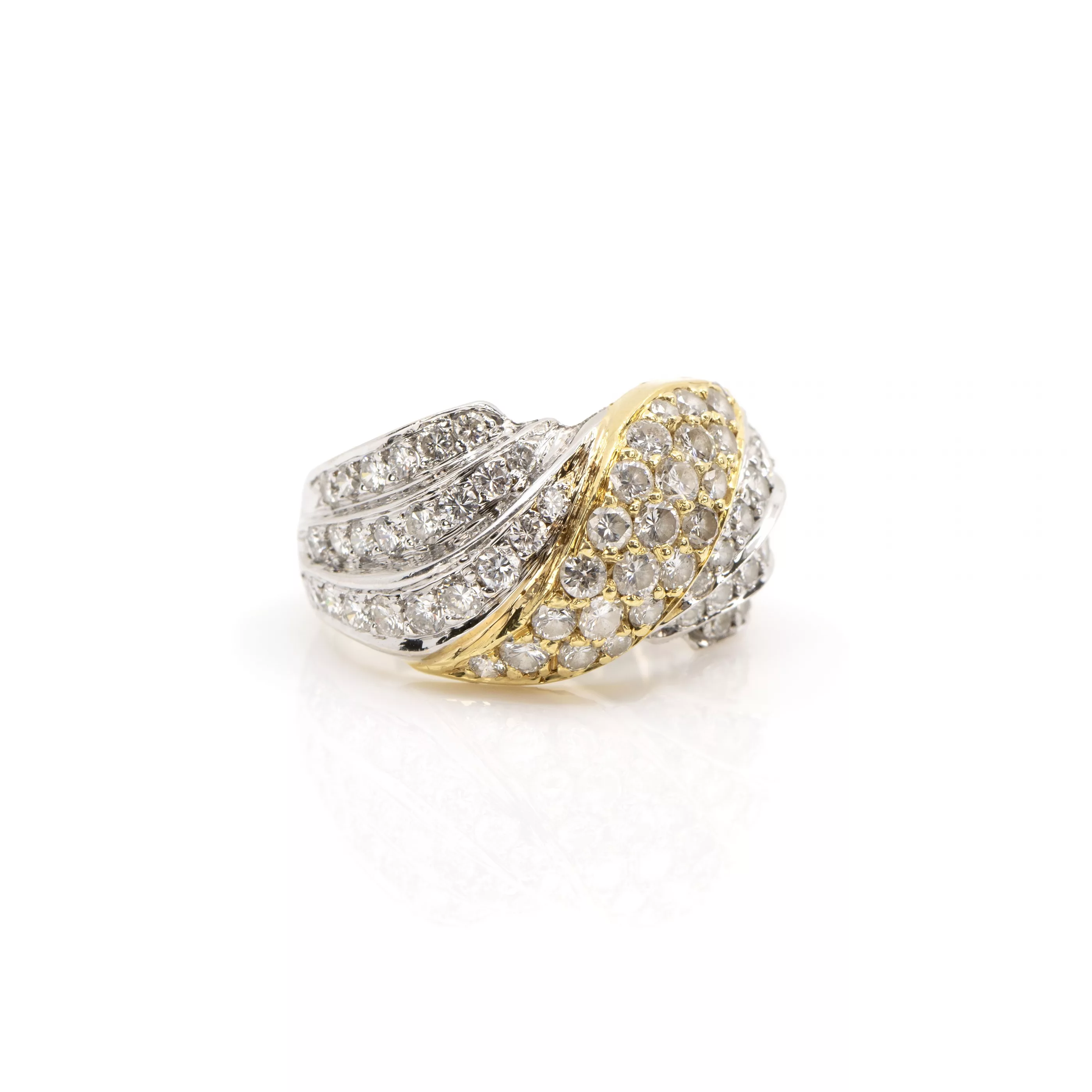 750 Weiß- und Gelbgold, geprüft, 75 Diamanten im Brillantschliff, gesamt ca. 3,00 ct, J, si-pi, Ringdurchmesser 17,5 mm, Gewicht ca. 9,3 g