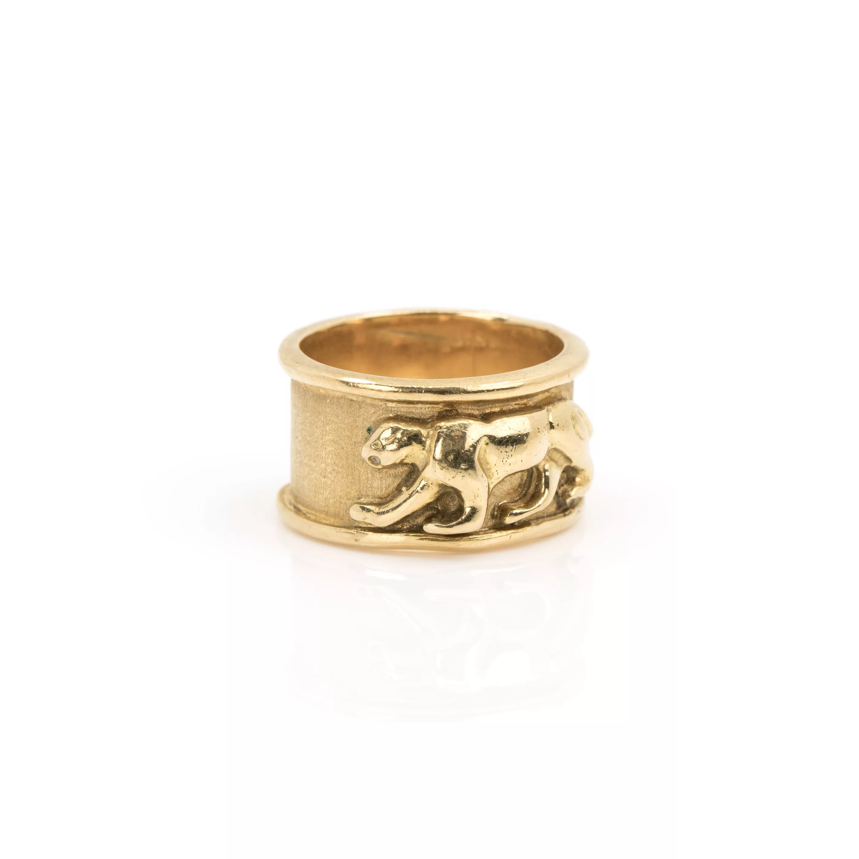 Ladies' ring with panther relief 750 yellow gold, hallmarked, ring diameter 16.5 mm, weight approx. 12.1 g