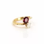 750 yellow gold, hallmarked, oval cut diamond, approx. 0.50 ct, H, vs, oval faceted ruby, approx. 1.00 ct, ring diameter 17.5 mm, weight approx. 6 g