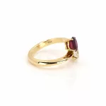 Damenring mit Rubin-Diamantbesatz750 Gelbgold, punziert, Diamant im Ovalschliff, ca. 0,50 ct, H, vs, oval facettierter Rubin, ca. 1,00 ct,...