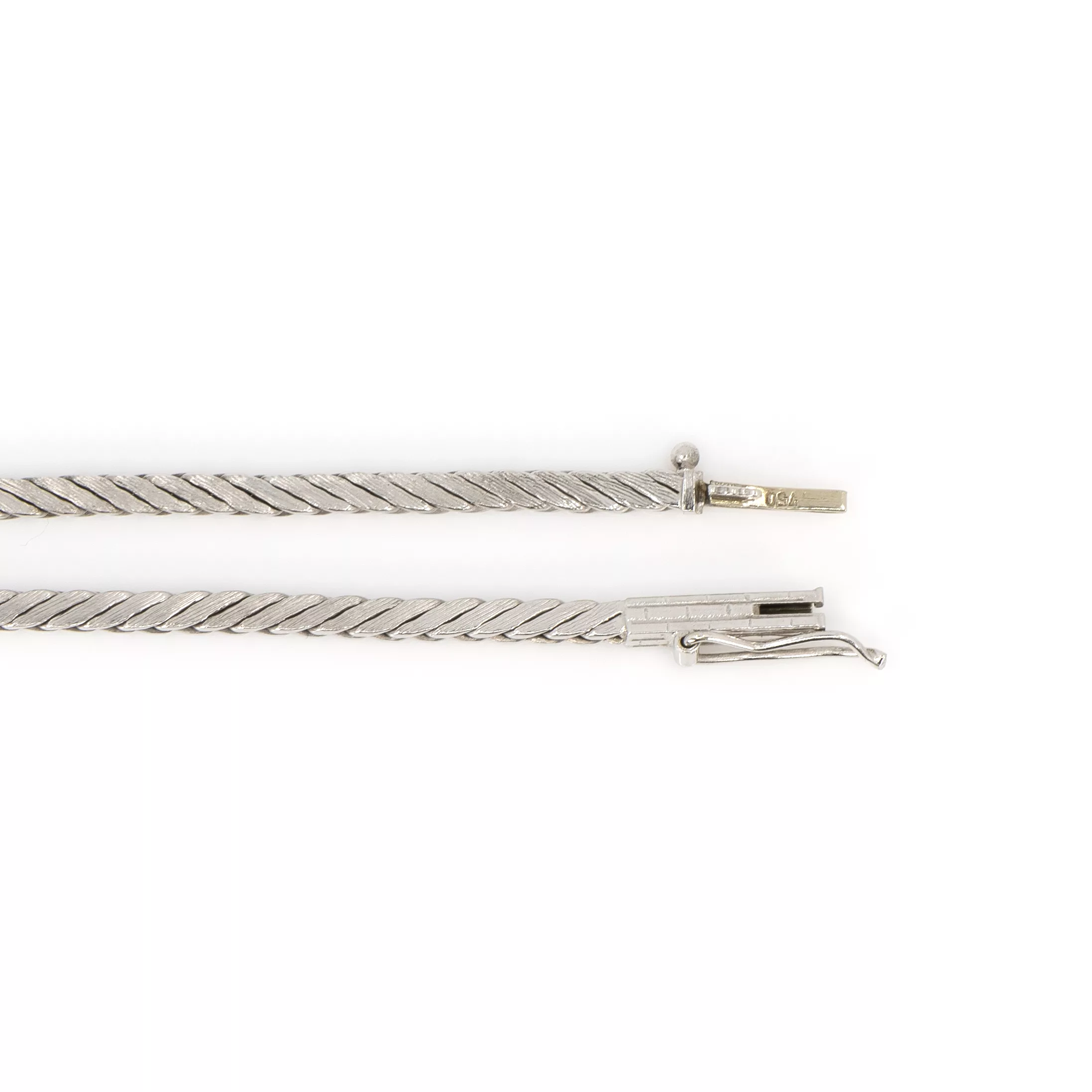 750 Weißgold, punziert, 16 Diamanten im Brillantschliff, gesamt ca. 0,85 ct, G-H, vs, mittig Zuchtperle, Ø 7,4 mm, Länge Kette 46 cm, Gewicht ca. 19,3 g