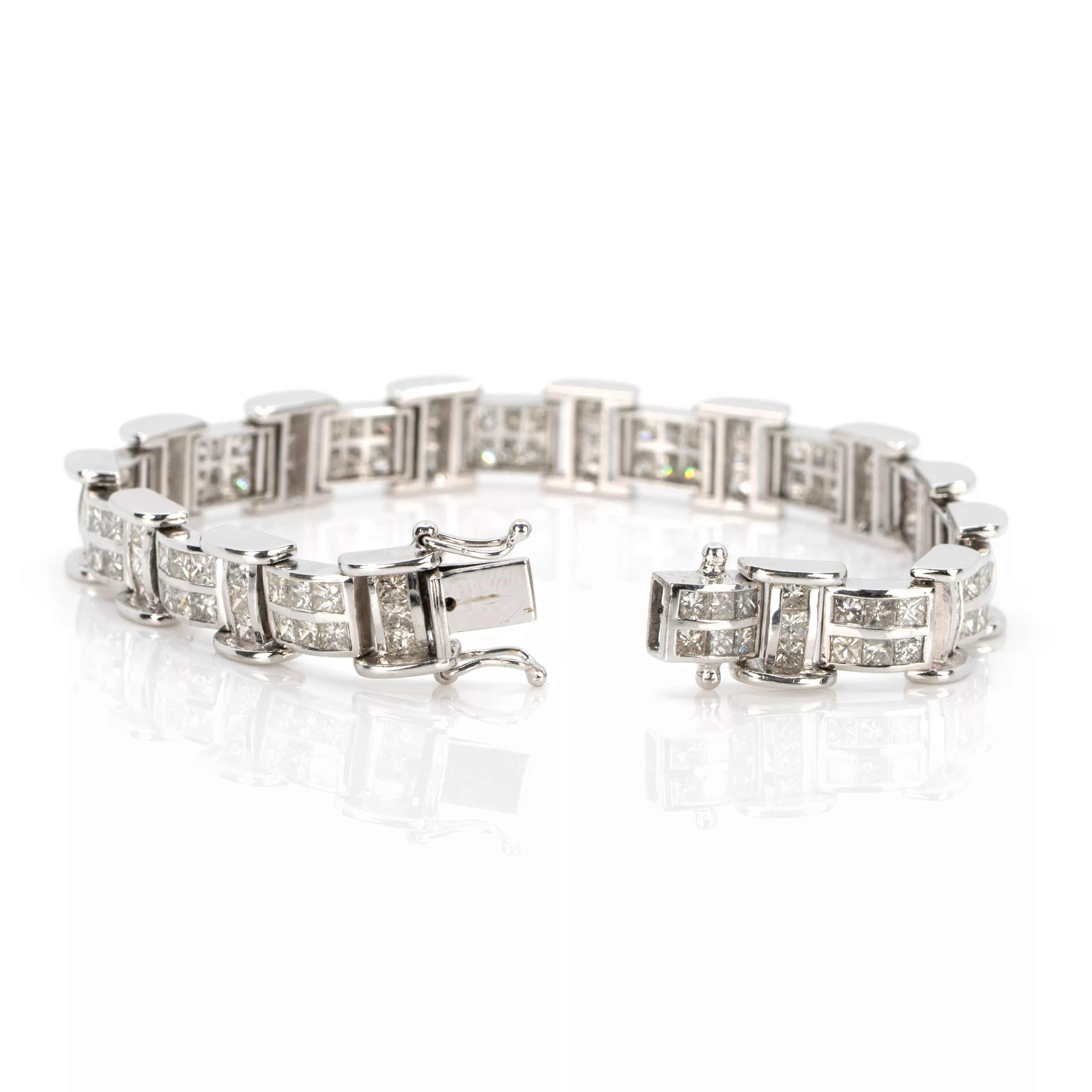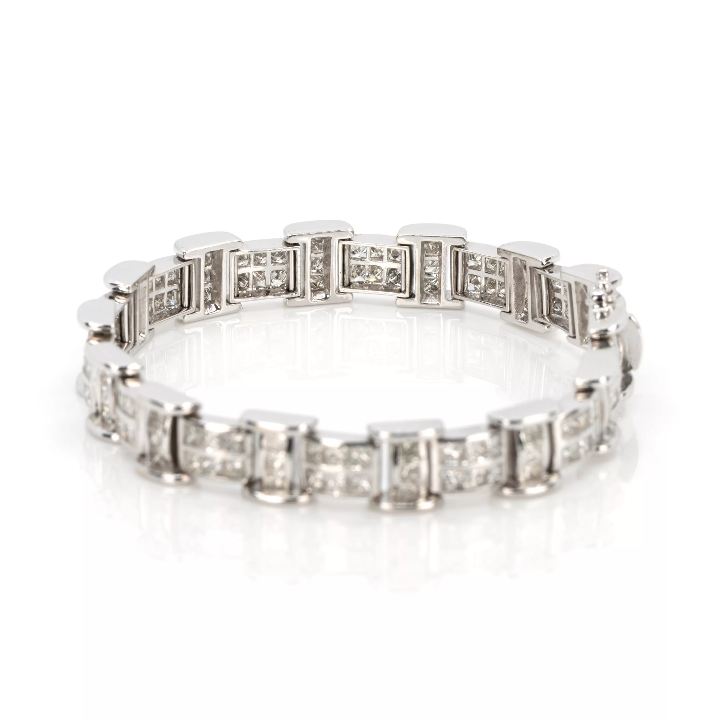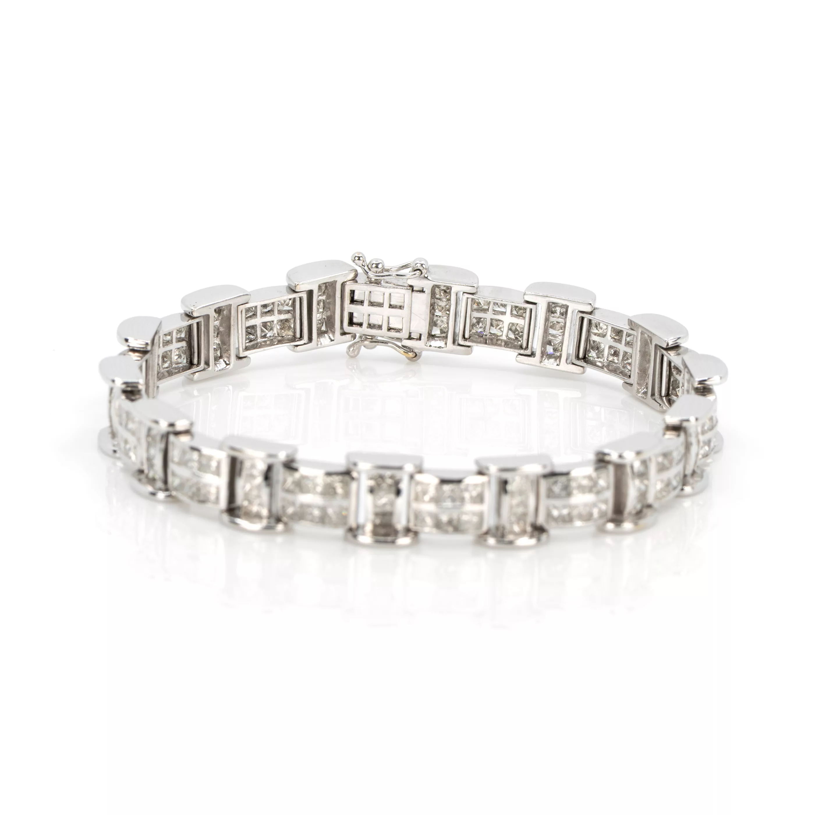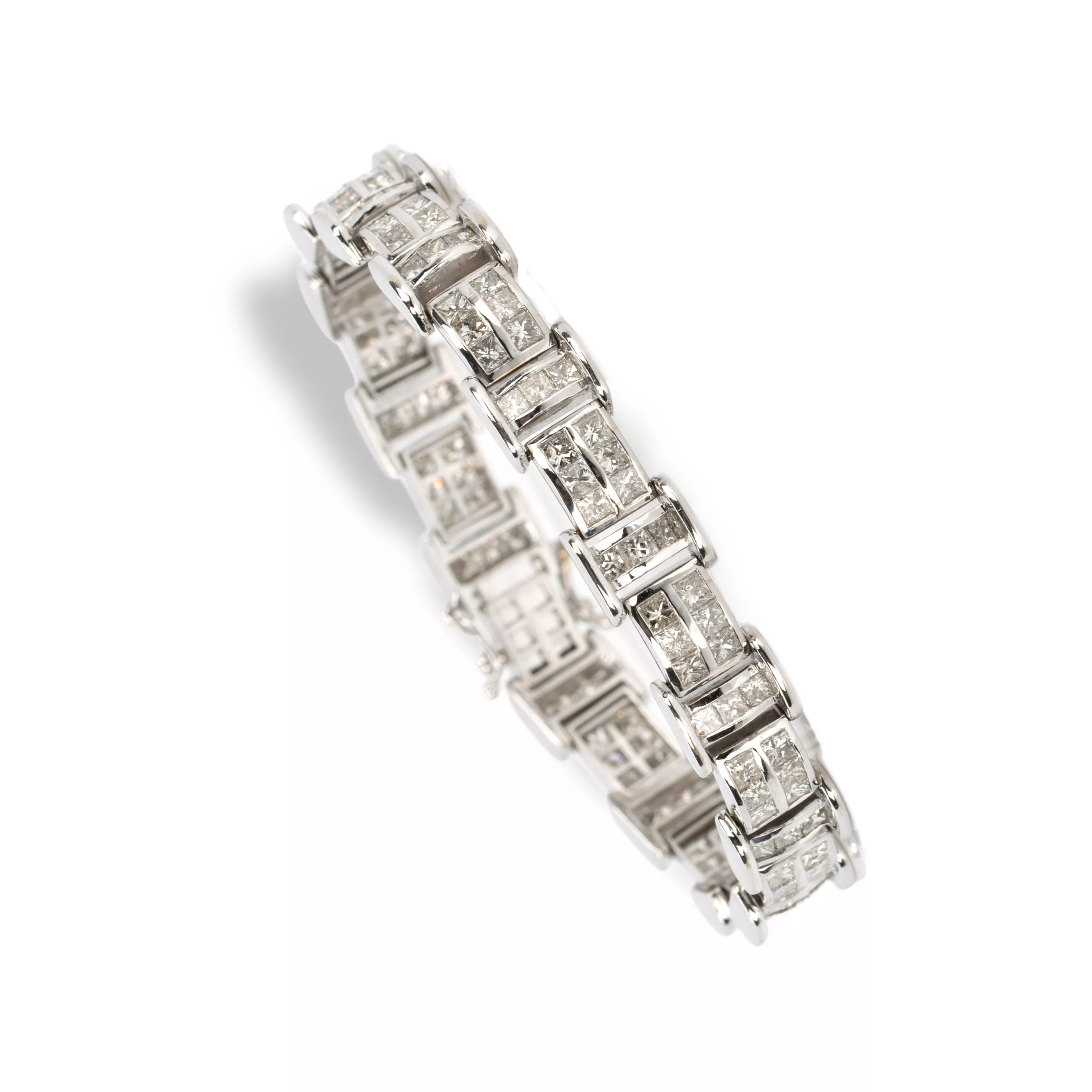 750 Weißgold, punziert, 126 Diamanten im Prinzessschliff, gesamt ca. 6,30 ct, H-J, pi1-pi2, Länge 18,2 cm, Gewicht ca. 35,2 g