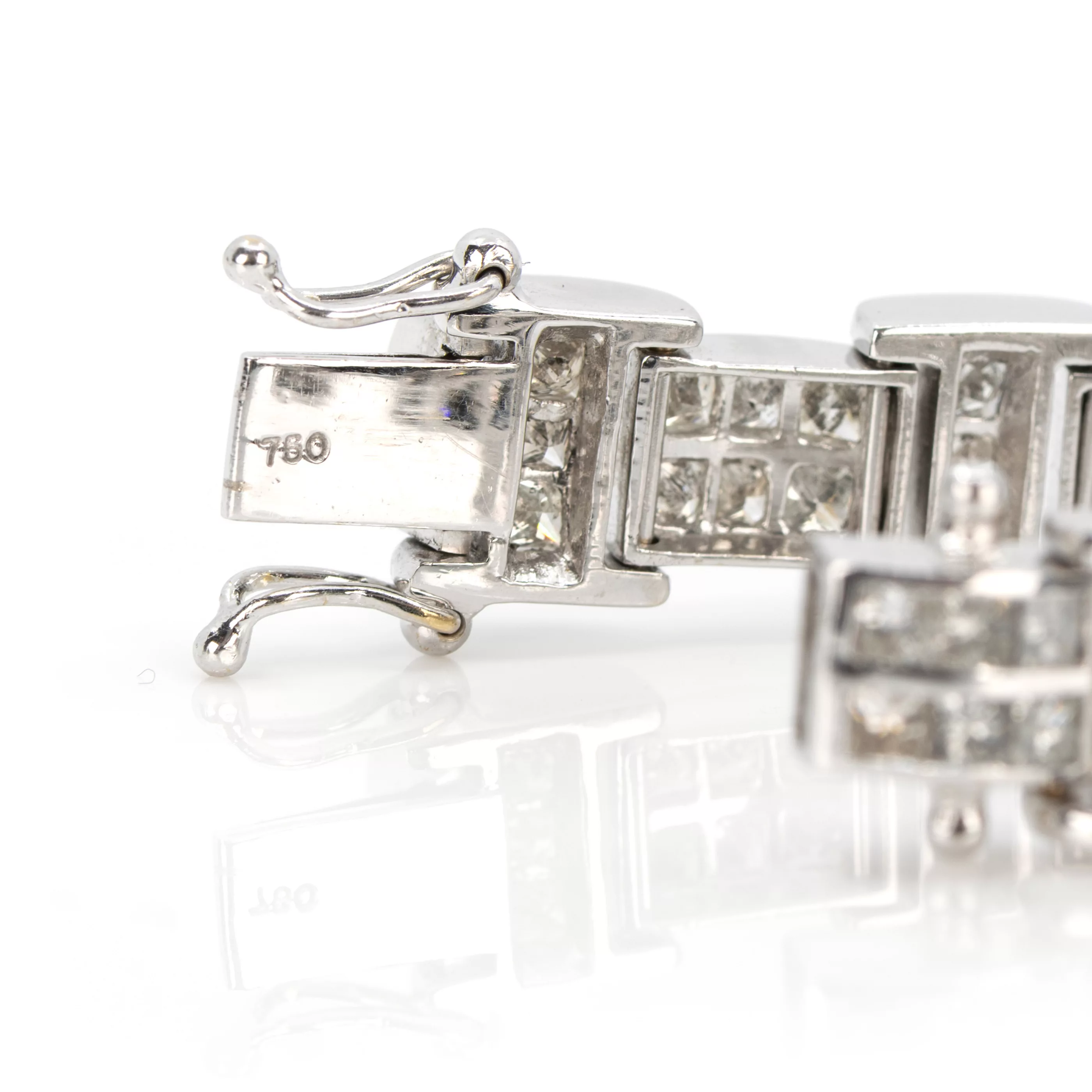 750 Weißgold, punziert, 126 Diamanten im Prinzessschliff, gesamt ca. 6,30 ct, H-J, pi1-pi2, Länge 18,2 cm, Gewicht ca. 35