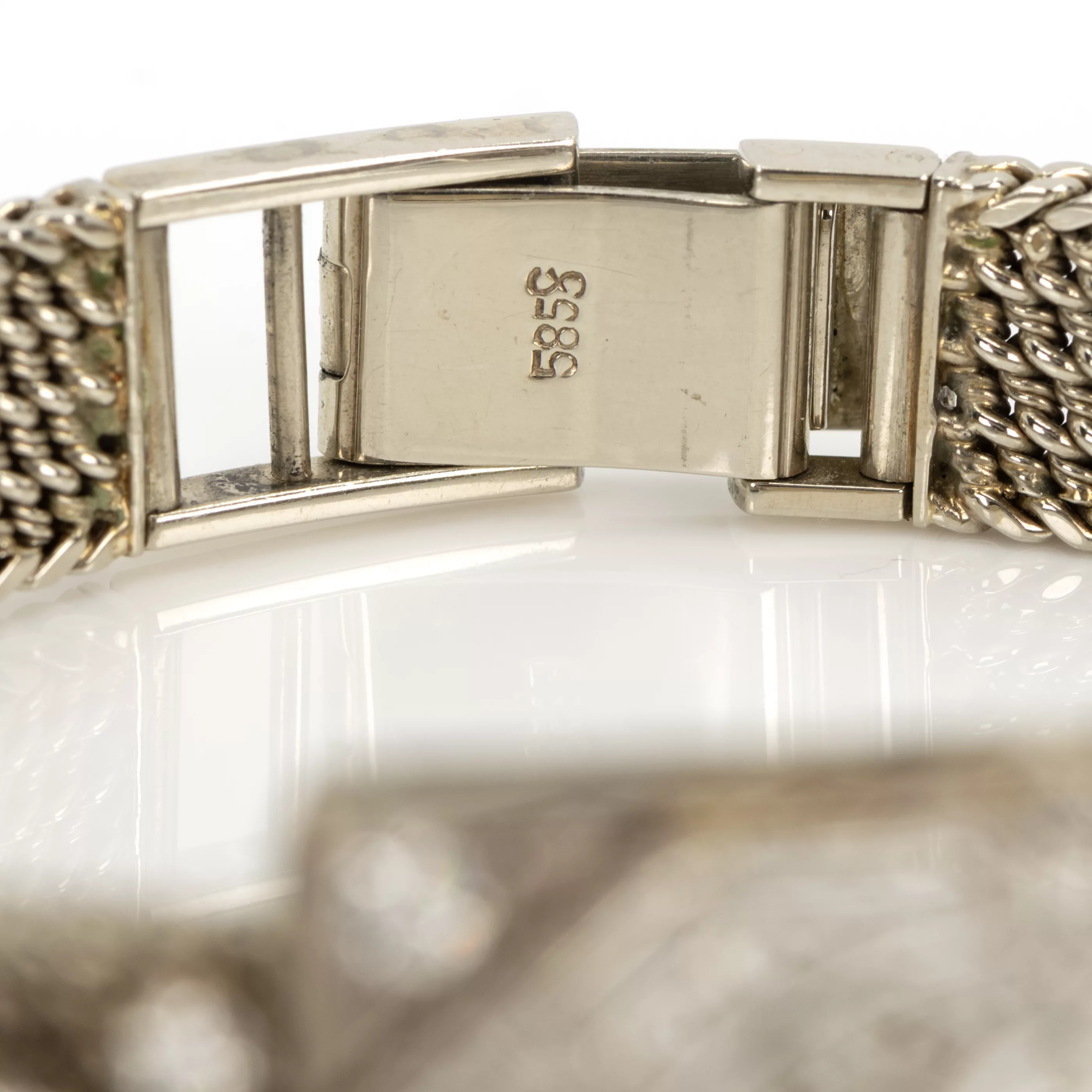 585 Weißgold, punziert und geprüft, 11 Diamanten im Brillantschliff, gesamt ca. 1,05 ct, G-H, vs-pi, Länge 16,5 - 17,5 cm, Gewicht ca. 30,5 g