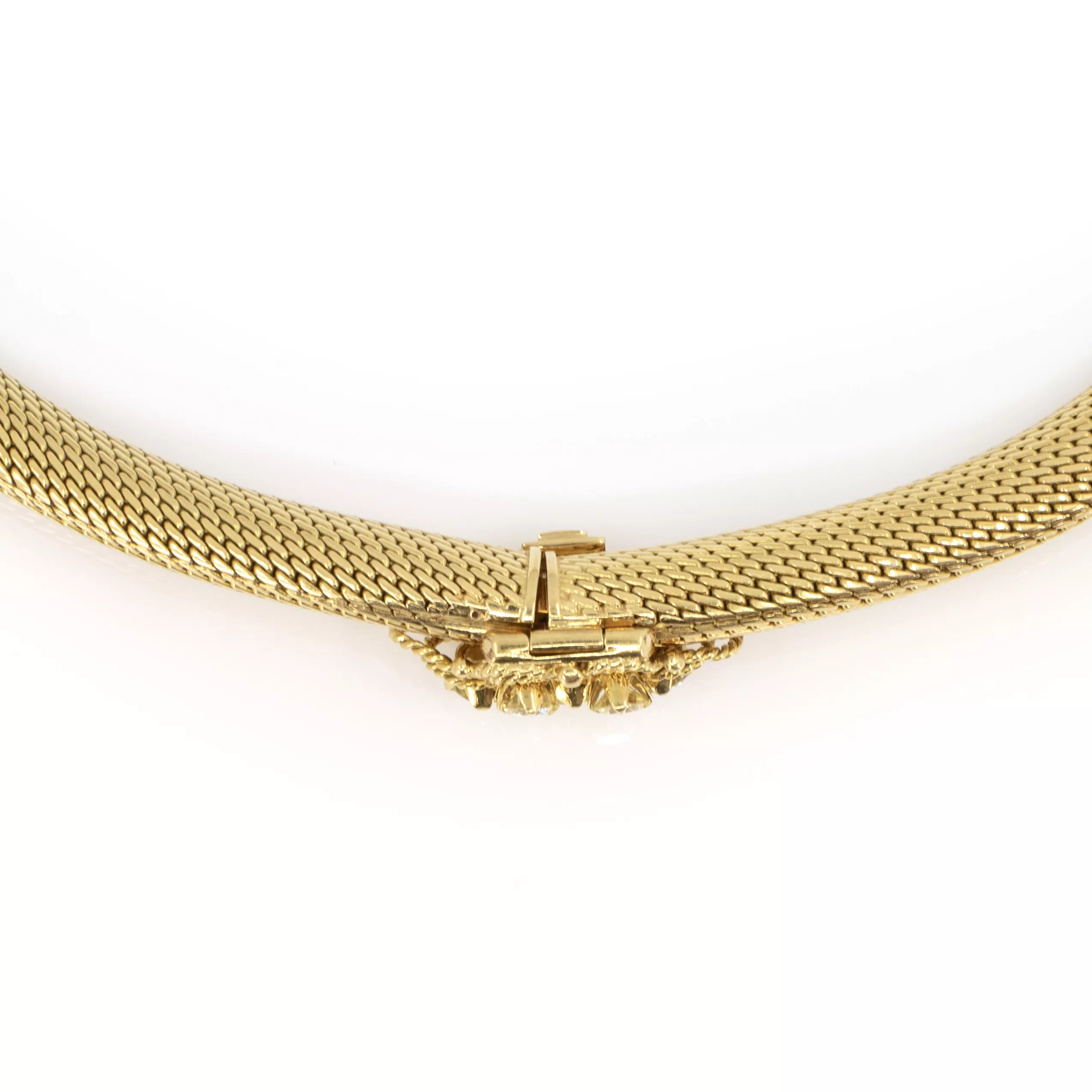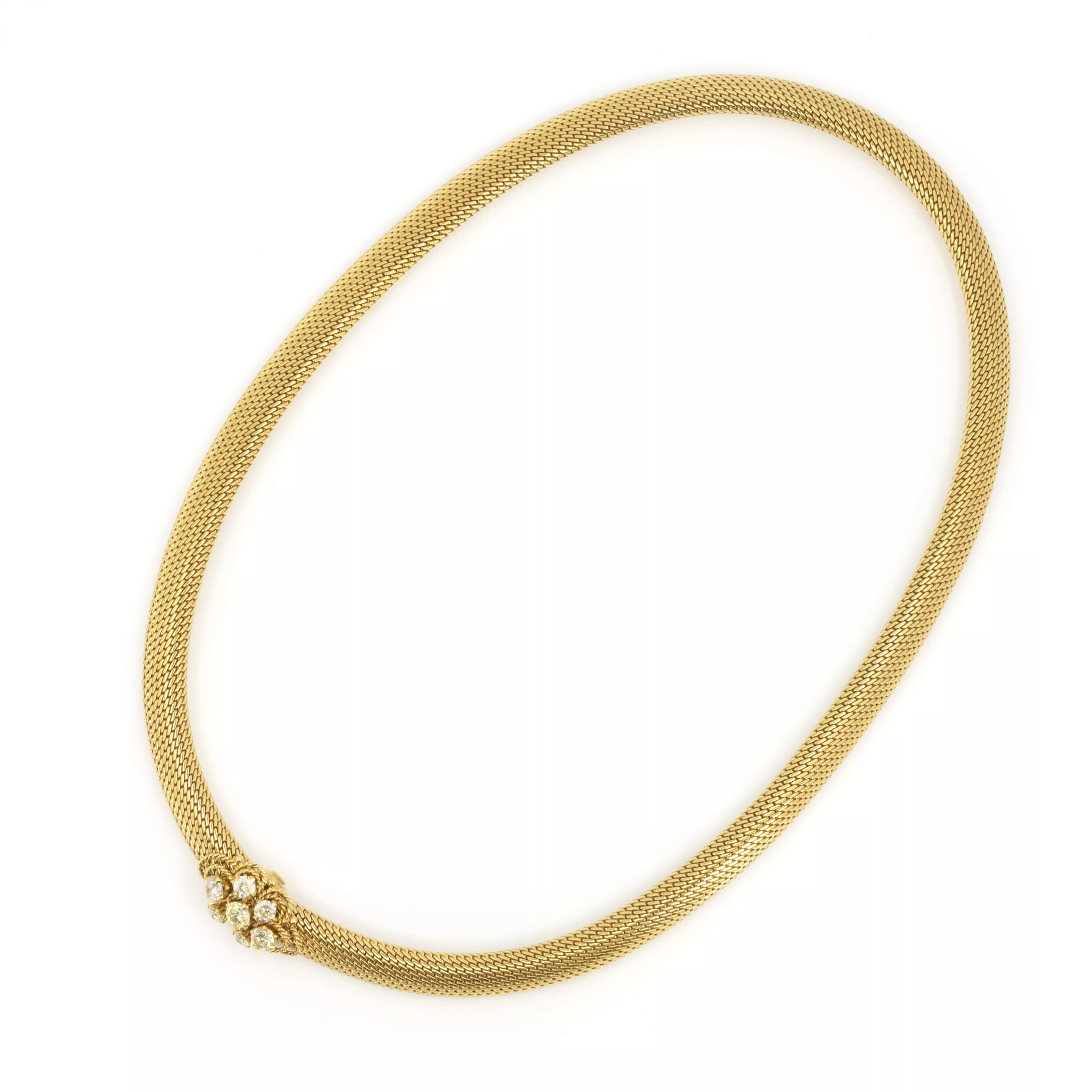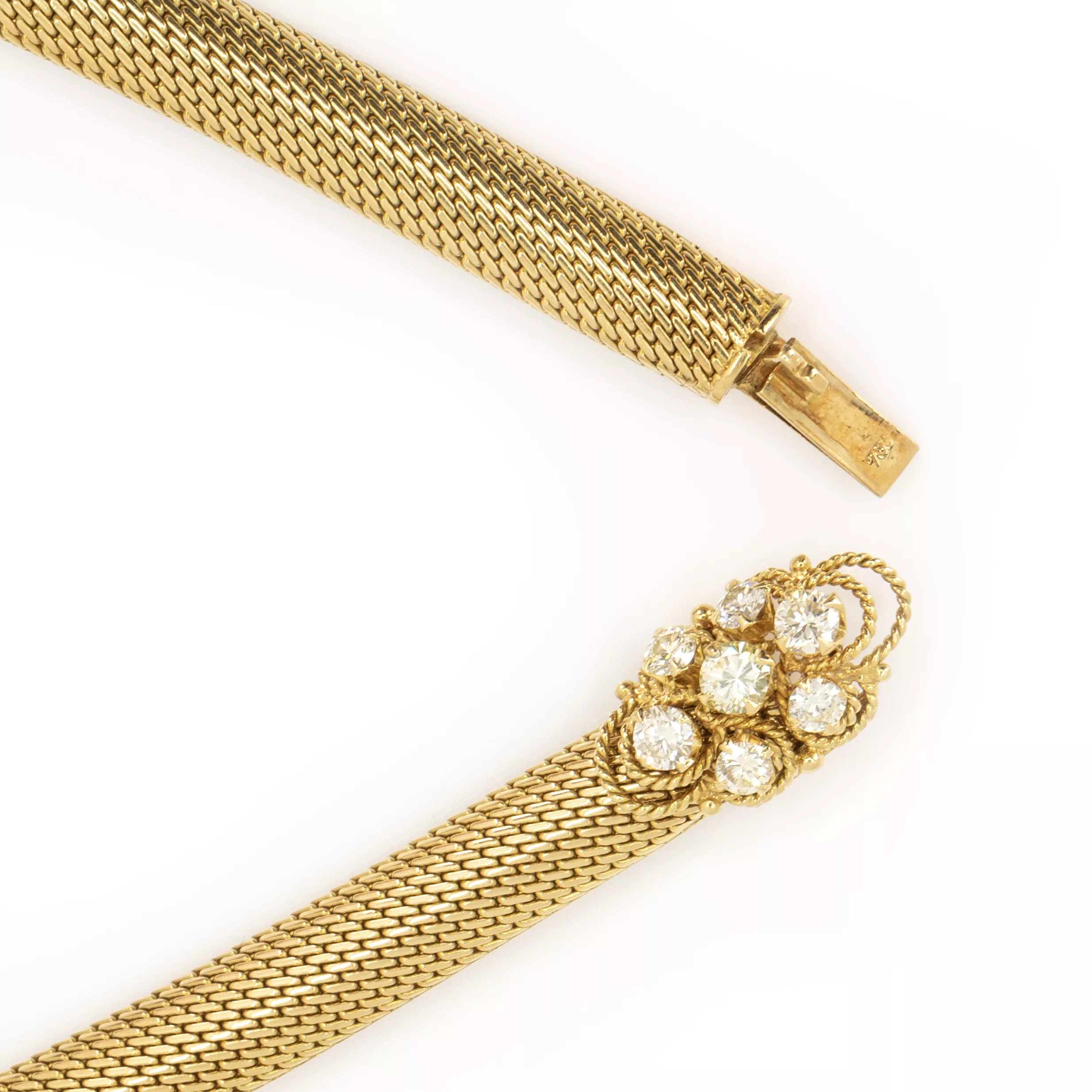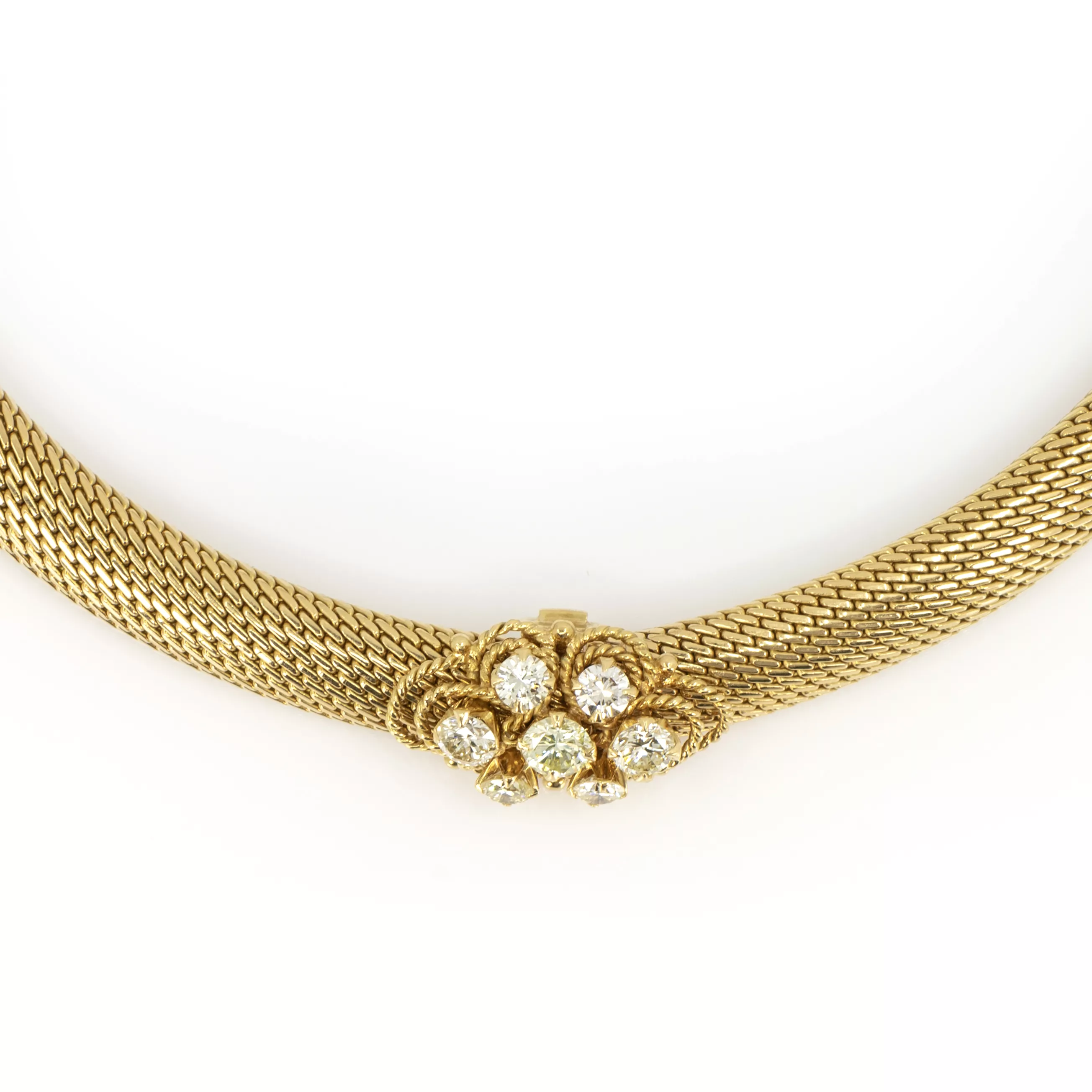 750 yellow gold, hallmarked, hinged clasp with 7 brilliant-cut diamonds, totalling ca. 1.18 ct, central diamond light yellow, the others K-L, vvs-vs, length 40.5 cm, weight ca. 74.7 g