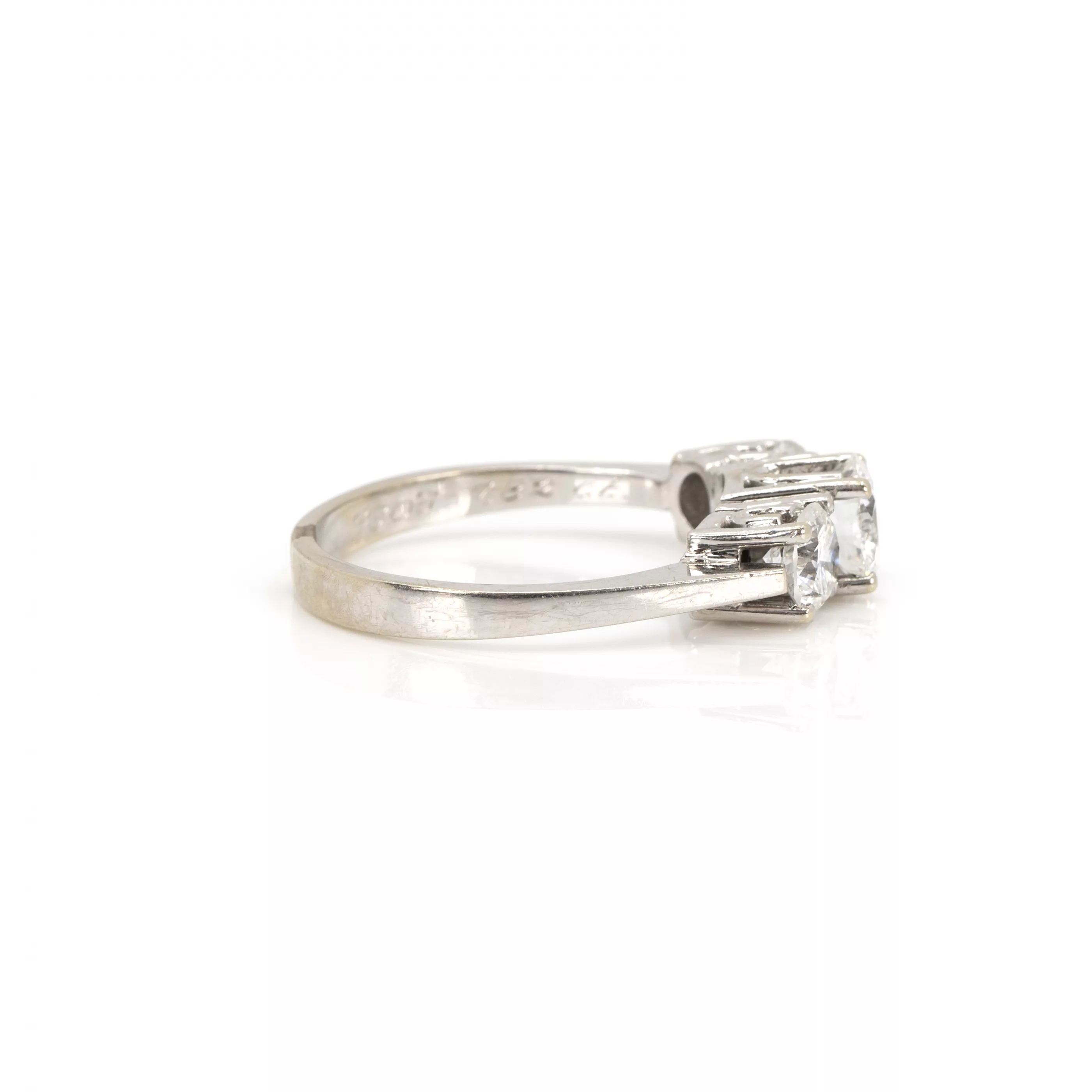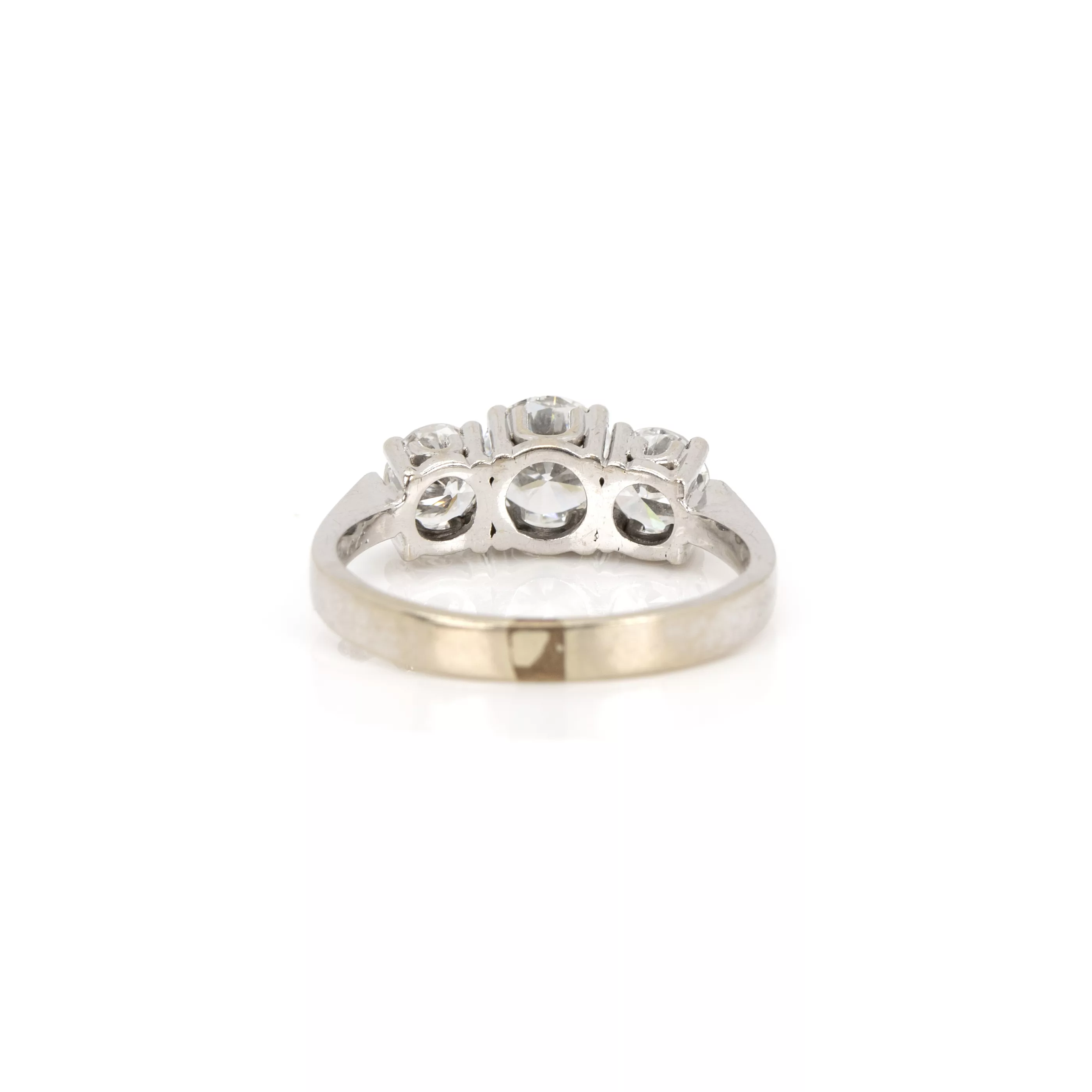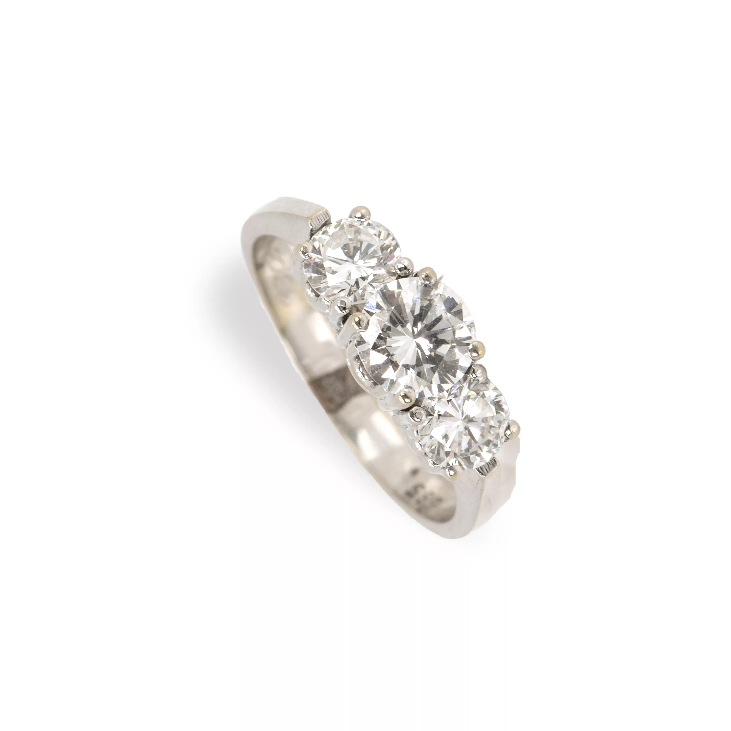 585 white gold, hallmarked, 3 brilliant-cut diamonds, total ca. 1.82 ct, engraved, G, if, RW 58, weight approx. 4 g, certificate from 1975 enclosed