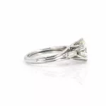 750 Weißgold, geprüft, zentraler Diamant im Brillantschliff, 2,598 ct, N-O, vs2, Proportionen mittel, Symmetrie sehr gut, Politur sehr gut, seitlich 2 Diamanten im Baguetteschliff, gesamt 0,36 ct, RW 55, Gewicht ca. 6,7 g, DPL Idar-Oberstein Expertise von 2024 über den großen Diamanten 2,598 ct anbei