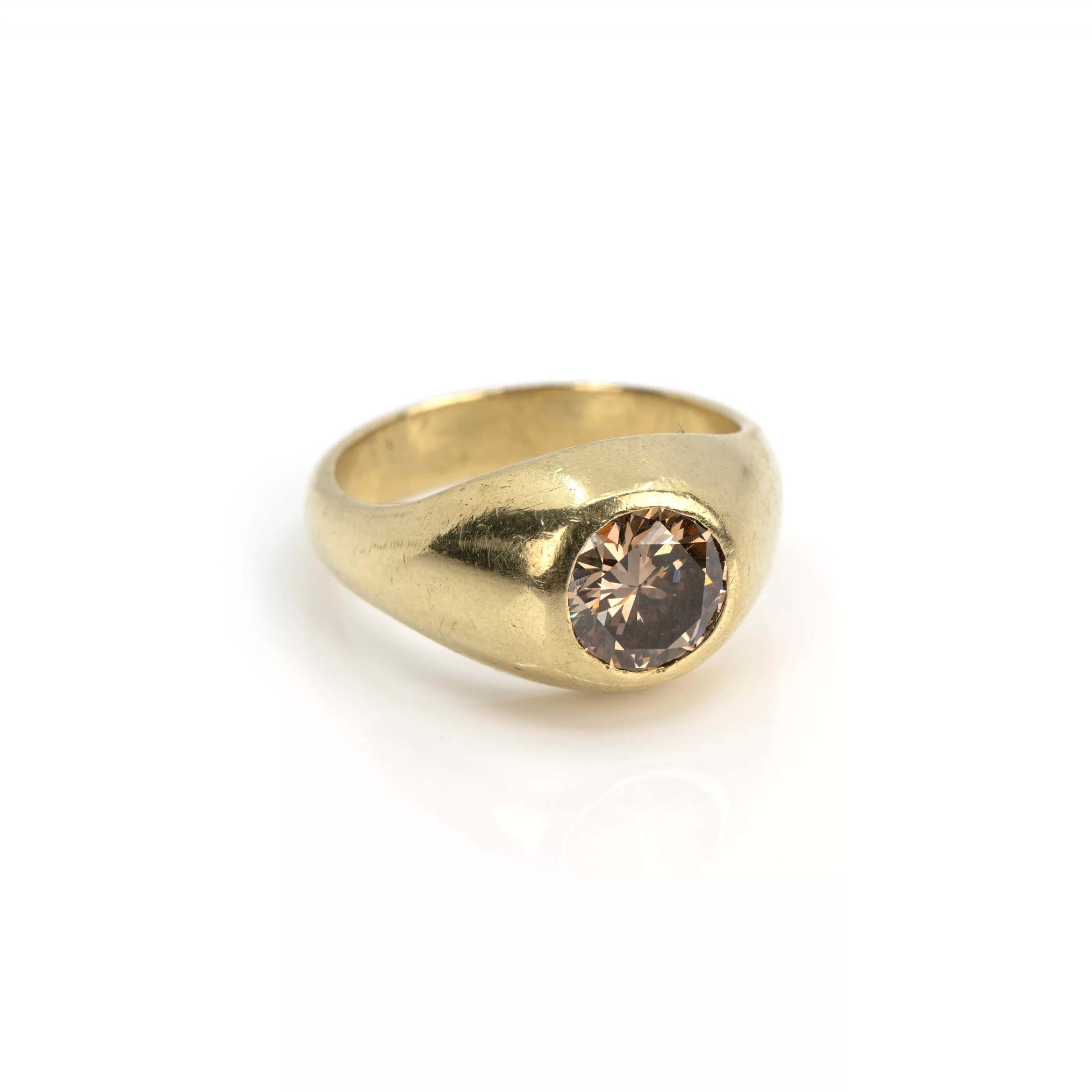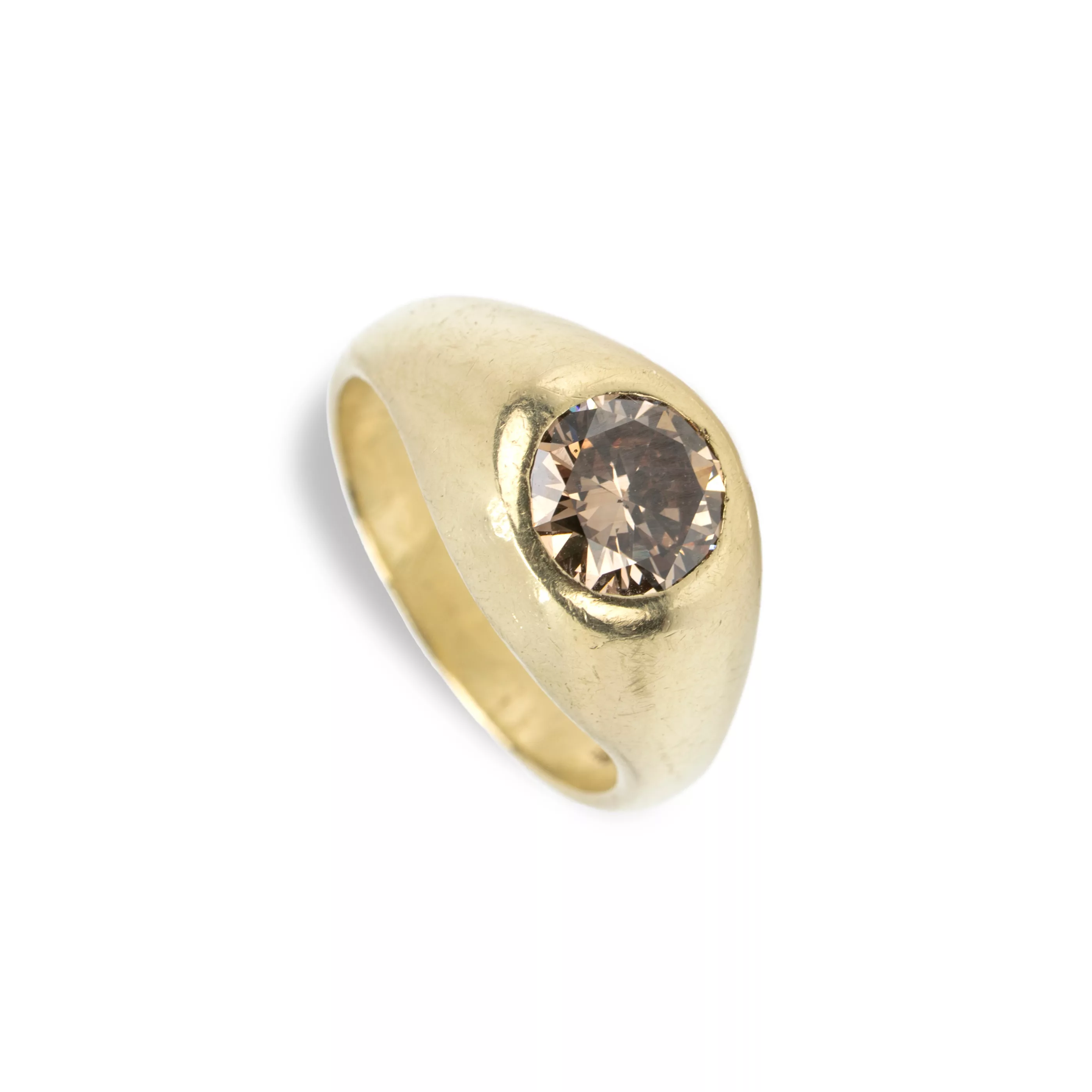 585 yellow gold, hallmarked, brilliant-cut diamond, approx. 1.50 - 1.55 ct, cognac-coloured/orange-brown, si, RW 57, weight approx. 10 g