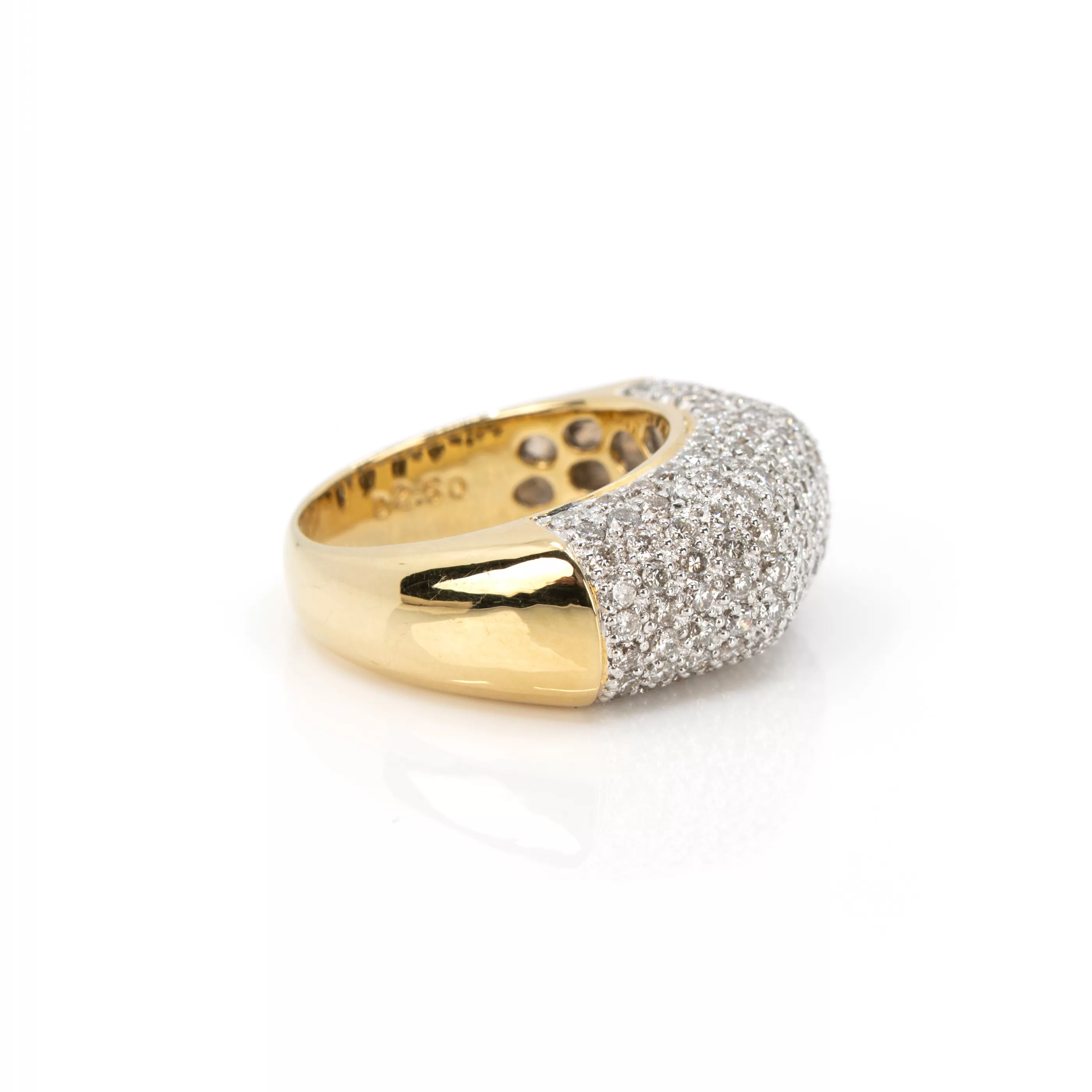 750 yellow gold, hallmarked, 129 brilliant-cut diamonds, total 2.50 ct, hallmarked, H, vs-pi, RW 58, weight approx. 14.4 g, expertise from 2002 enclosed