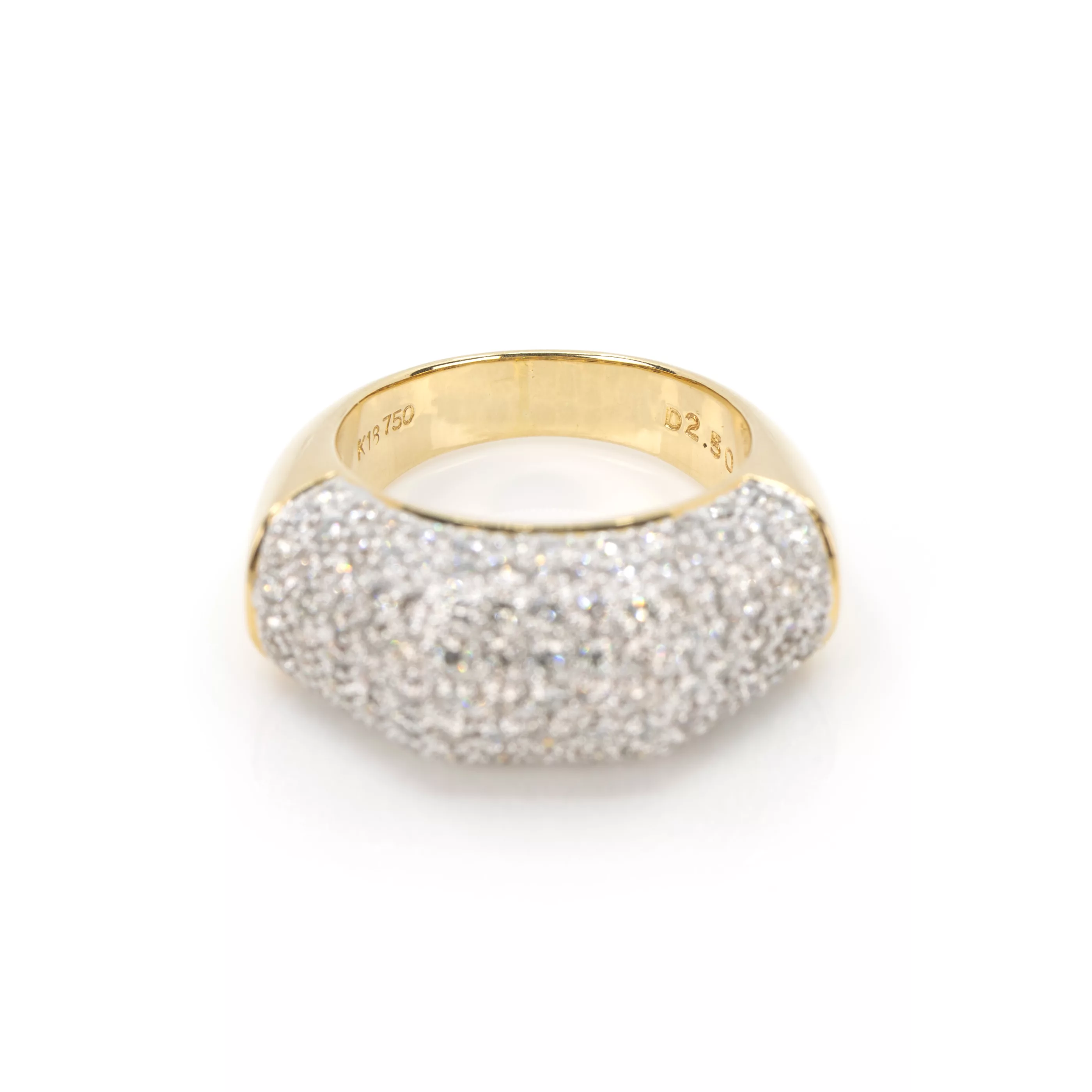 750 Gelbgold, punziert, 129 Diamanten im Brillantschliff, gesamt 2,50 ct, punziert, H, vs-pi, RW 58, Gewicht ca. 14,4 g, Expertise von 2002...