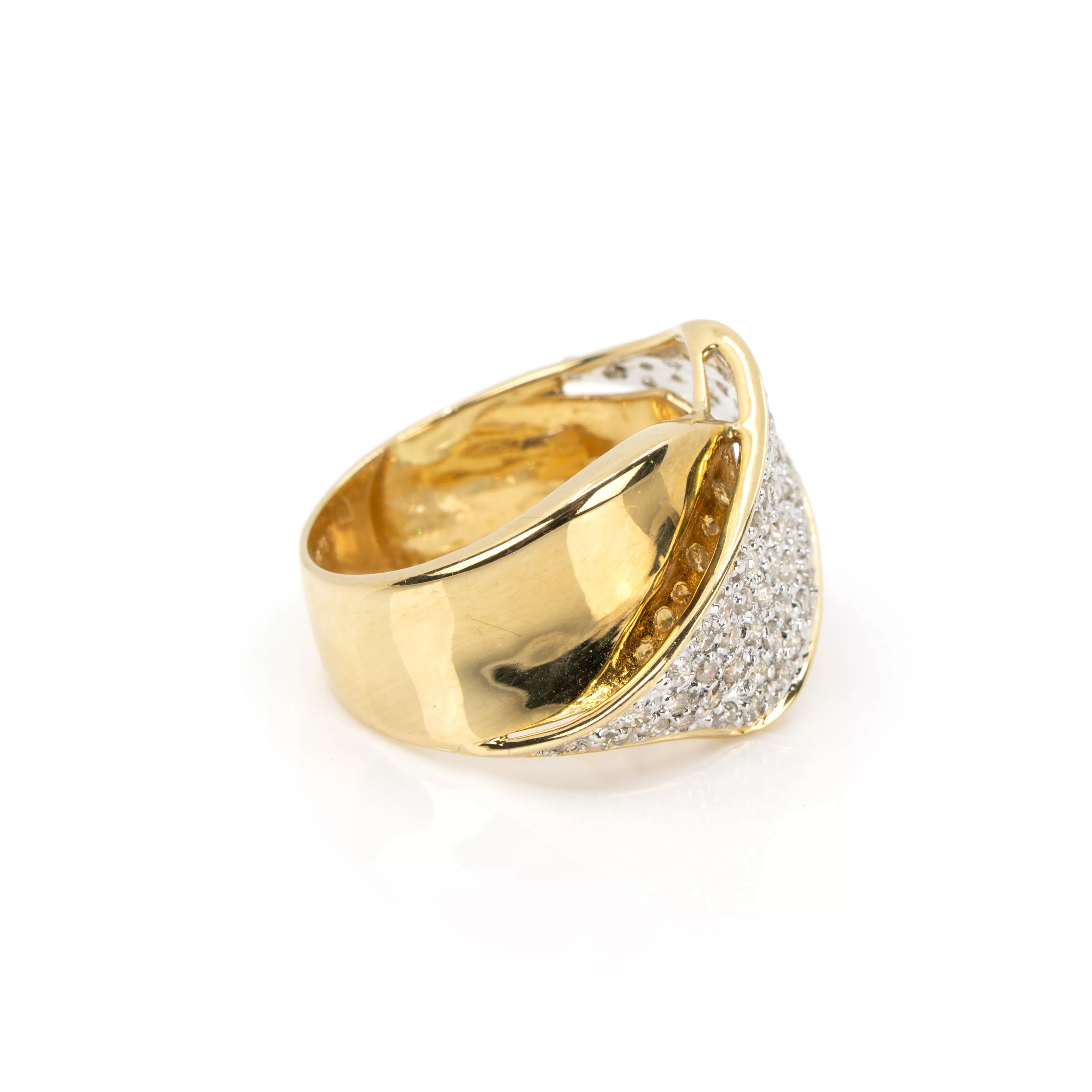 750 Gelbgold, punziert, 66 Diamanten im Brillantschliff, gesamt 0,85 ct, punziert, H, si-pi, RW 57, Gewicht ca. 8,9 g, Expertise von 2002 in...