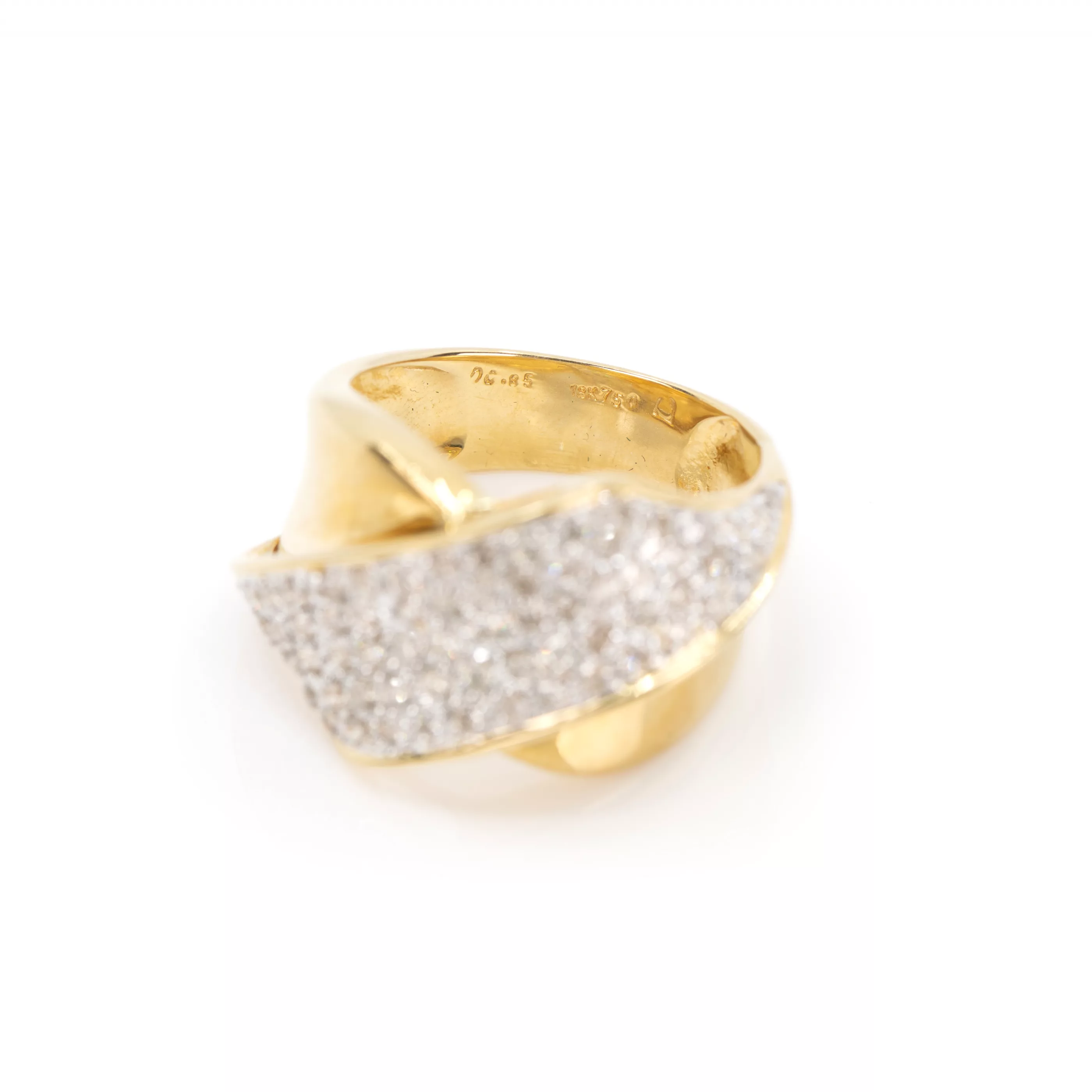 750 Gelbgold, punziert, 66 Diamanten im Brillantschliff, gesamt 0,85 ct, punziert, H, si-pi, RW 57, Gewicht ca. 8,9 g, Expertise von 2002 in Kopie anbei