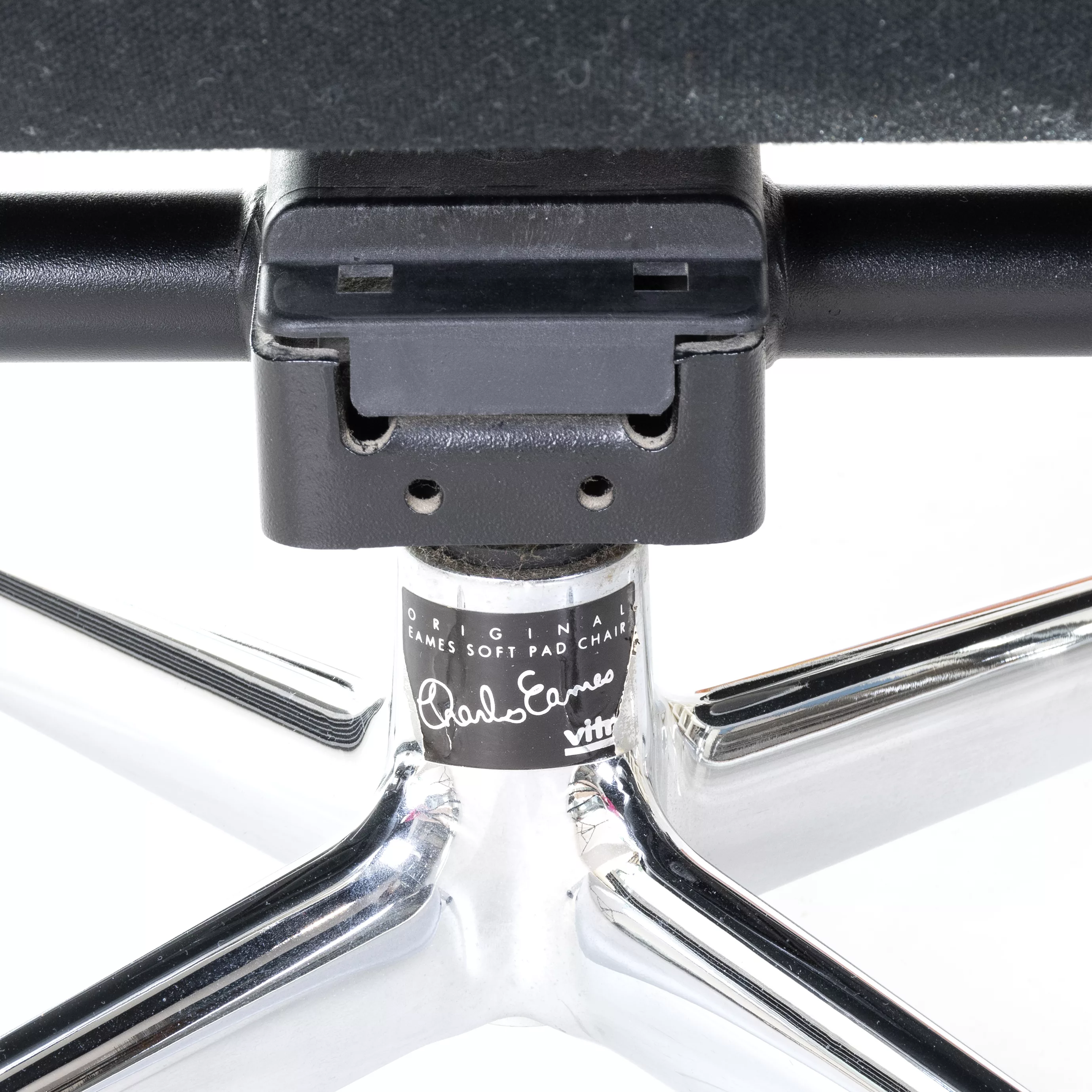 vitra, Weil am Rhein, design by Charles Eames (1907 - 1078) & Ray Eames (1912 - 1988) from 1969 as part of the 'Soft Pad Group', chrome-plated aluminum, black leather, on the underside with manufacturer's label, manufacturer's hallmark and place of production, armchair height 102 cm, seat height 40 cm, ottoman height 42 cm, condition A