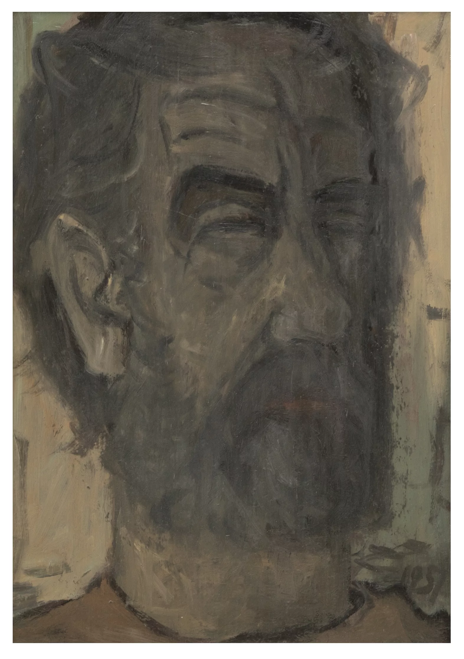 Selbstporträt, Öl auf Holz, 34 cm x 24 cm Werkmaß, monogrammiert, 1951 datiert, verso gewidmet 'Dem Freund Berni Sträter Juni 1962...